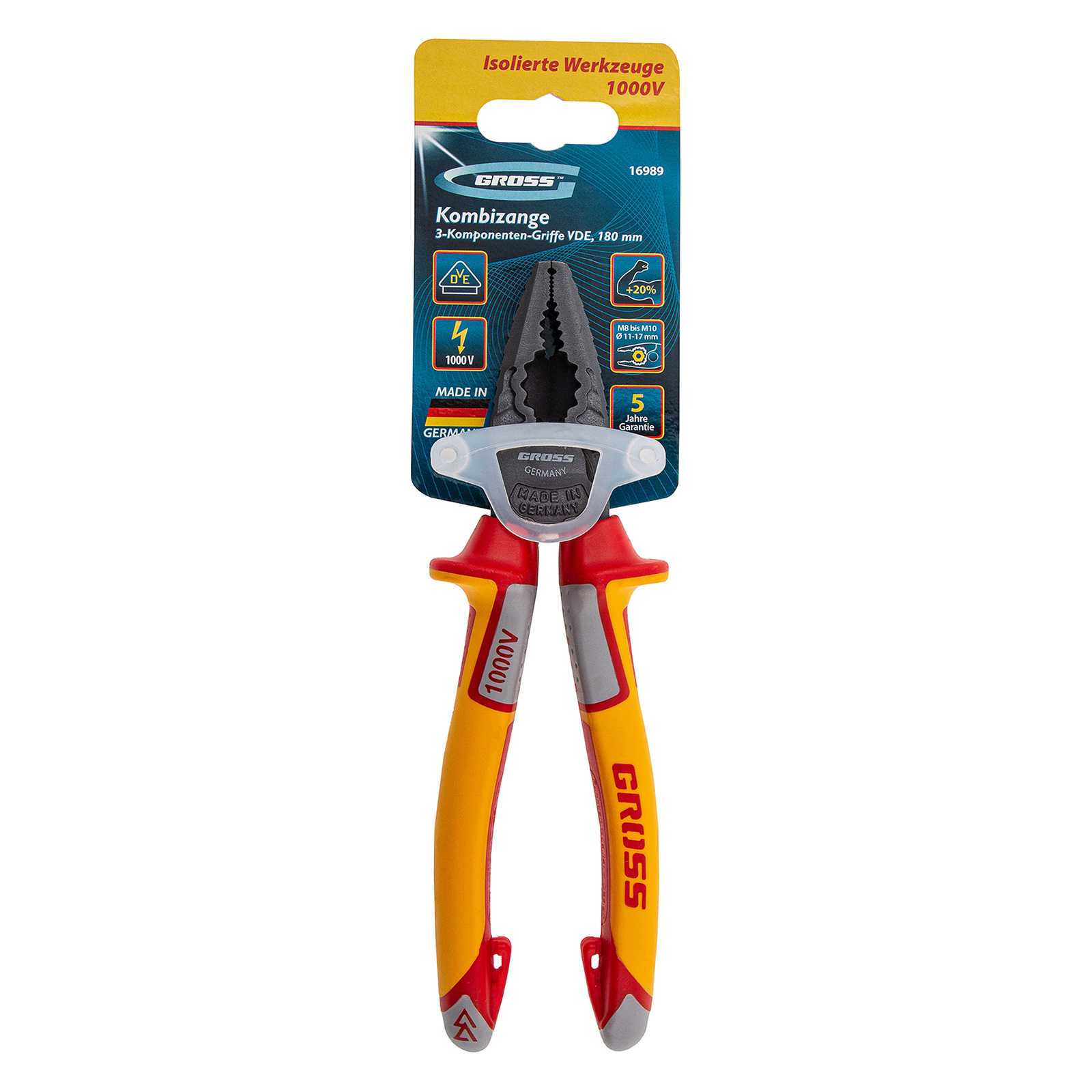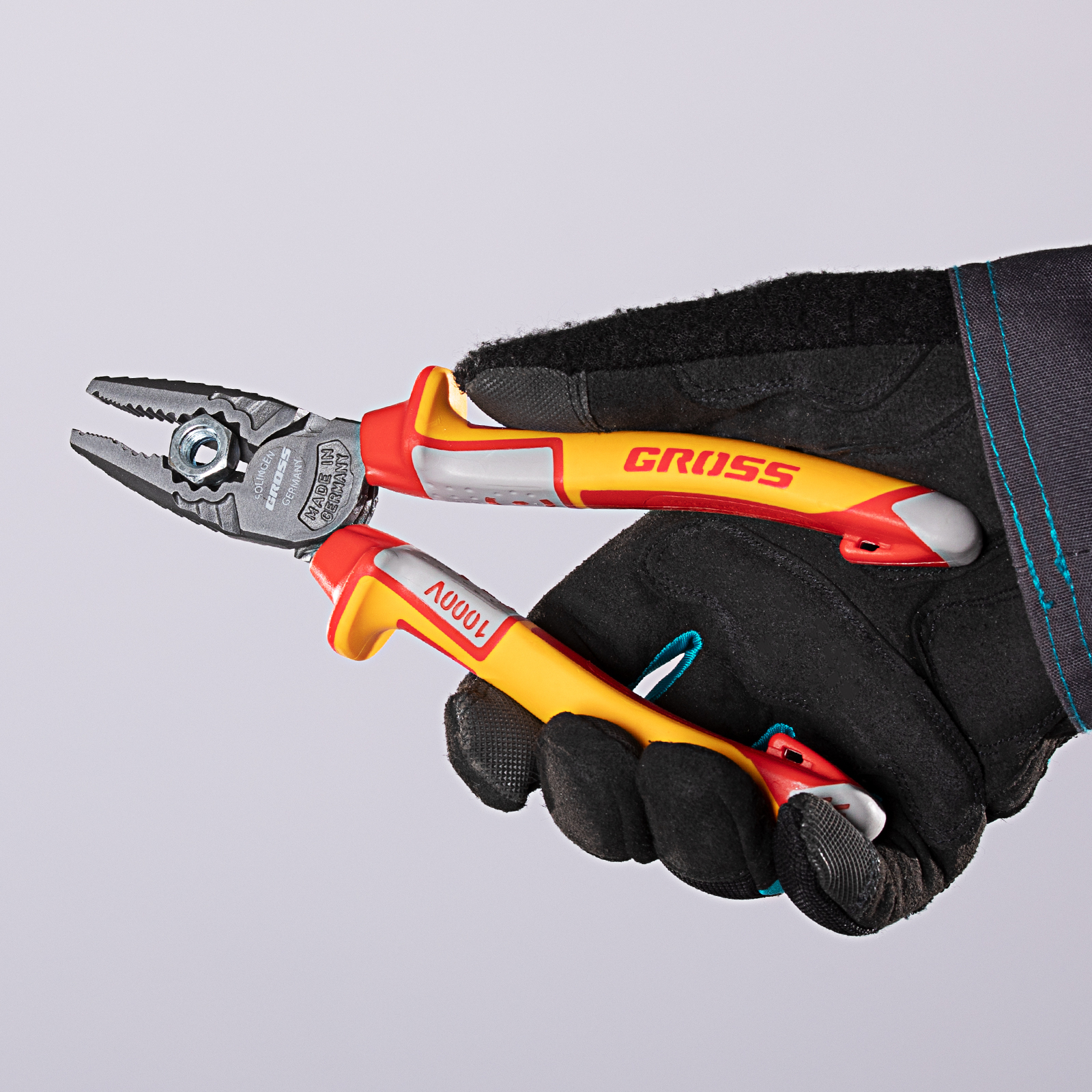Плоскогубцы комбинированные, диэлектрические трехкомпонентные рукоятки до 1000 В, 180 мм Gross