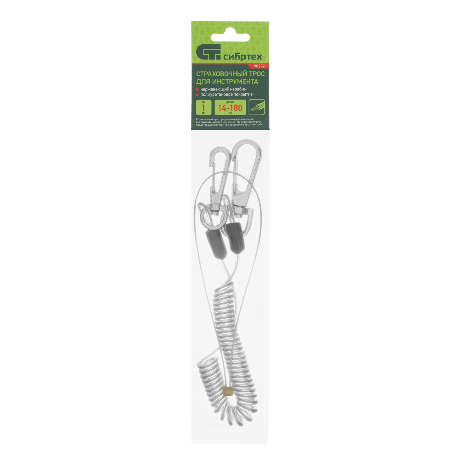 <p>Подвес для инструмента Сибртех 90282 со стальным сердечником, нержавеющими застежкой и кольцом, предотвращает падение инструмента весом до 1 кг во время выполнения работ на высоте. Растягивается до 165 см, поэтому даже на вытянутой руке с инструментом комфортно работать. Пригодится на строительной площадке.</p><h2>Преимущества</h2><ul><li>Прочность и долговечность — сердечник изготовлен из стали, полиуретановая оплетка защищает витки от деформации.</li><li>Надежное крепление к скобе или крюку — производитель предусмотрел стальные карабины и кольцо.</li><li>Высокий ресурс — кольцо и карабины устойчивы к коррозии и выдерживают длительное использование.</li></ul>