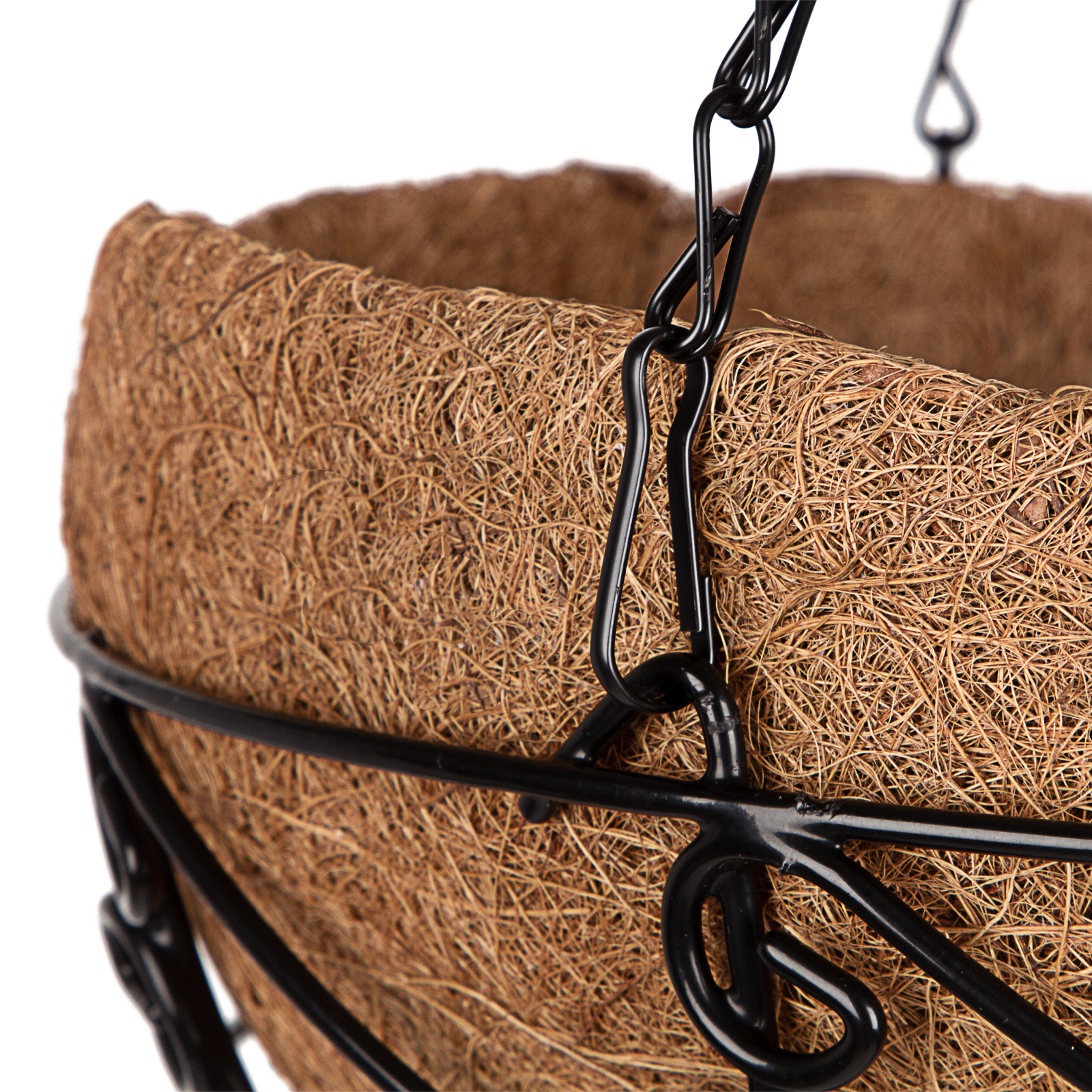 <p>Кашпо подвесное Palisad 69004 диаметром 30 см, с орнаментом и кокосовой корзиной, предназначено для выращивания цветов, создания оригинального дизайна и украшения дома или сада. Подходит для всех типов ампельных и вьющихся растений. Кашпо можно повесить в помещении или на улице.</p><h2>Преимущества</h2><ul><li>Надежность и долговечность — каркас и цепочки изготовлены из прочной стали.</li><li>Защита от коррозии — лакокрасочное покрытие предотвращает разрушение под воздействием влаги.</li><li>Функциональность — растения можно размещать в коковите, покупать горшок не нужно.</li><li>Оптимальные условия содержания растений — кокосовая корзина пропускает воздух, стимулируя рост корней, и хорошо удерживает влагу, позволяя снизить частоту полива.</li><li>Удобное использование — кашпо подвешивается за крючок для экономии места.</li></ul>