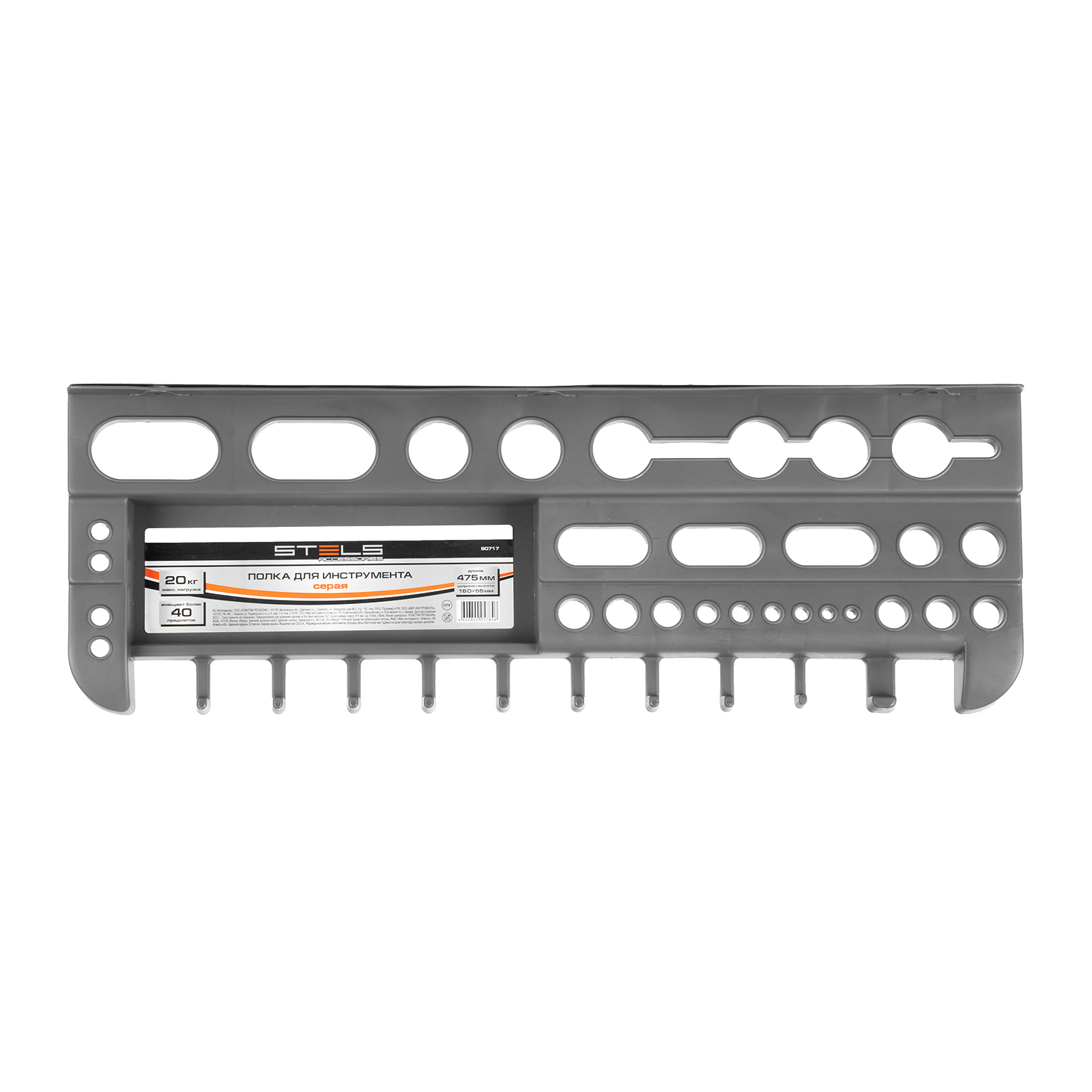Серая полка Stels 90717 длиной 475 мм используется для хранения инструментов. Благодаря ей все необходимое находится под рукой, а на рабочем месте царит порядок. Полка настенного типа позволяет компактно хранить инструменты в подвешенном виде.