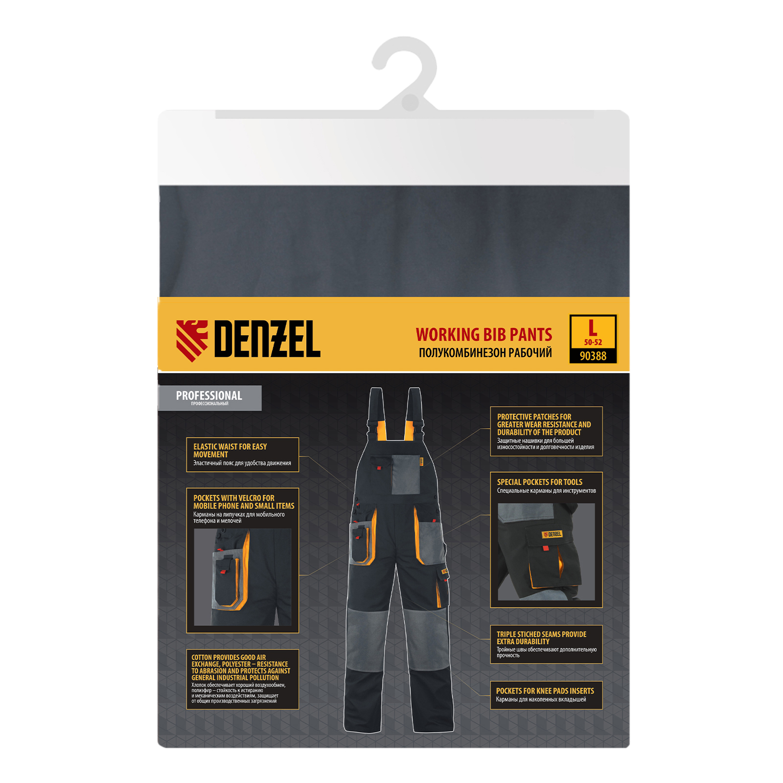 Полукомбинезон профессиональный рабочий, 65% полиэстер 35% хлопок, L Denzel