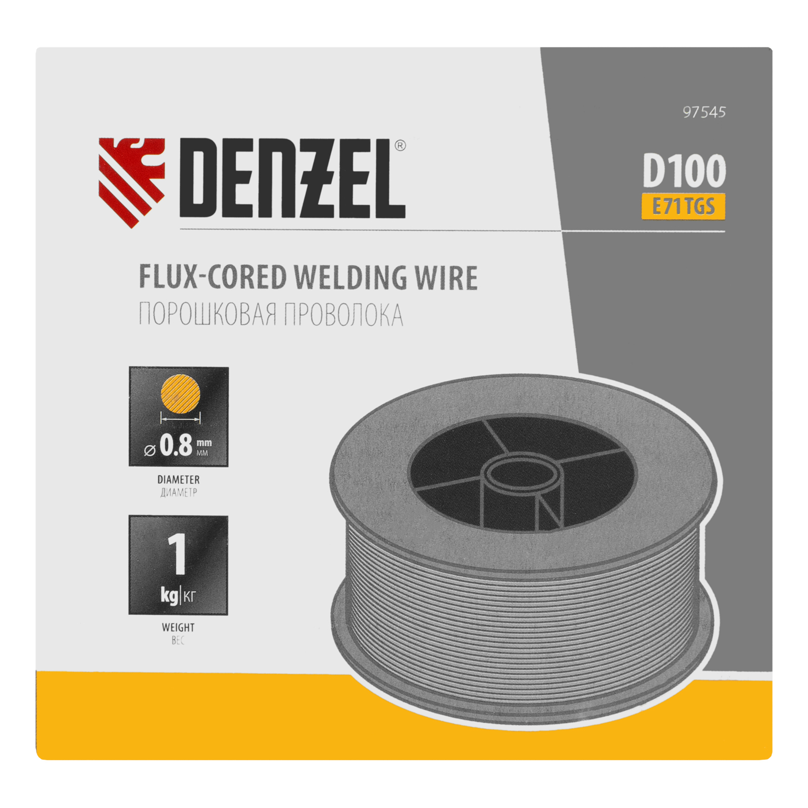 Порошковая проволока Е71TGS, диам. 0,8 мм, 1 кг, диам. катушки D100 Denzel