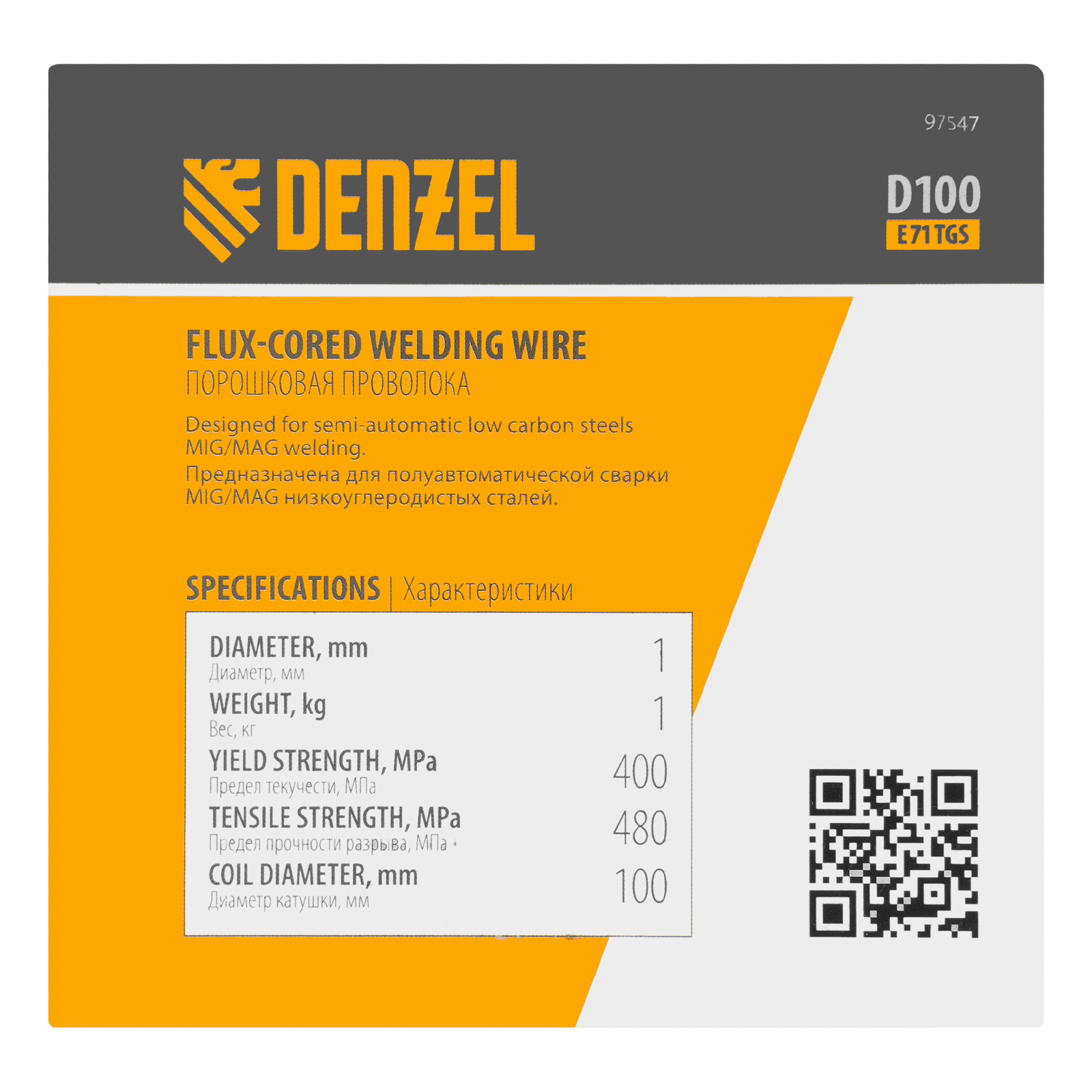 Порошковая проволока Е71TGS, диам. 1 мм, 1 кг, диам. катушки D100 Denzel