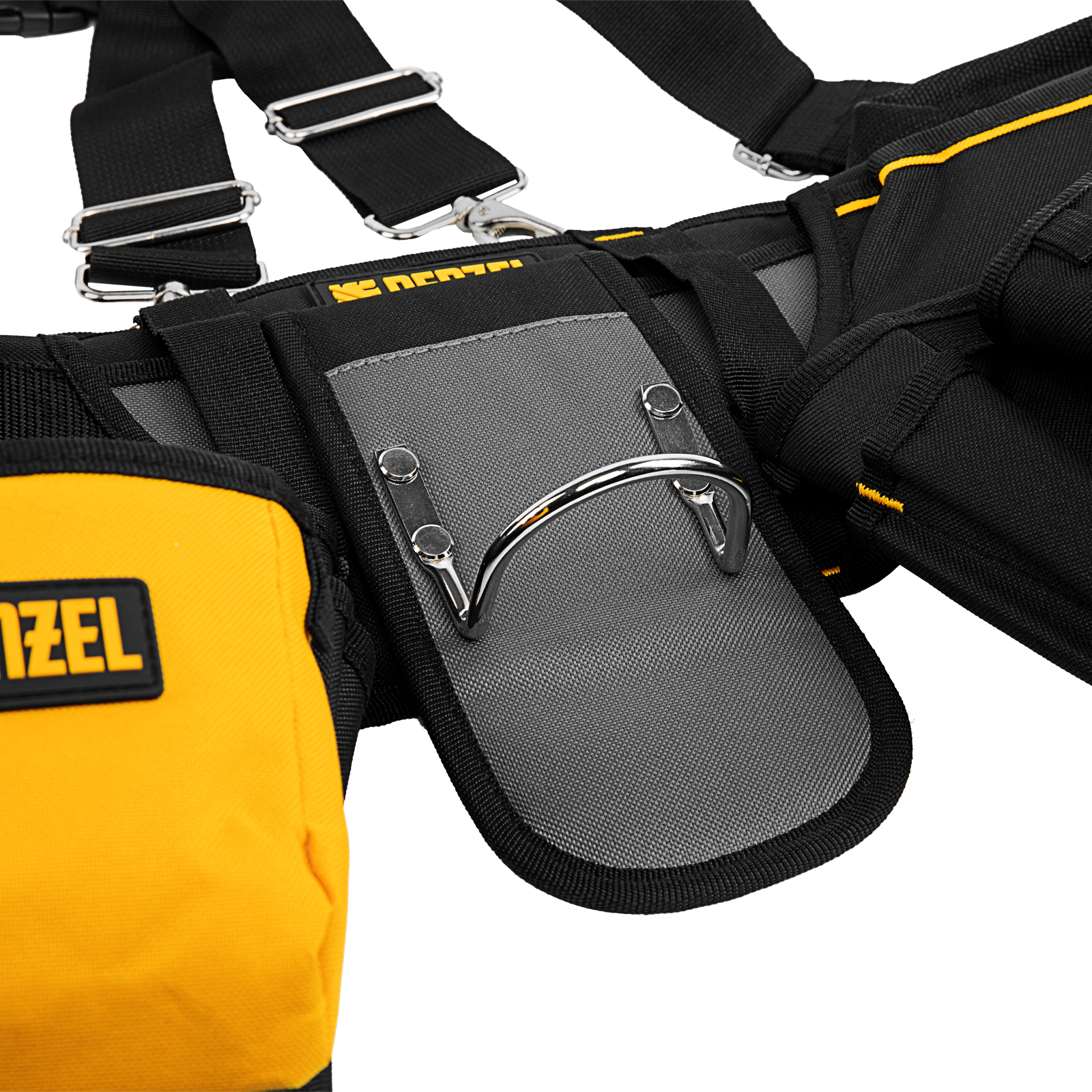 Пояс монтажника усиленный, с лямками, сумки поясные, держатель для молотка Denzel