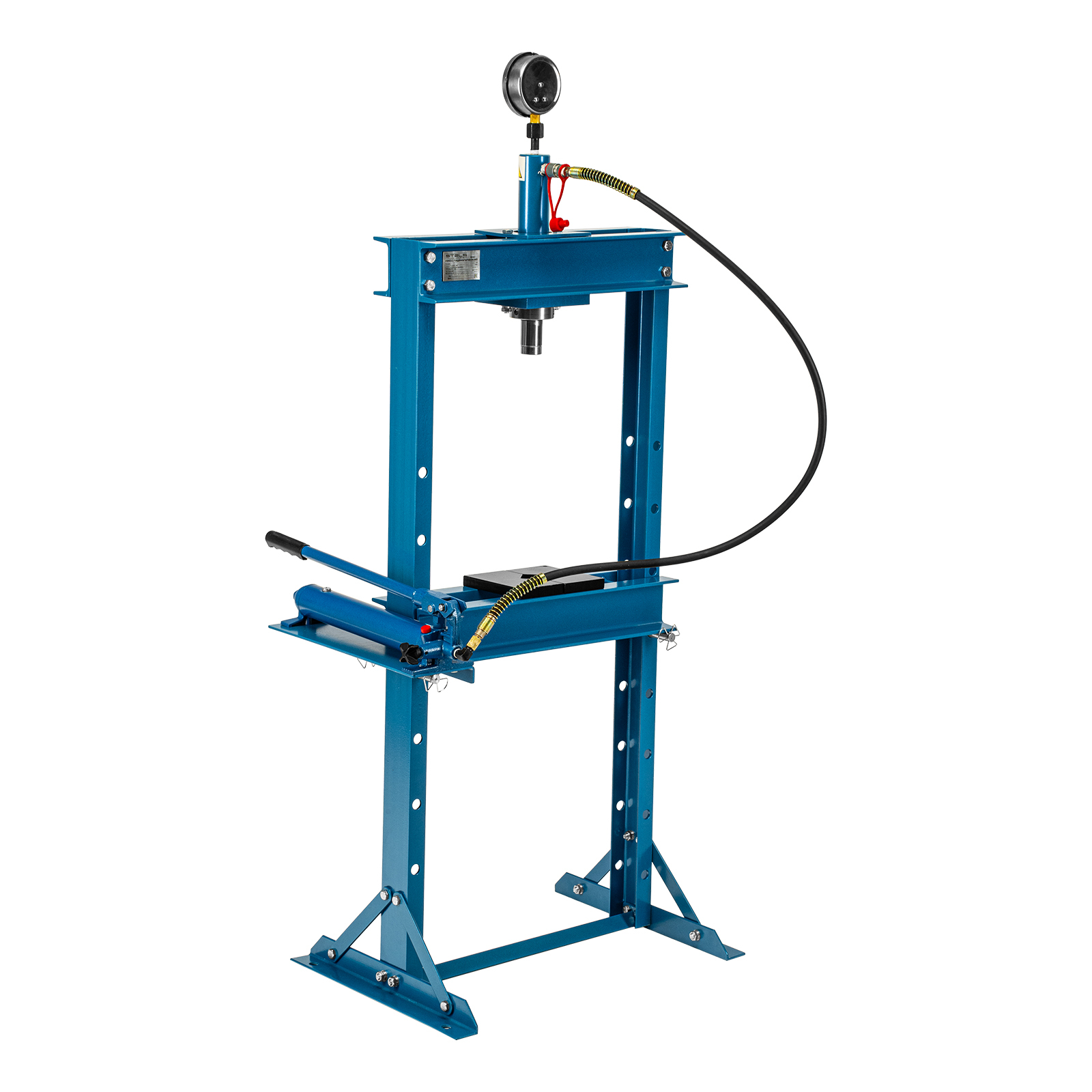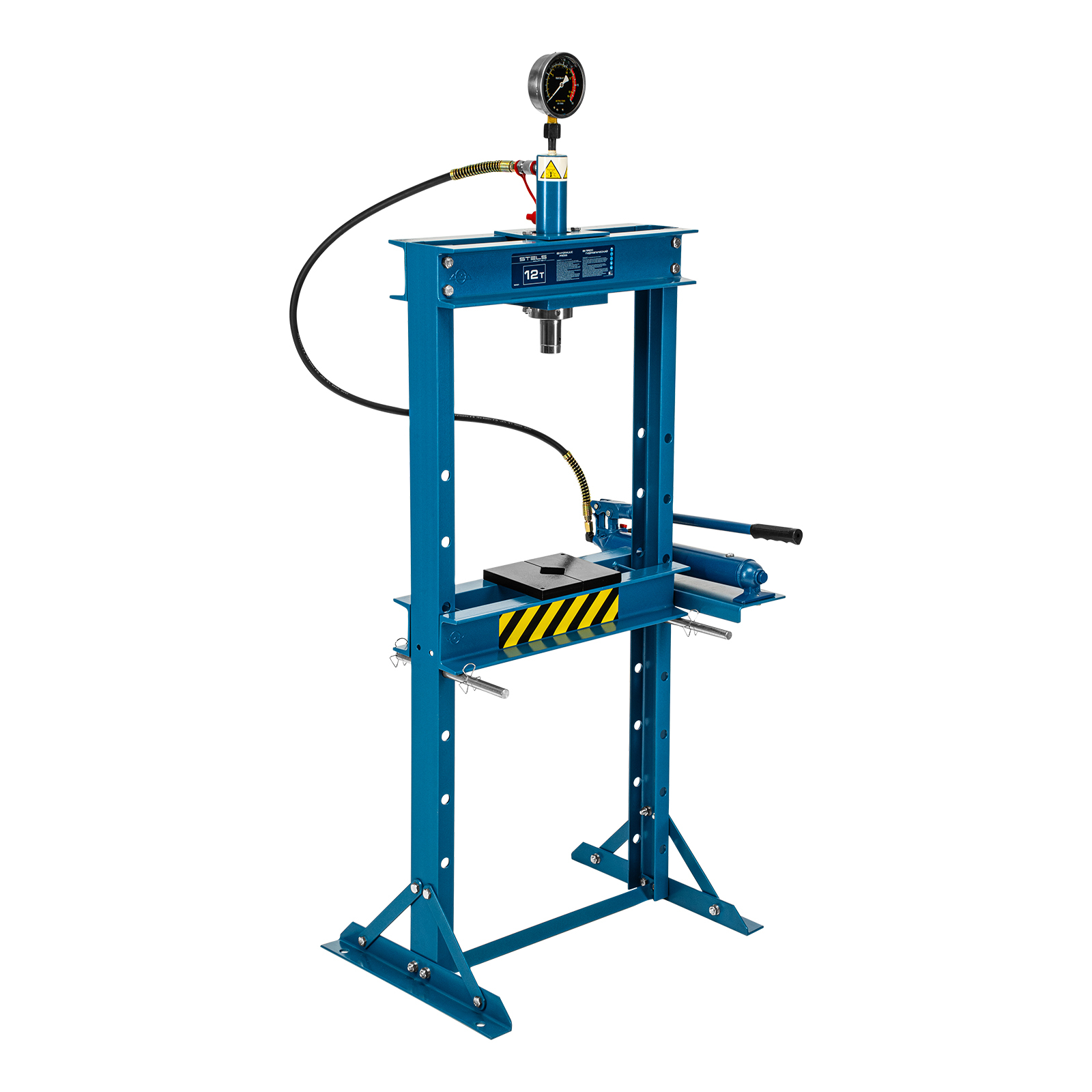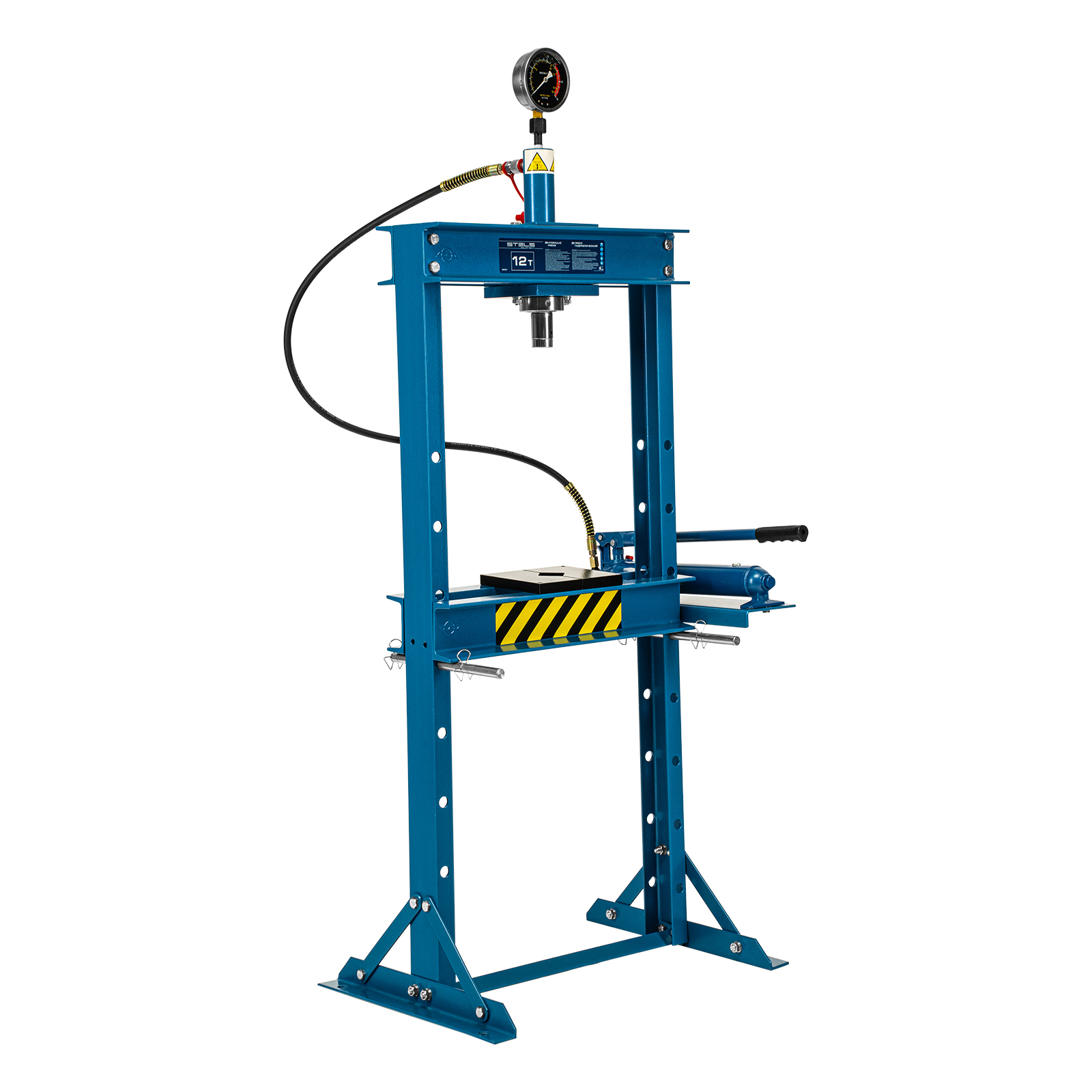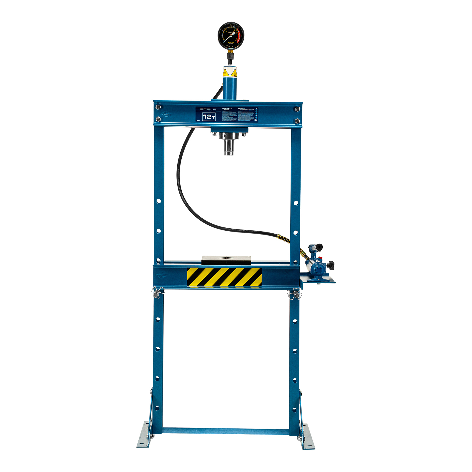 Гидравлический пресс Stels 52301 с манометром способен развивать усилие до 12 т. Его используют для запрессовки и выпрессовки подшипников, втулок, сайлентблоков, штифтов и других деталей. Для контроля давления предусмотрен глицеринозаполненный манометр. Высококачественный гидравлический насос с ручным приводом обеспечивает плавный ход штока. Пресс будет полезен в автосервисе или гараже.