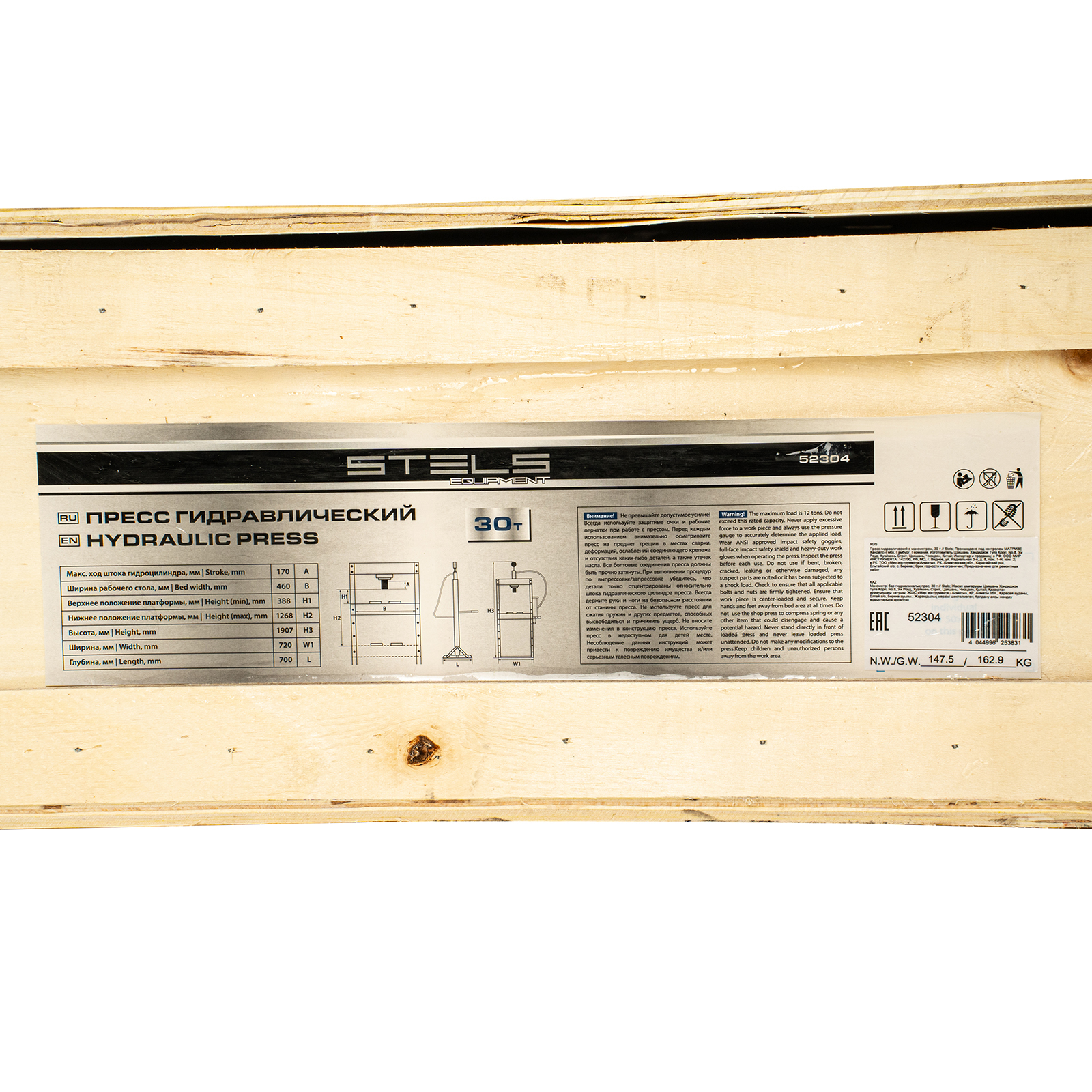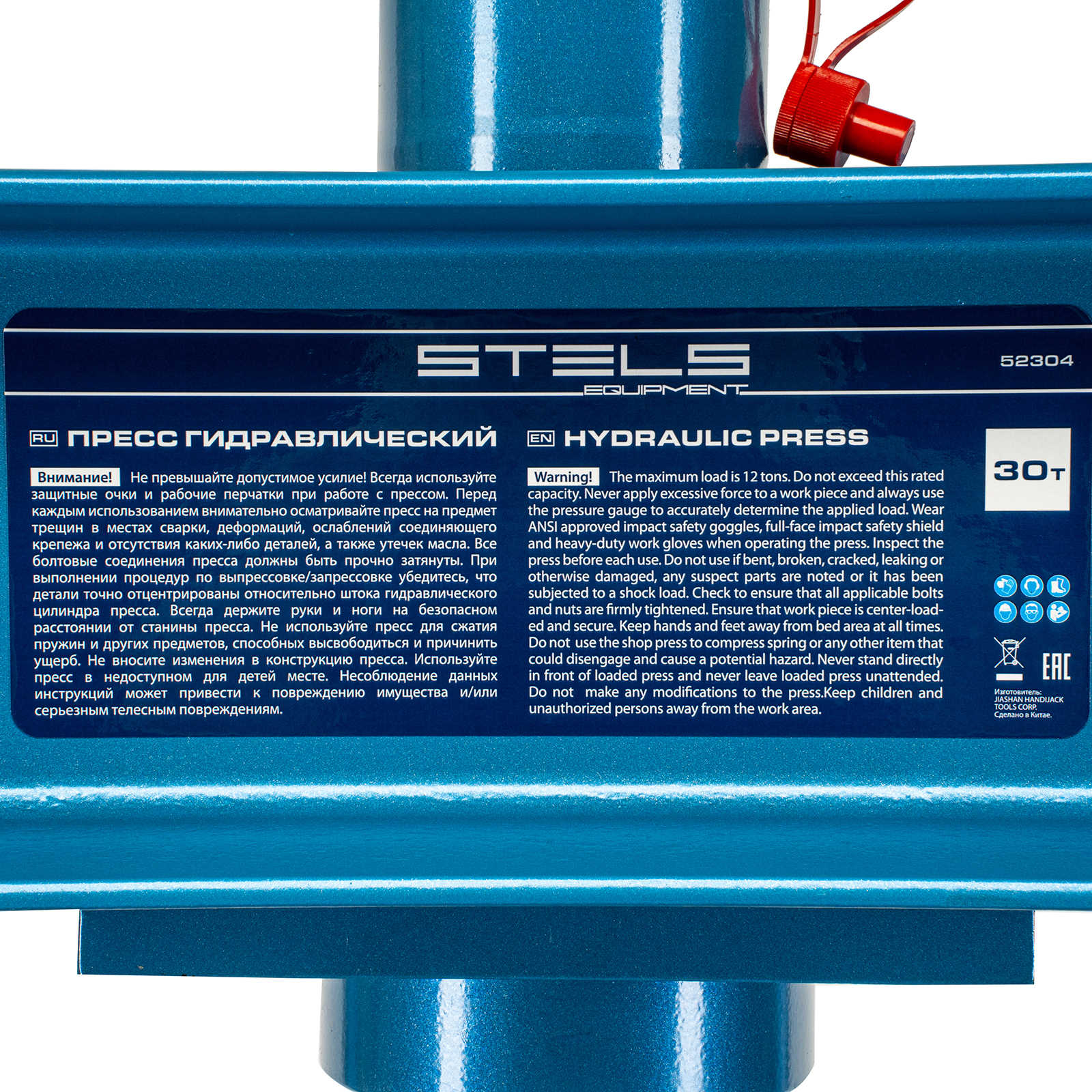 <p>Гидравлический пресс Stels 52304 с манометром позволяет прикладывать усилие до 30 тонн. Предназначен для запрессовки и выпрессовки деталей, работы со штифтами, втулками и т.д. Используется для выполнения сборочных и разборочных работ в гараже, автосервисах и предприятиях промышленного типа.</p><h2>Преимущества </h2><ul><li>Точный контроль прилагаемого усилия — при помощи глицеринозаполненного манометра можно отслеживать давление, чтобы избежать перегрузки.</li><li>Работа с деталями разного размера — высота положения стола регулируется, предусмотрена возможность установки в одном из 9 положений.</li><li>Точное позиционирование штока — цилиндр можно перемещать в горизонтальном направлении.</li><li>Удобная эксплуатация — гидравлический насос с ручным приводом обеспечивает плавный ход штока.</li><li>Разборная конструкция — пресс удобен в хранении и транспортировке.</li></ul>