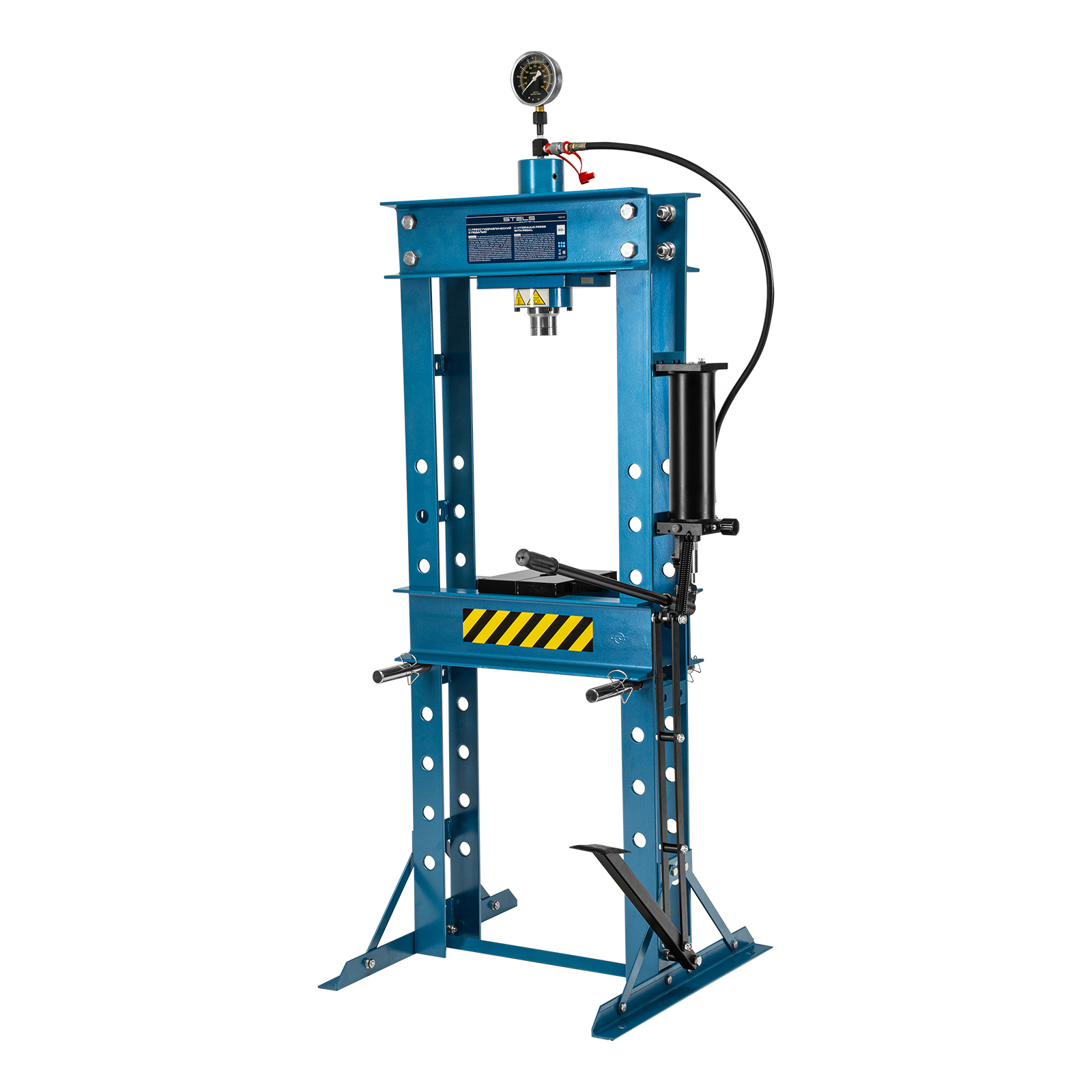 Гидравлический пресс Stels 52316 с манометром и педалью позволяет прикладывать усилие до 30 тонн. Предназначен для запрессовки и выпрессовки деталей, работы со штифтами, втулками и т.д. Используется для выполнения сборочных и разборочных работ в гараже, автосервисах и предприятиях промышленного типа.