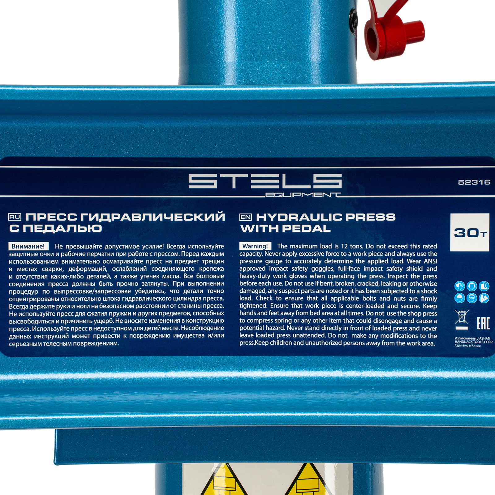 Пресс гидравлический с манометром и педалью, 30 т Stels