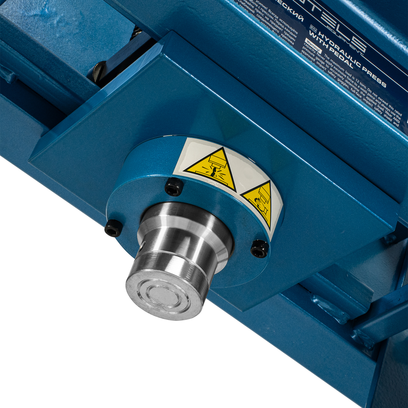 - Удобная эксплуатация — гидравлический насос с ручным приводом обеспечивает плавный ход штока, использование педали облегчает работу и повышает производительность.