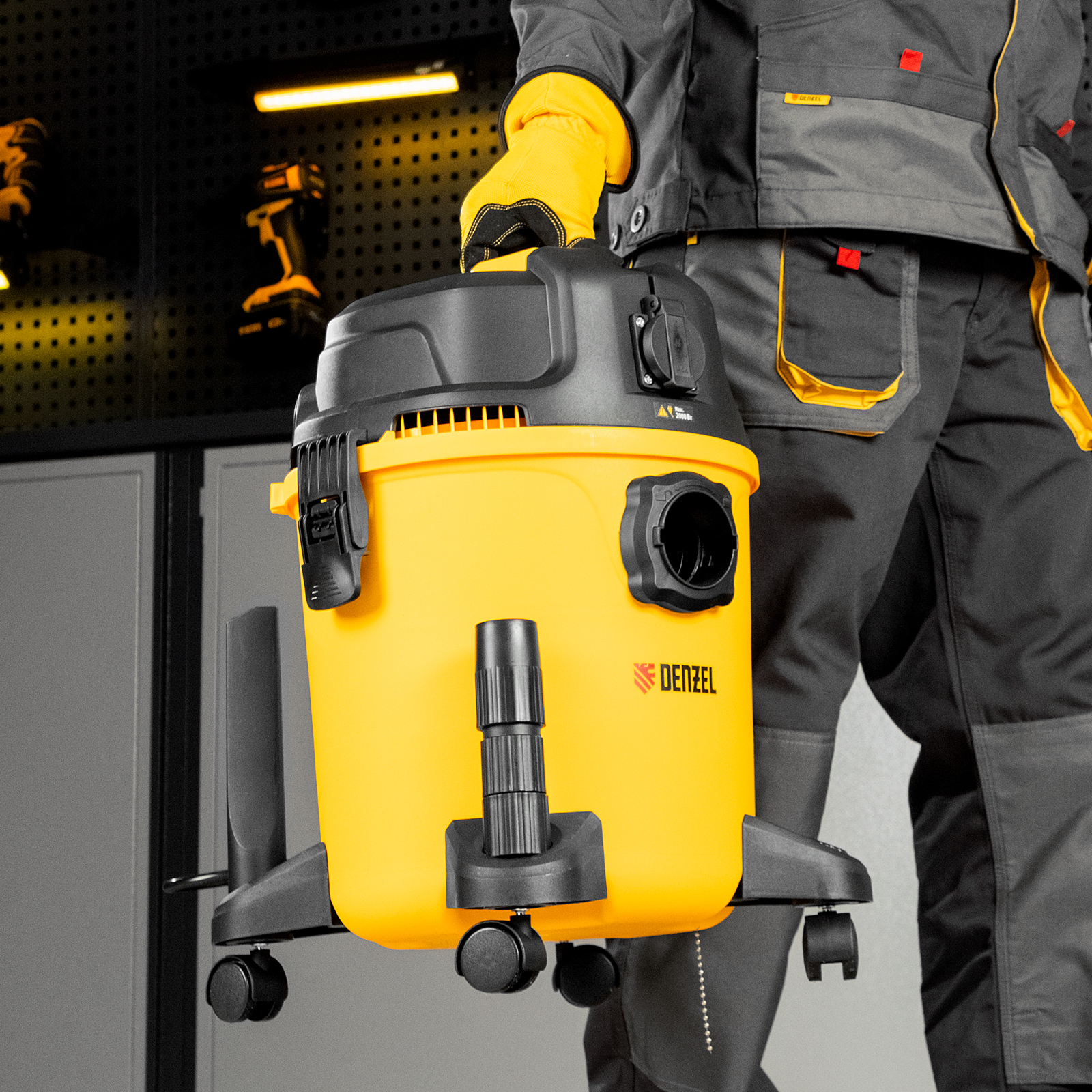 Пылесос строительный Denzel RVC20 28202 мощностью 1400 Вт, с баком объемом 20 л и шлангом длиной 3 м, оснащен розеткой с автосинхронизацией и предназначен для уборки бетонной, кирпичной пыли, опилок, стружки, также предусмотрена функция сбора воды. К пылесосу можно подключить электроинструмент, чтобы минимизировать количество пыли, образующейся в результате пиления, сверления, фрезерования. Техника используется во время проведения строительных и ремонтных работ, будет полезна для поддержания чистоты в мастерской, гараже, производственном помещении.