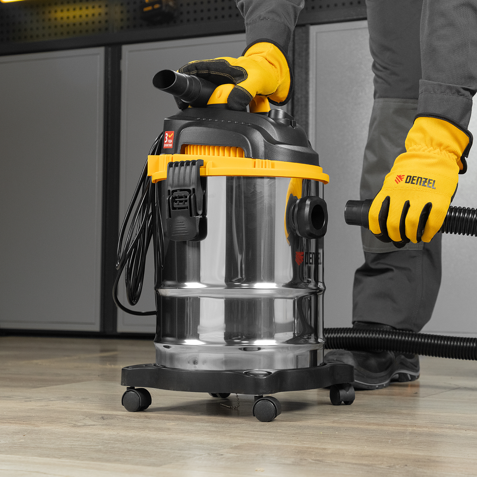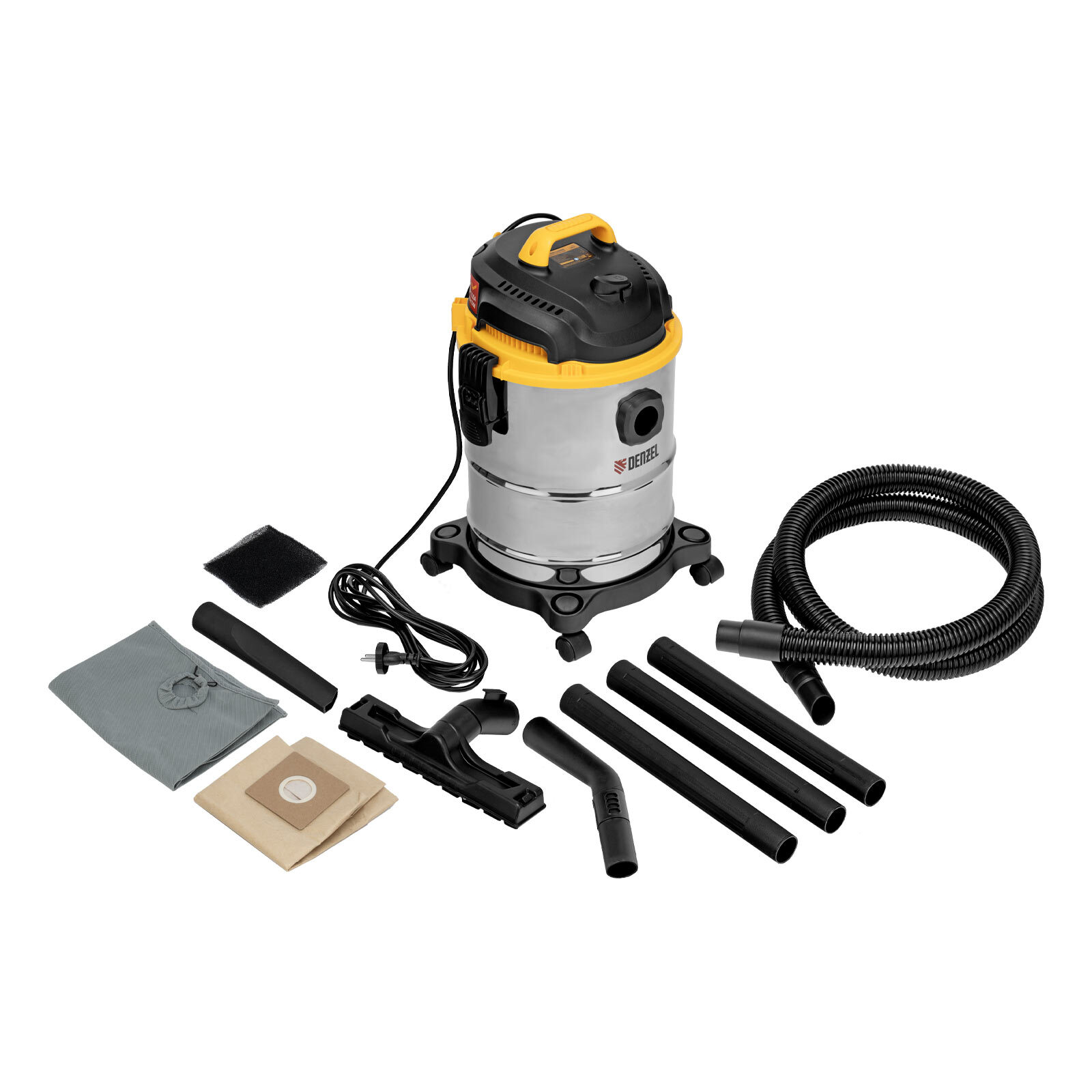 Пылесос строительный SVC15, 1200 Вт, бак 15 л, шланг 2 м Denzel