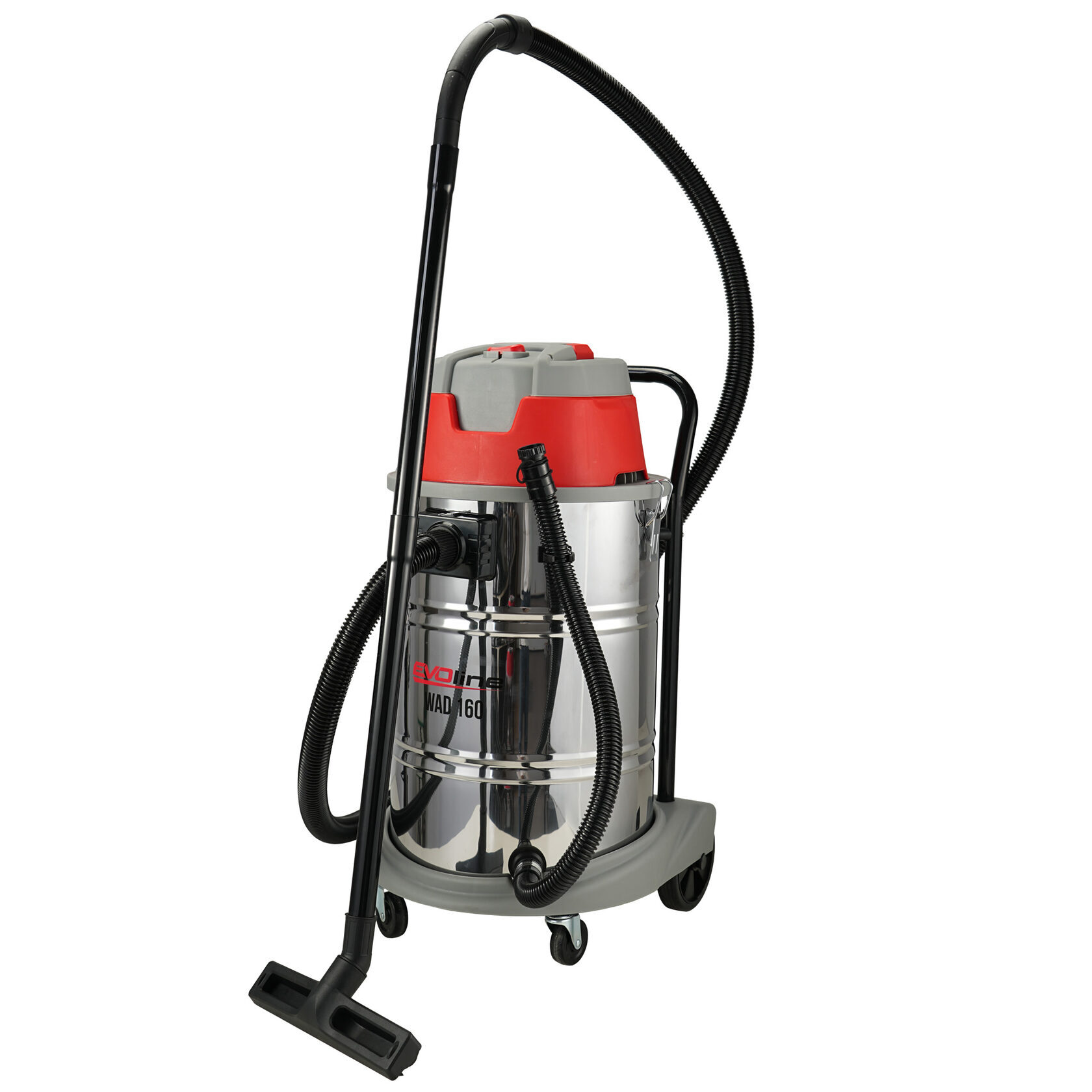 Электрический пылеводосос EVOline WAD 160 предназначен для коммерческого использования и отлично подходит как для сухой, так и для влажной уборки. Бак на 60 литров из нержавеющей стали установлен на прочной тележке с металлическими колесами. Большой объём бака позволяет реже прерываться на удаление мусора. Сливной шланг облегчает очистку бака. Гибкий шланг длиной 2,5 м. Длина кабеля 5 м.