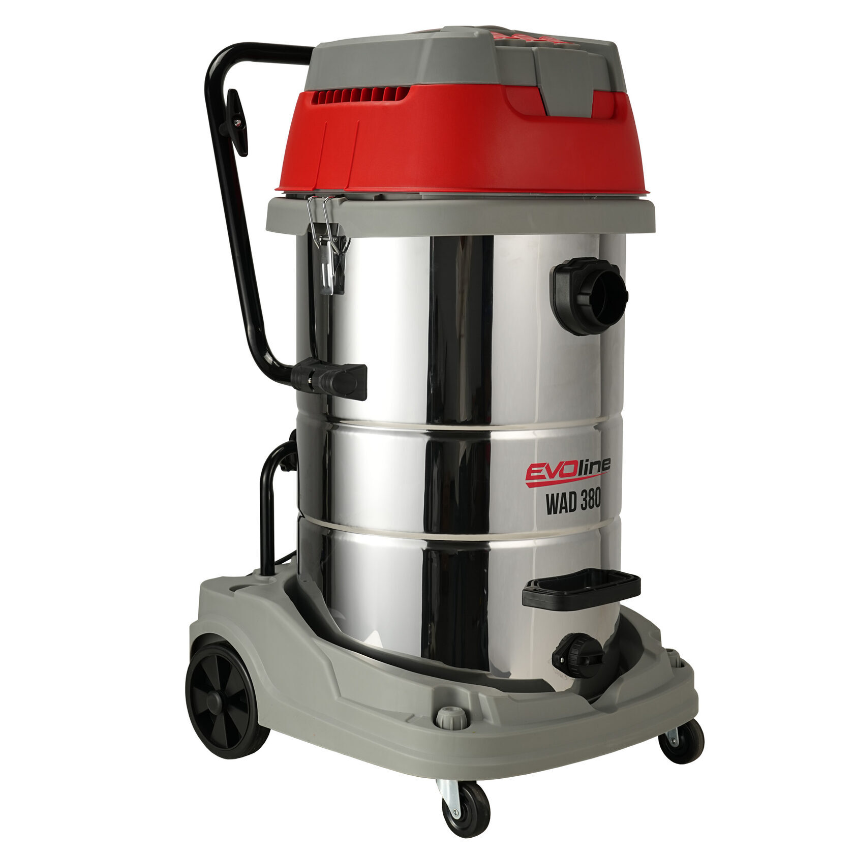 Электрический пылеводосос EVOline WAD 380 оборудован тремя мощными турбинами с раздельным включением. Пылеводосос предназначен для коммерческого и промышленного использования и отлично подходит для сбора сухой и влажной грязи в очень больших объемах. Бак из нержавеющей стали объемом 80 литров может откидываться для очистки. При необходимости есть возможность снять бак с тележки. Для слива жидкой грязи и воды в нижней части бака установлена пробка. К тележке пылесоса может быть смонтирована балка для уборки больших площадей. Износостойкий шланг длиной 2,5 м. Длина кабеля 5 м.