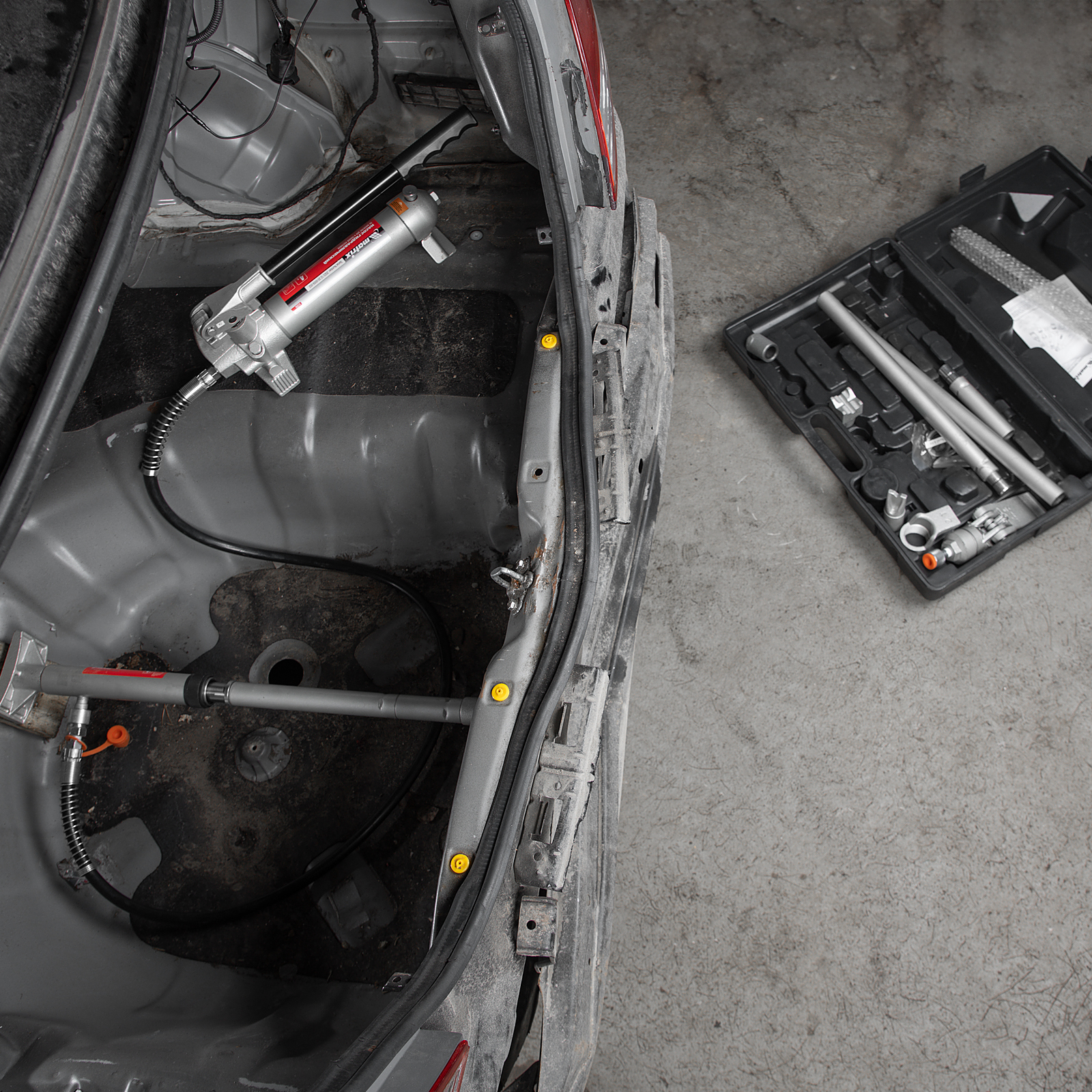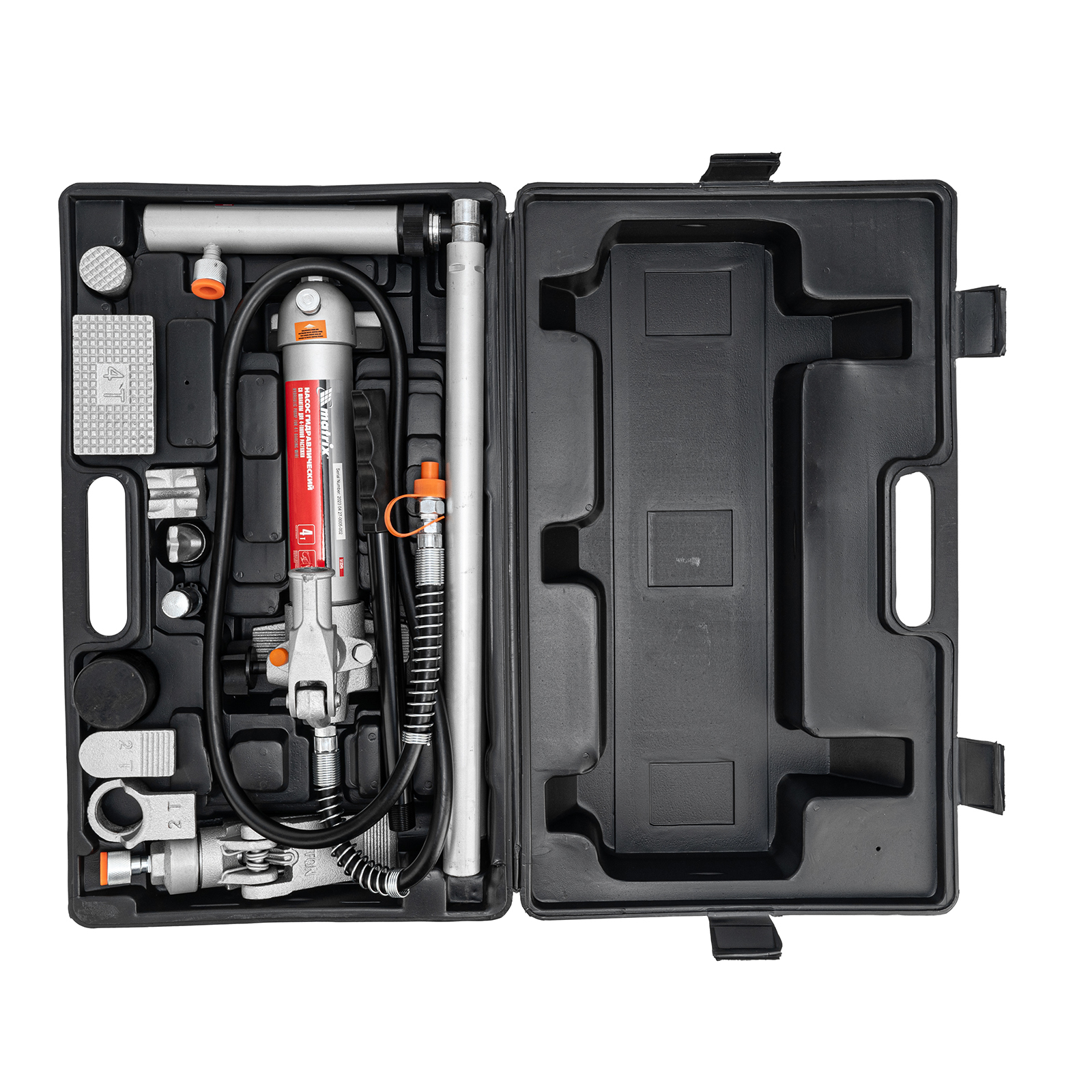 Гидравлическая растяжка Matrix 513345, 4 т, входит в набор из 17 предметов — гидронасоса, цилиндра, удлинителя, опорной площадки, адаптера и 7 сменных насадок в пластиковом кейсе. Позволяет точечно прилагать усилие до 4 тонн и используется для восстановления геометрии металлических изделий. Будет полезен для выполнения кузовных работ и рихтовки металлоконструкций. В комплект входят насадки различной формы, в том числе предназначенные для работы в труднодоступных местах, воздействия на конструкции с углами или разведения близко расположенных элементов. Можно выбрать оптимальную насадку в зависимости от марки автомобиля, а также области и степени повреждения.