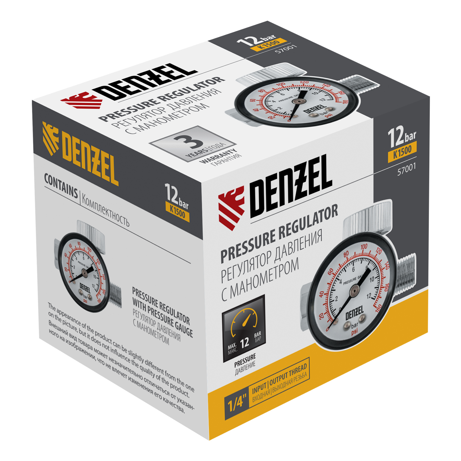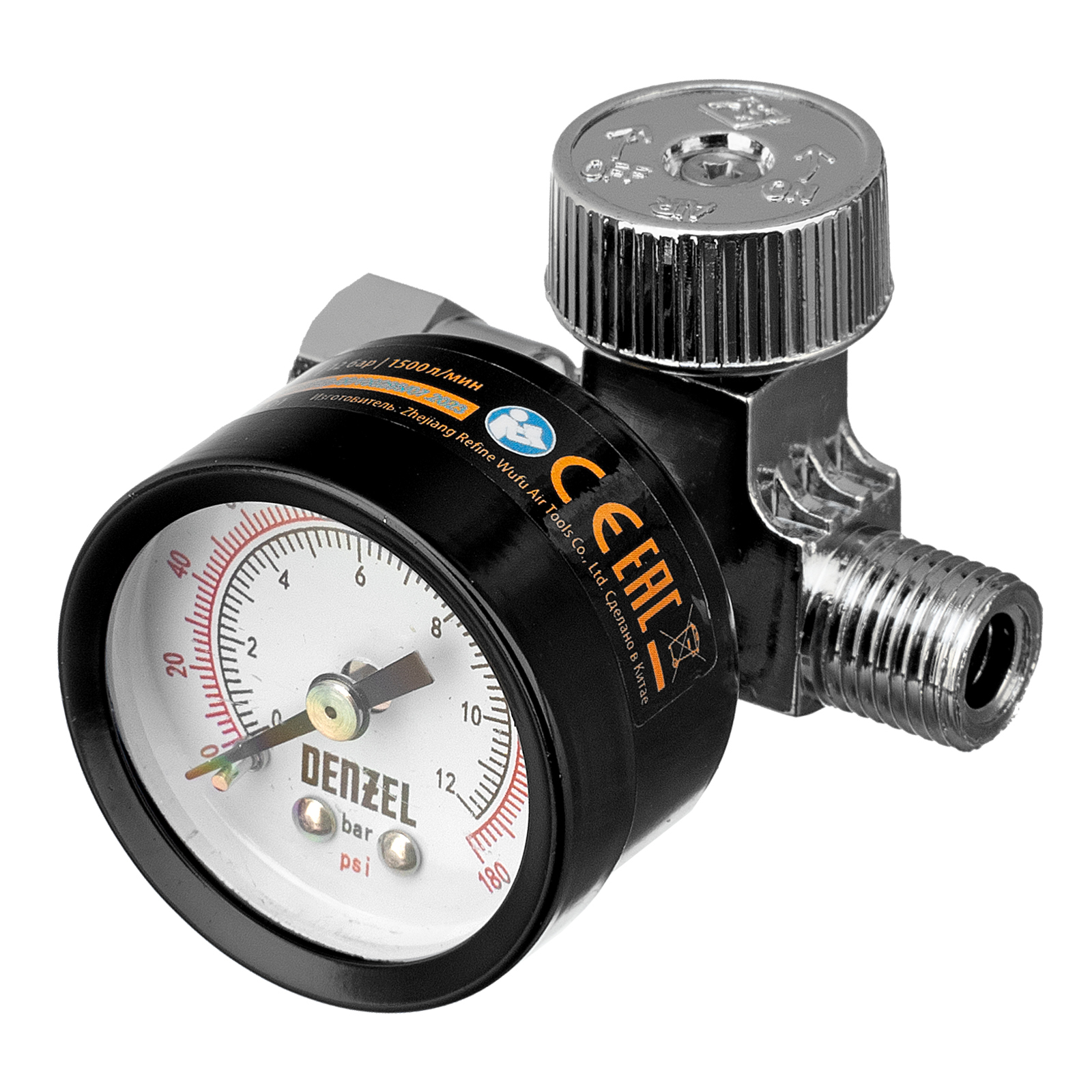Регулятор давления с манометром для краскораспылителя K1500, 12 бар, 1/4" Denzel