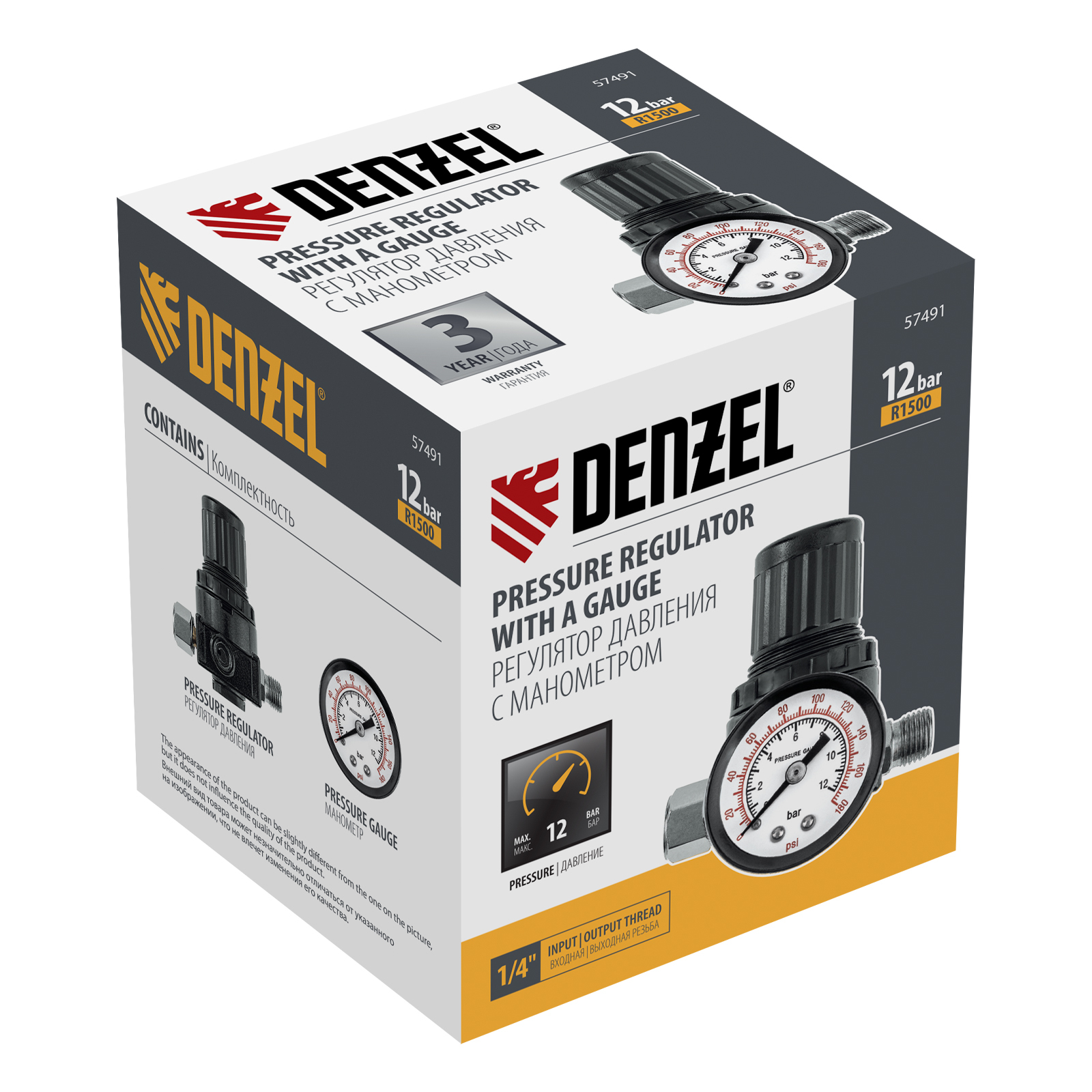 Регулятор давления с манометром R1500, 12 бар, 1/4" Denzel