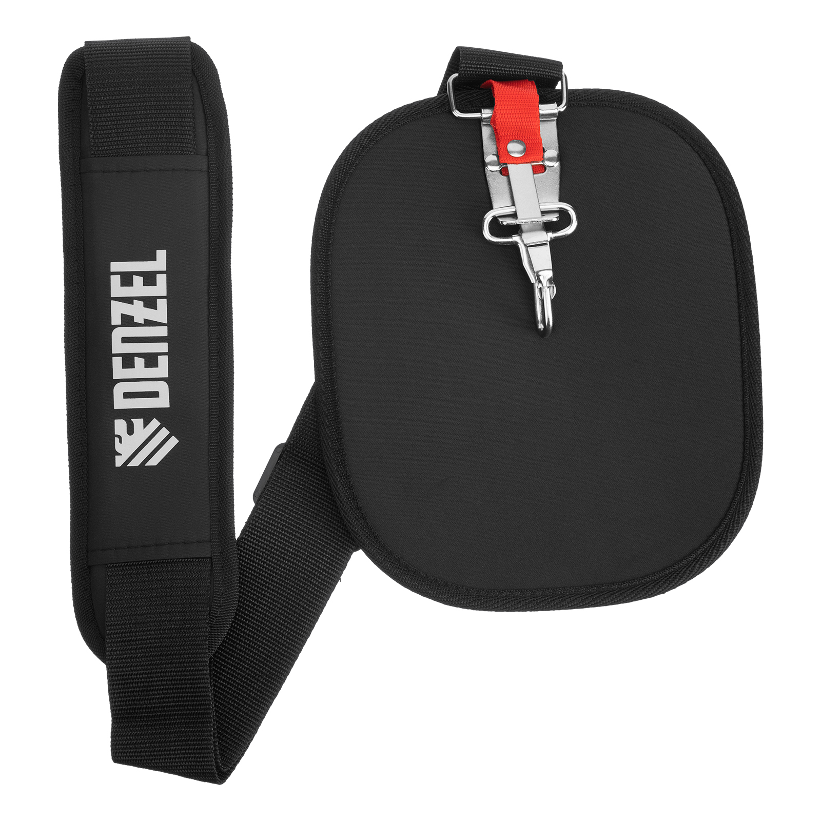 Универсальный ремень Denzel 96368 с защитой бедра предназначен для облегчения работы с триммерами. Он подвешивается на плечо, позволяя снизить нагрузку на руки, что удобно для выполнения работ средней продолжительности.