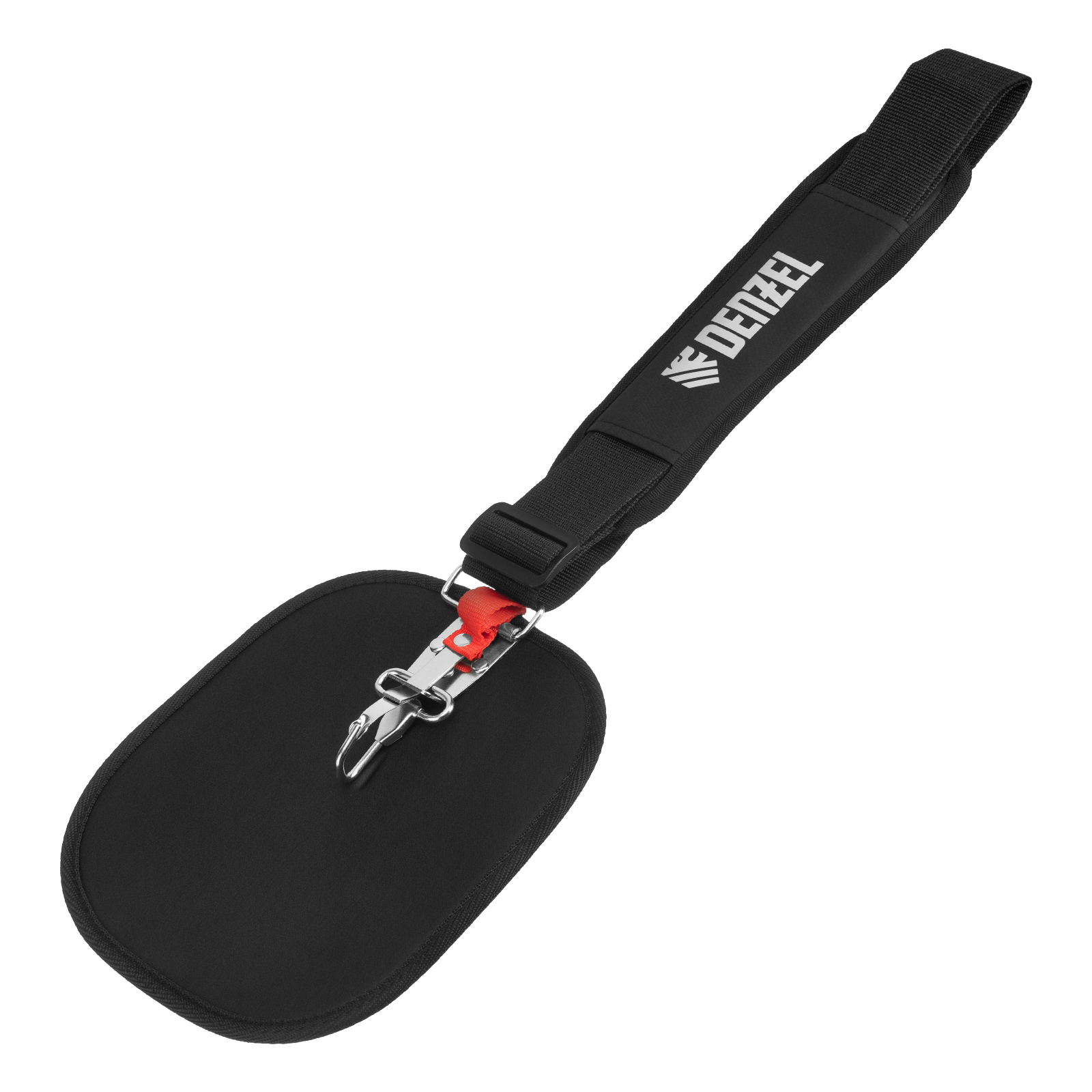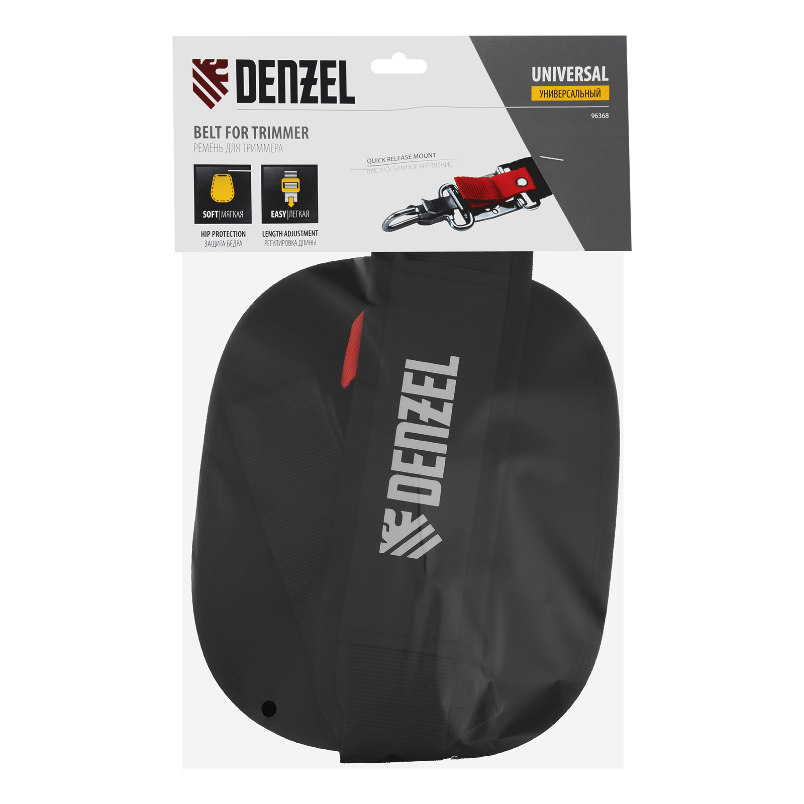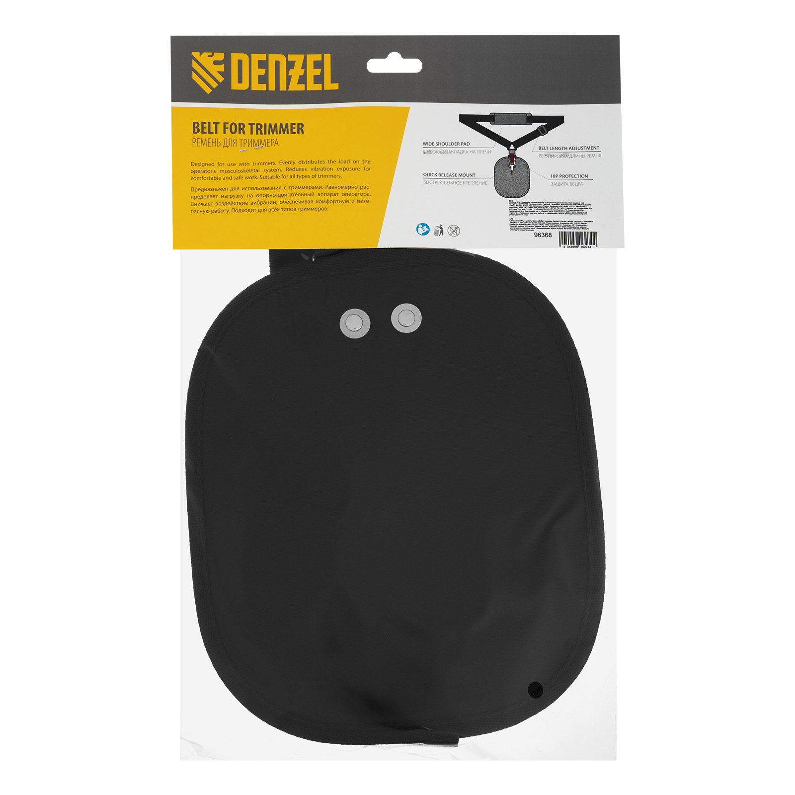 <p>Универсальный ремень Denzel 96368 с защитой бедра предназначен для облегчения работы с триммерами. Он подвешивается на плечо, позволяя снизить нагрузку на руки, что удобно для выполнения работ средней продолжительности.</p><h2>Преимущества</h2><ul><li>Защита бедра — мягкая пластина поглощает вибрации и предохраняет пользователя от ударов штангой триммера.</li><li>Износостойкость — ремень выполнен из прочного материала, устойчивого к разрыву и истиранию.</li><li>Удобная работа — изделие легко пристегивается и отстегивается благодаря быстросъемному карабину и системе Fast Release.</li><li>Комфортное использование — ремень регулируется по длине, а благодаря дополнительной накладке не натирает плечо и не давит на него.</li></ul>