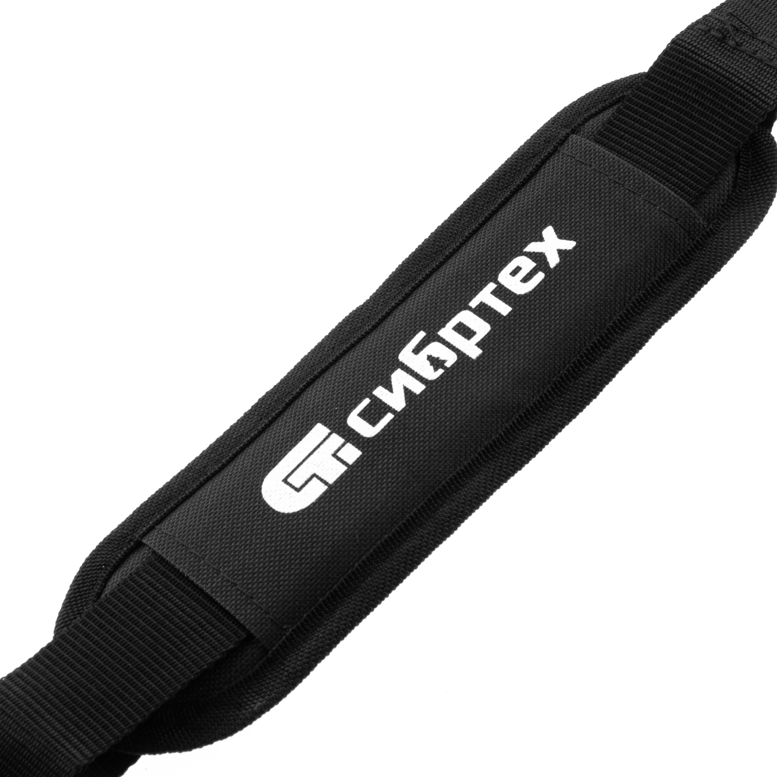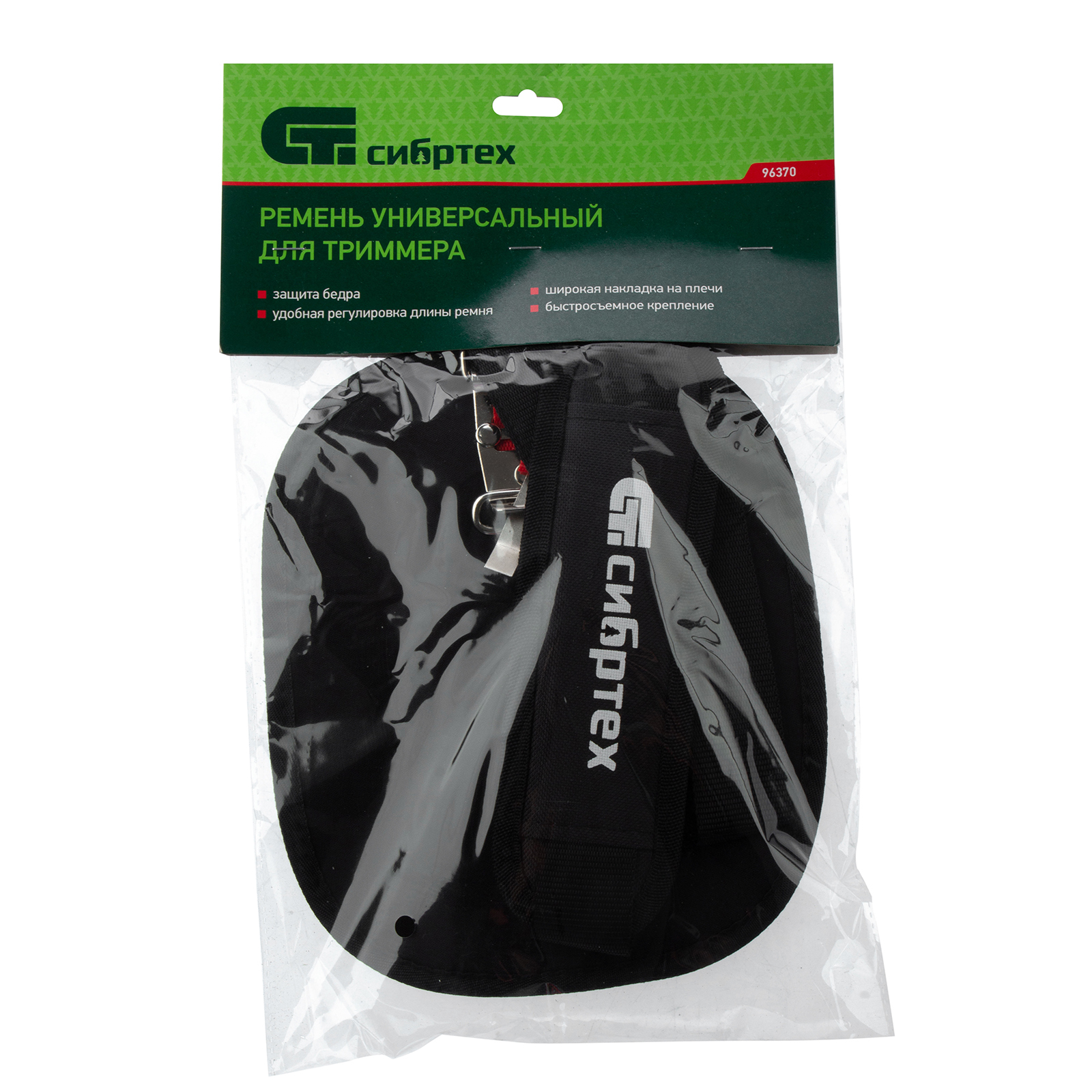 <p>Универсальный ремень Сибртех 96370 с защитой бедра предназначен для облегчения работы с триммерами. Он подвешивается на плечо, позволяя снизить нагрузку на руки, что удобно для выполнения работ средней продолжительности.</p><h2>Преимущества</h2><ul><li>Защита бедра — мягкая пластина поглощает вибрации и предохраняет пользователя от ударов штангой триммера.</li><li>Износостойкость — ремень выполнен из прочного материала, устойчивого к разрыву и истиранию.</li><li>Удобная работа — изделие легко пристегивается и отстегивается благодаря быстросъемному карабину и системе Fast Release.</li><li>Комфортное использование — ремень регулируется по длине, а благодаря дополнительной накладке не натирает плечо и не давит на него.</li></ul>