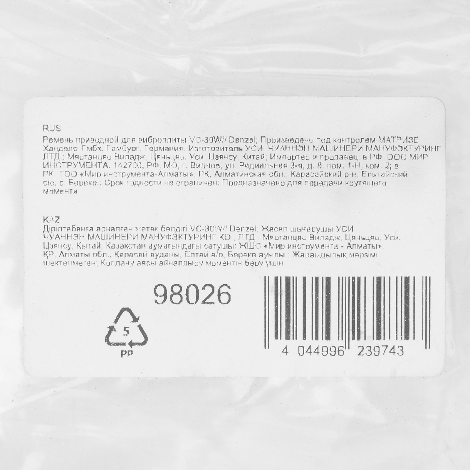 Приводной ремень Denzel 98026 передает крутящий момент с выходного вала, обеспечивая эффективное функционирование виброплиты Denzel VC-30W. Позволяет восстановить работоспособность техники в случае растяжения или обрыва установленного ремня.