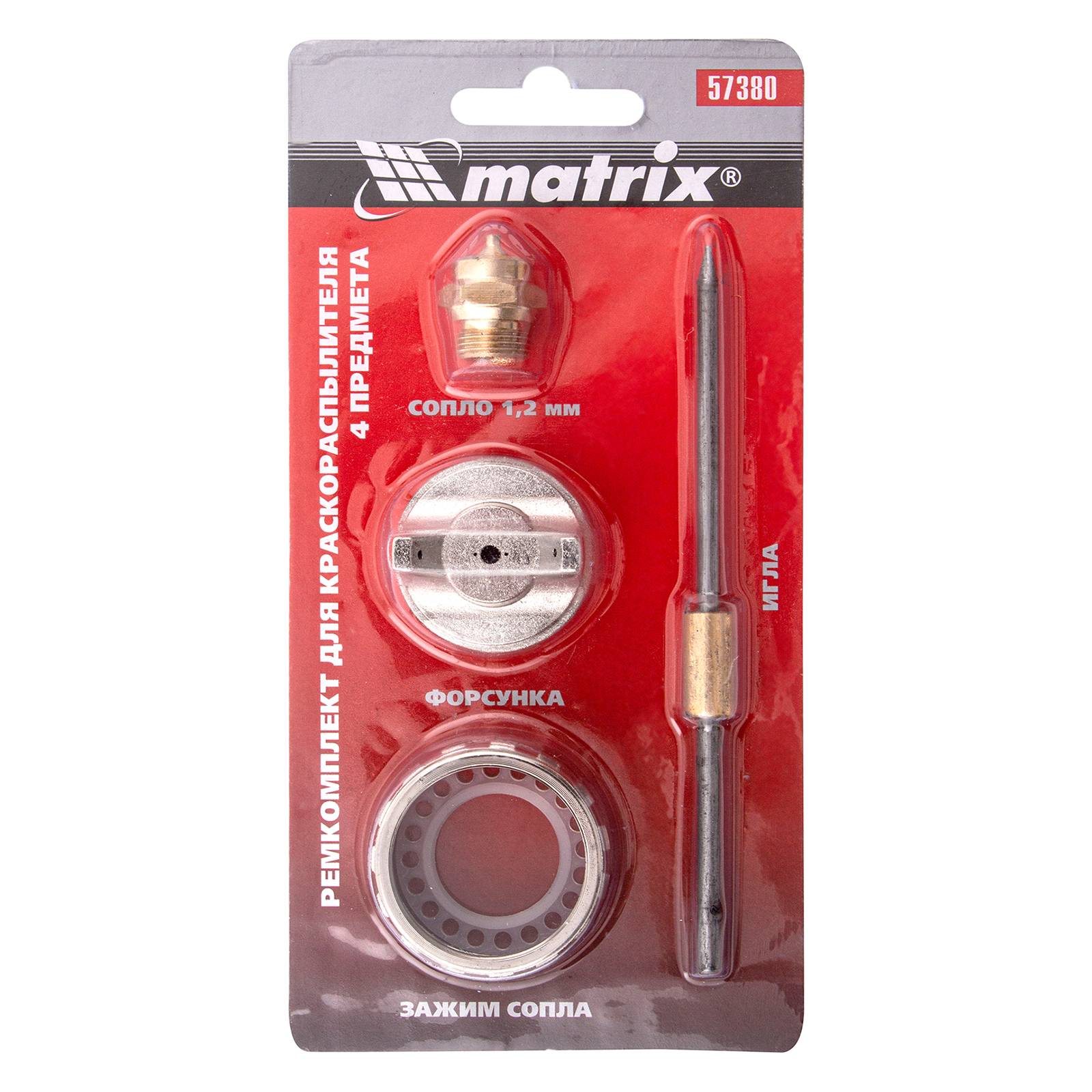Ремкомплект для краскораспылителя 4 предмета : сопло 1.2 мм + игла + форсунка + зажим сопло Matrix
