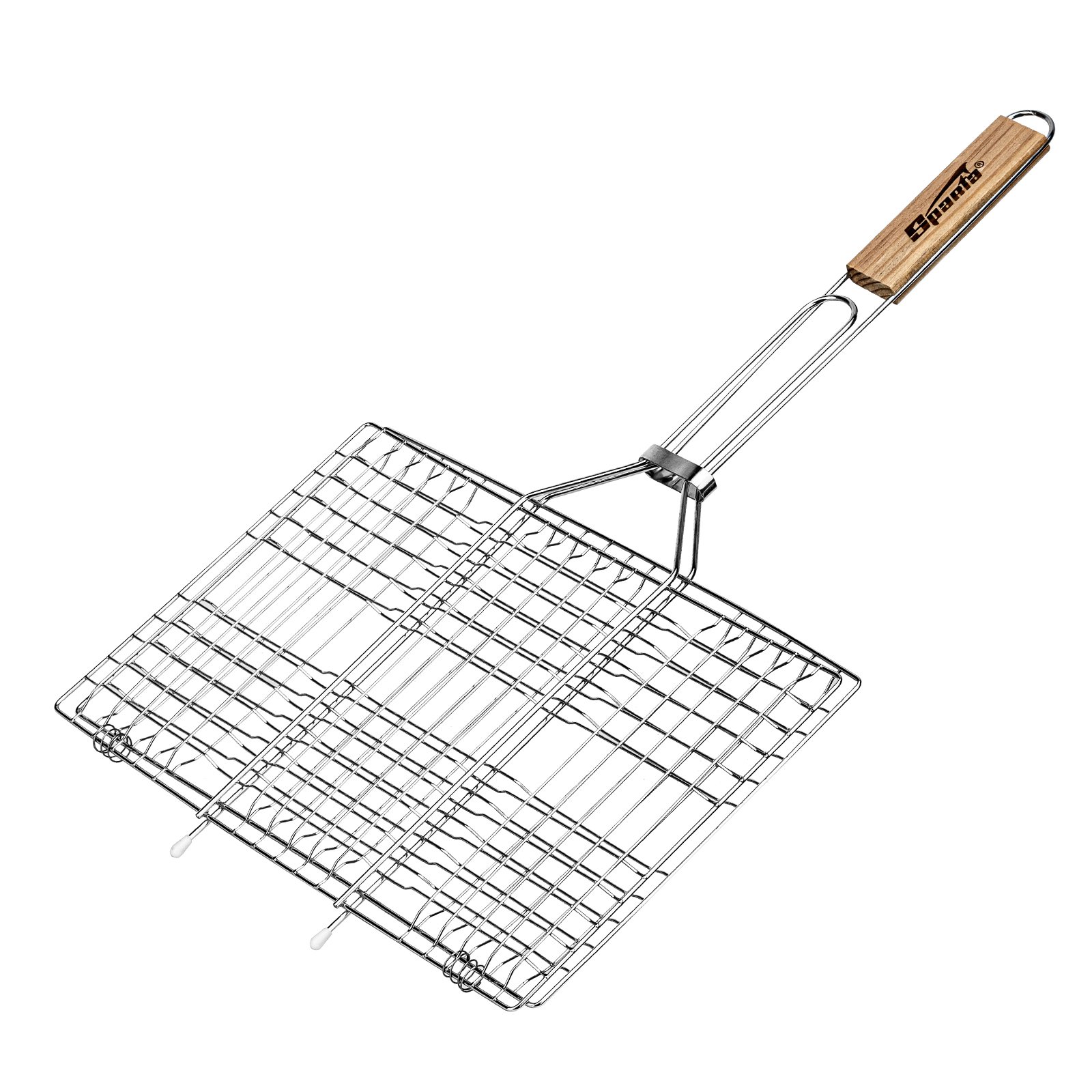 <p>Хромированная решетка-гриль Sparta 69567 размером 220 х 340 мм будет полезна для любителей блюд, приготовленных на углях. С ее помощью можно качественно и равномерно пожарить мясо, овощи, птицу и рыбу, поэтому они получаются вкусными и сочными.</p><h2>Преимущества</h2><ul><li>Долговечность и надежность решетки достигается за счет качественного материала изготовления — жаропрочной пищевой стали с хромовым покрытием.</li><li>Рукоятка из поливинилхлорида (PVC) не скользит в руках, почти не нагревается при контакте с горячими поверхностями и не утяжеляет конструкцию решетки.</li><li>Решетка имеет увеличенные опорные стержни, благодаря чему она надежно фиксируется на мангале, а рабочая поверхность при этом используется полностью.</li></ul>