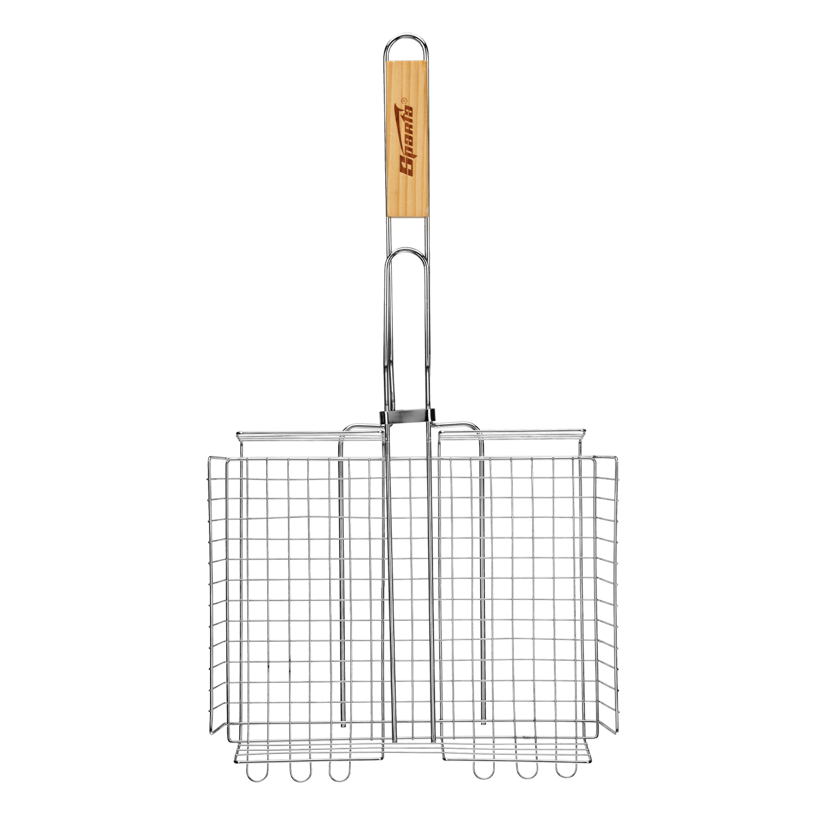 Объемная хромированная решетка-гриль Sparta 69553 размером 240 х 310 х 55 мм используется для удобного размещения продуктов и их приготовления на углях. С ее помощью мясо, рыба или овощи обжариваются равномерно с двух сторон, что позволяет получить вкусные блюда. За счет регулировки высоты решетки возможно приготовление продуктов любого размера без потери сока.