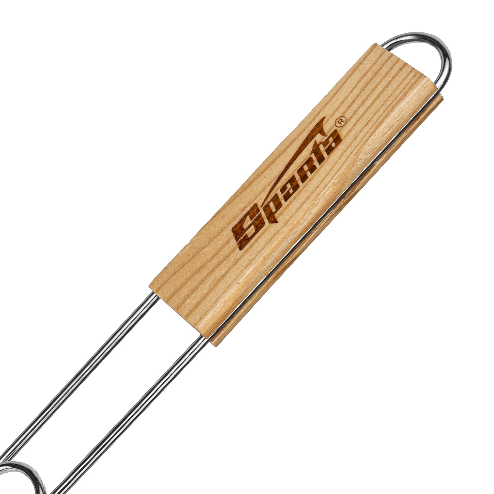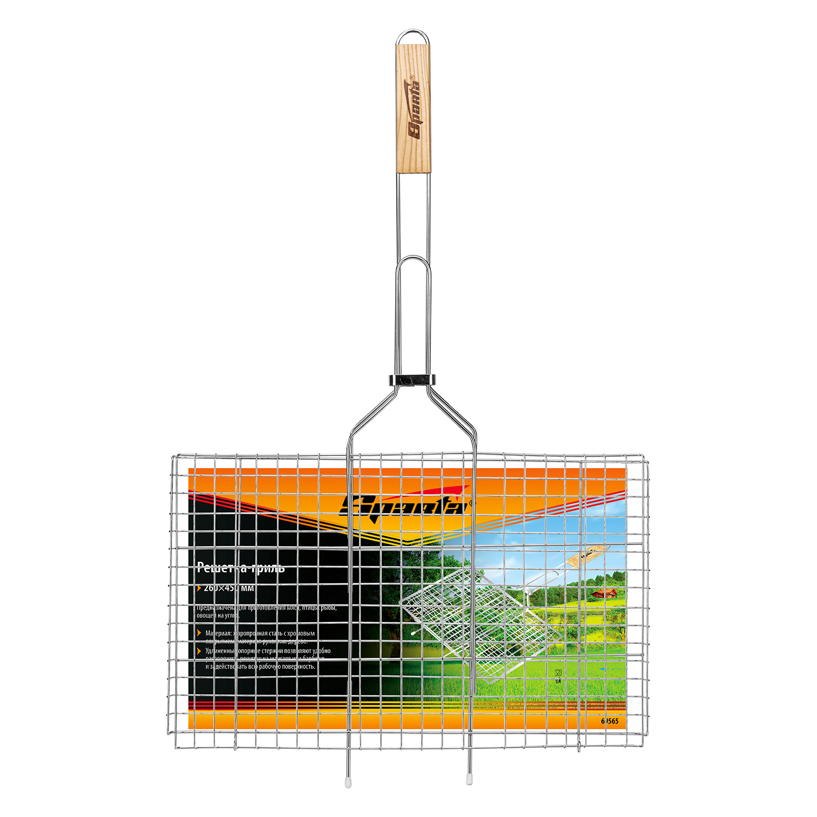 <p>Хромированная решетка-гриль Sparta 69565 размером 260 х 450 мм будет полезна для любителей блюд, приготовленных на углях. С ее помощью можно качественно и равномерно пожарить мясо, овощи, птицу и рыбу, поэтому они получаются вкусными и сочными.</p><h2>Преимущества</h2><ul><li>Долговечность и надежность решетки достигается за счет качественного материала изготовления — жаропрочной пищевой стали с хромовым покрытием.</li><li>Рукоятка из древесины удобно лежит в руках и приятна на ощупь.</li><li>Решетка имеет увеличенные опорные стержни, благодаря чему она надежно фиксируется на мангале, а рабочая поверхность при этом используется полностью.</li></ul>