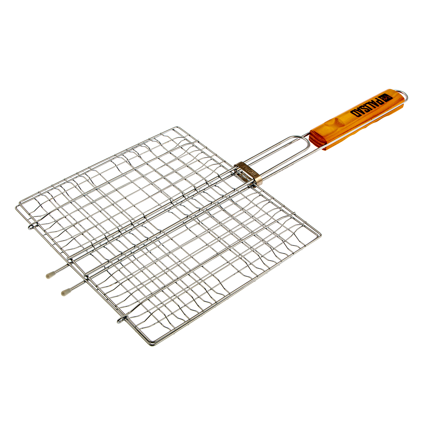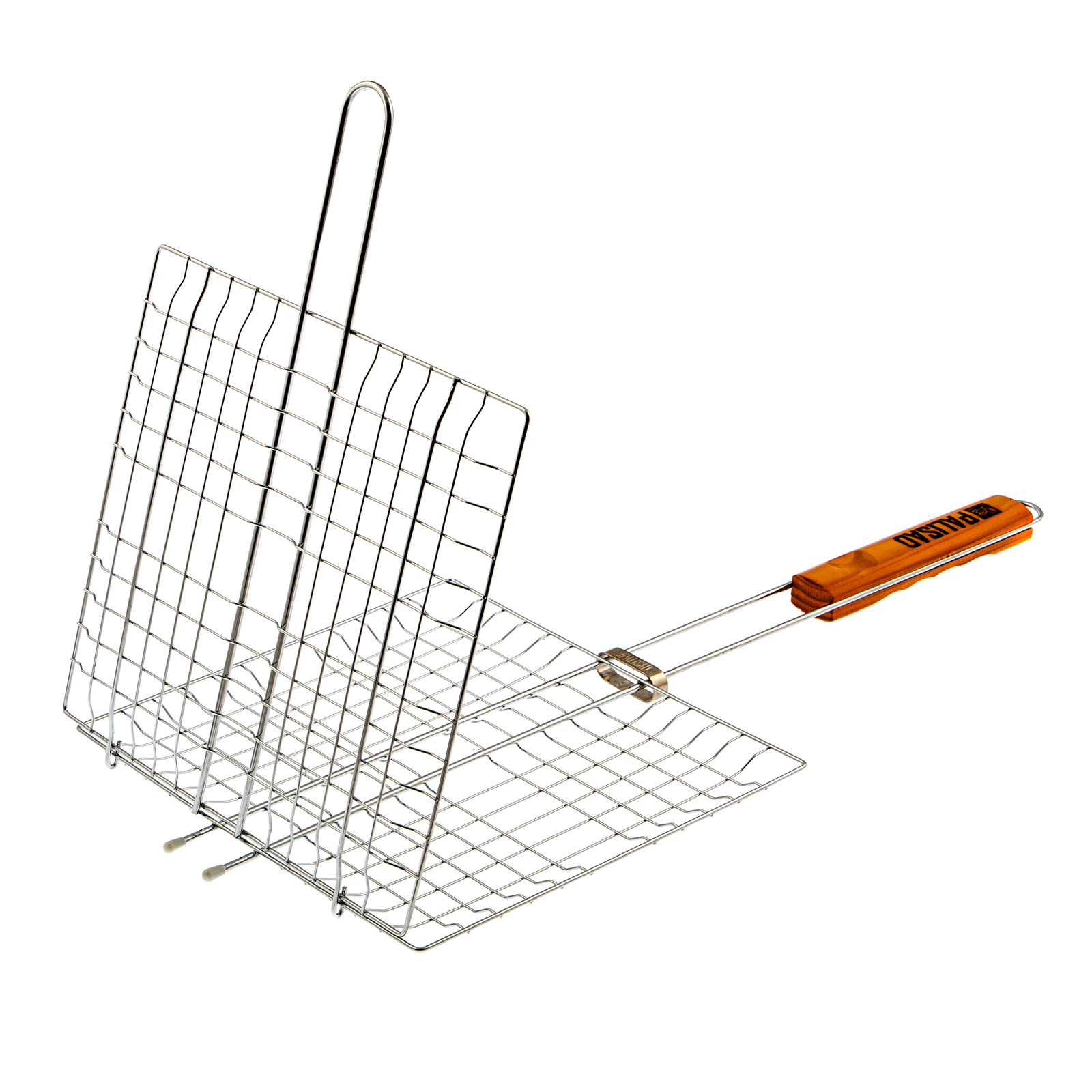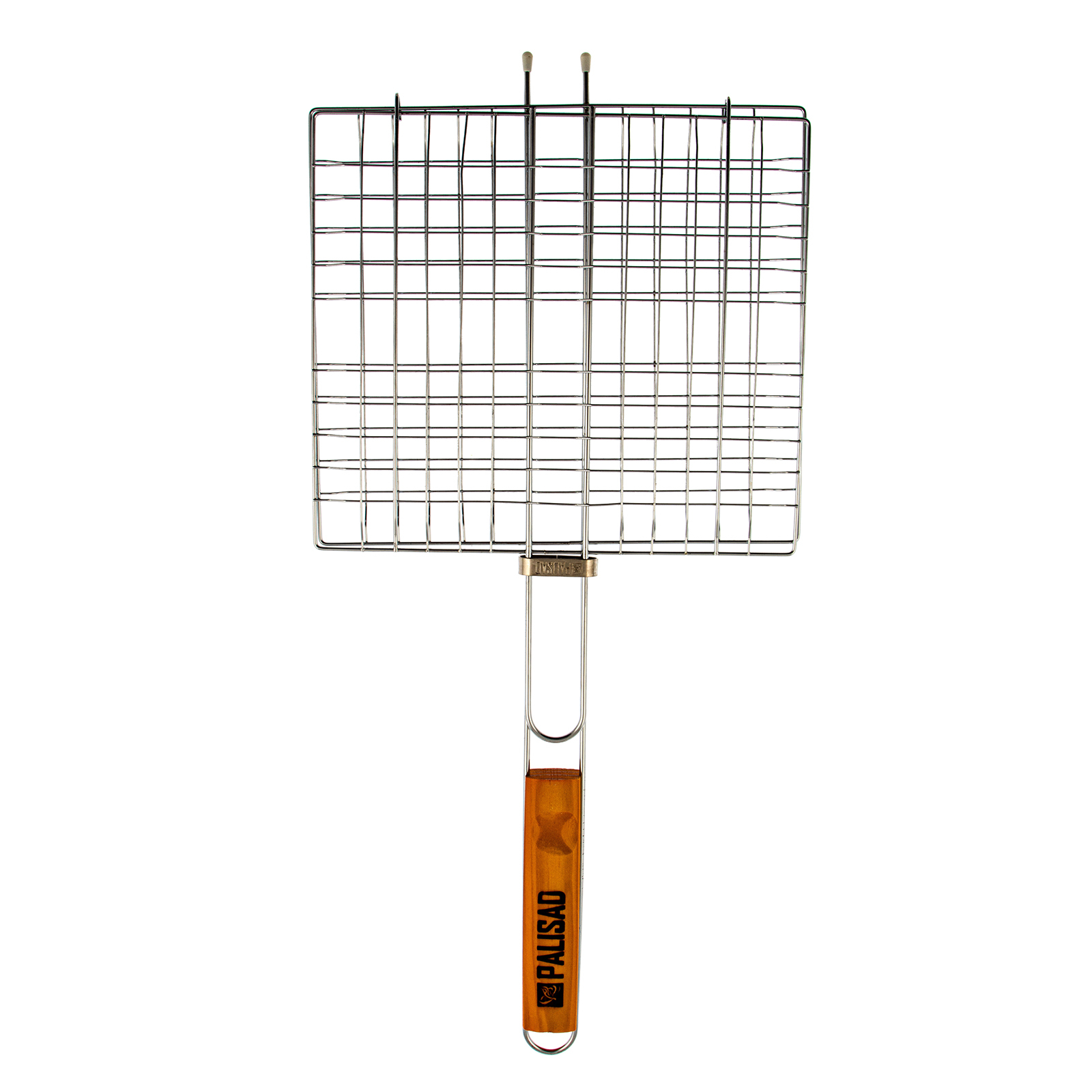 <p>Хромированная решетка гриль Palisad Camping 69555 размером 270 х 240 мм предоставляет возможность приготовления на углях продуктов, которые трудно наколоть на шампур. Она будет полезна любителям отдыха на открытом воздухе для жарки стейков, рыбы, овощей и т.д.</p><h2>Преимущества</h2><ul><li>Гарантией качества и долговечности решетки выступает жаропрочная сталь, из которой она выполнена.</li><li>Хромированная решетка устойчива к коррозии, поэтому на ней не образуется ржавчина.</li><li>Благодаря широкому кольцу-фиксатору части решетки не раскрываются в процессе эксплуатации, поэтому еда не выпадет.</li><li>Деревянная рукоятка оснащена подпальцевыми выемками для удобного захвата.</li><li>Решетка оборудована увеличенными опорными стержнями, за счет чего прочно фиксируется на мангале, а при готовке ее площадь используется полностью.</li></ul>