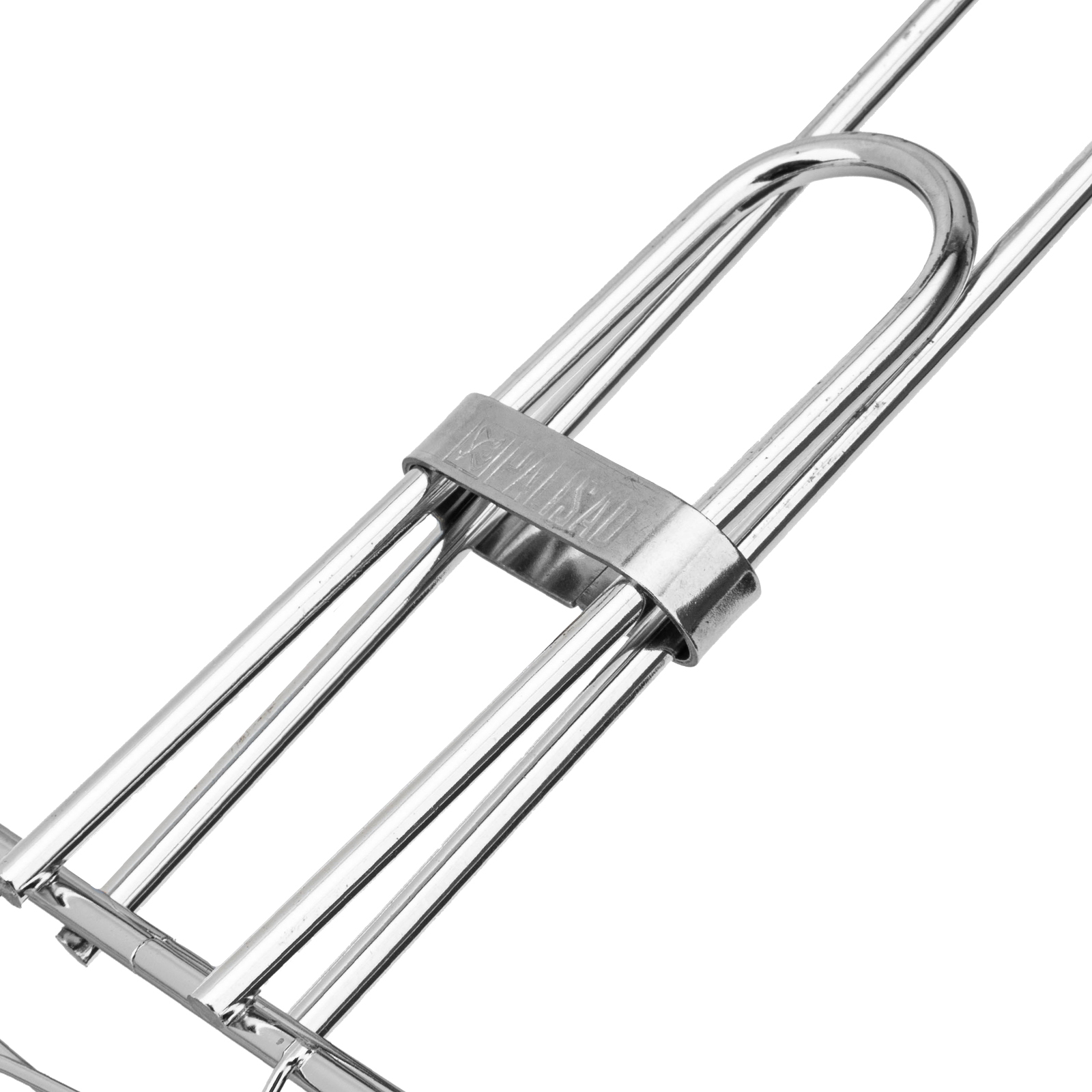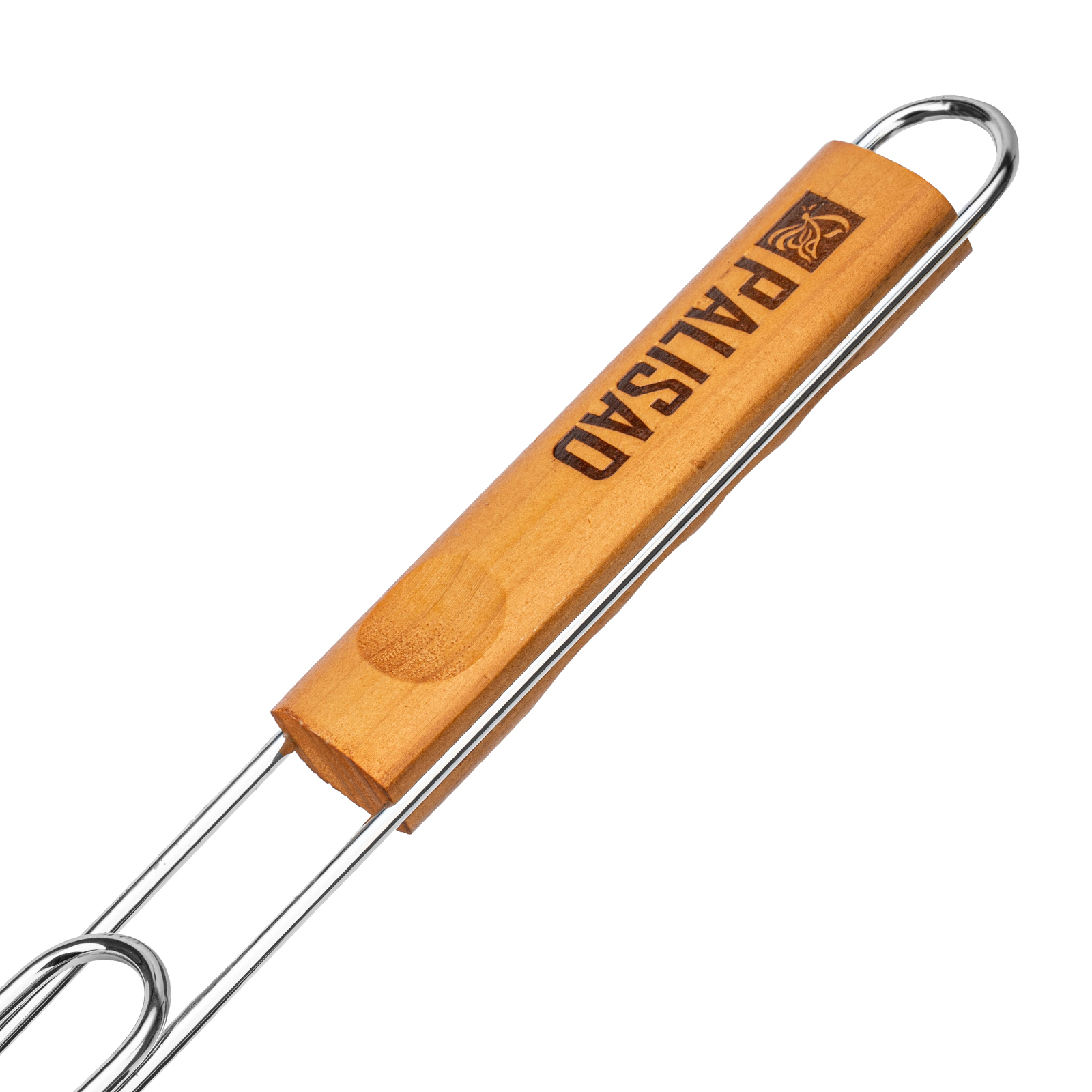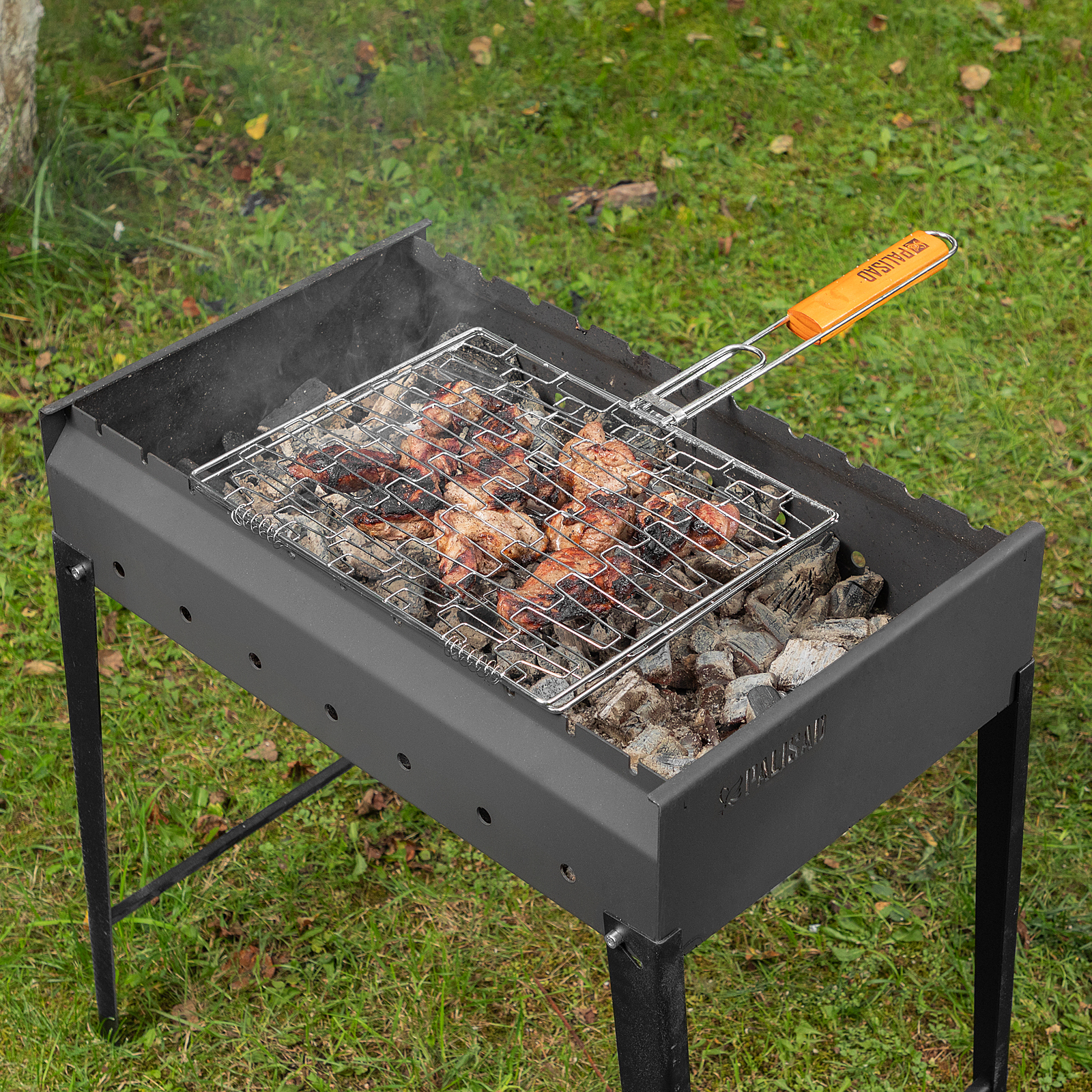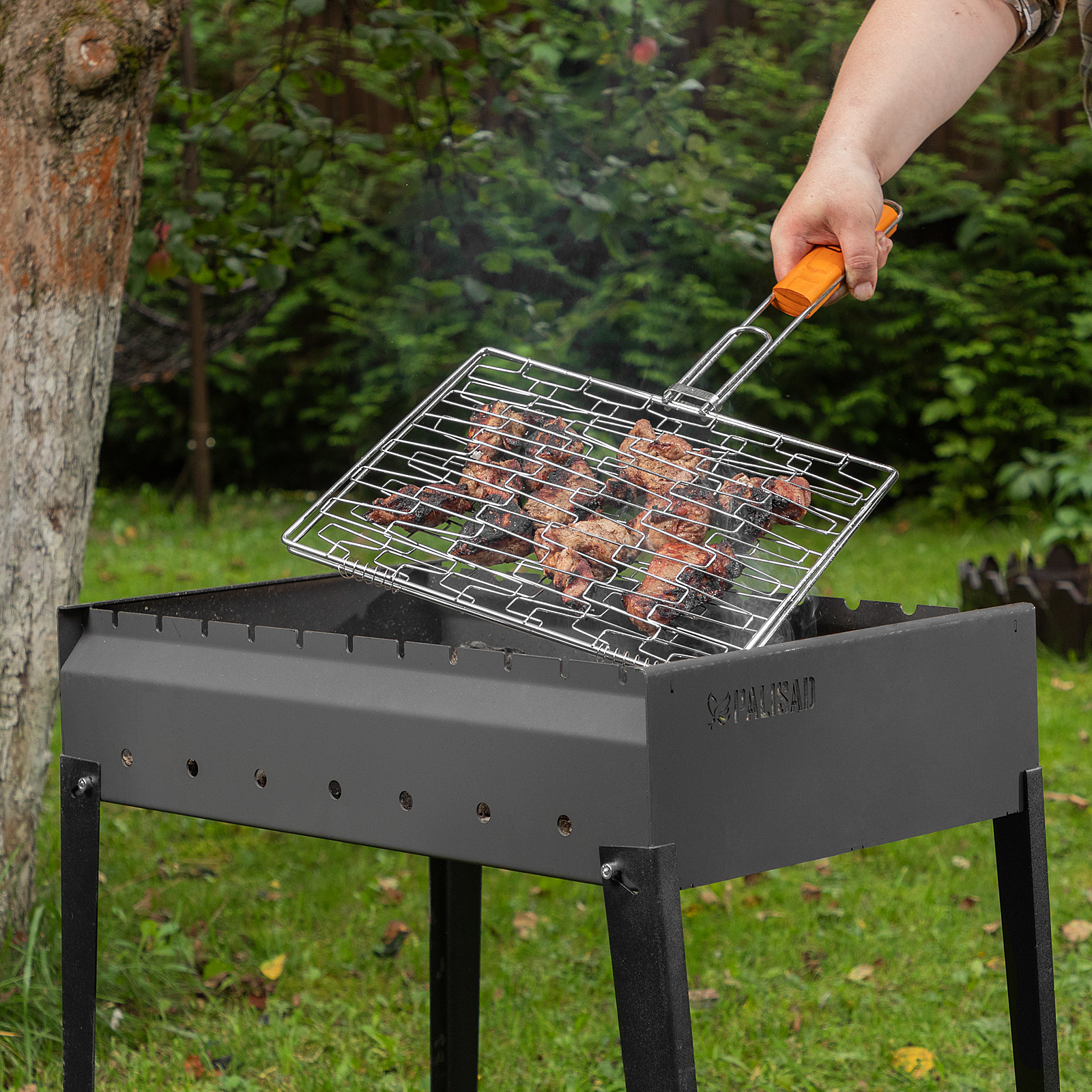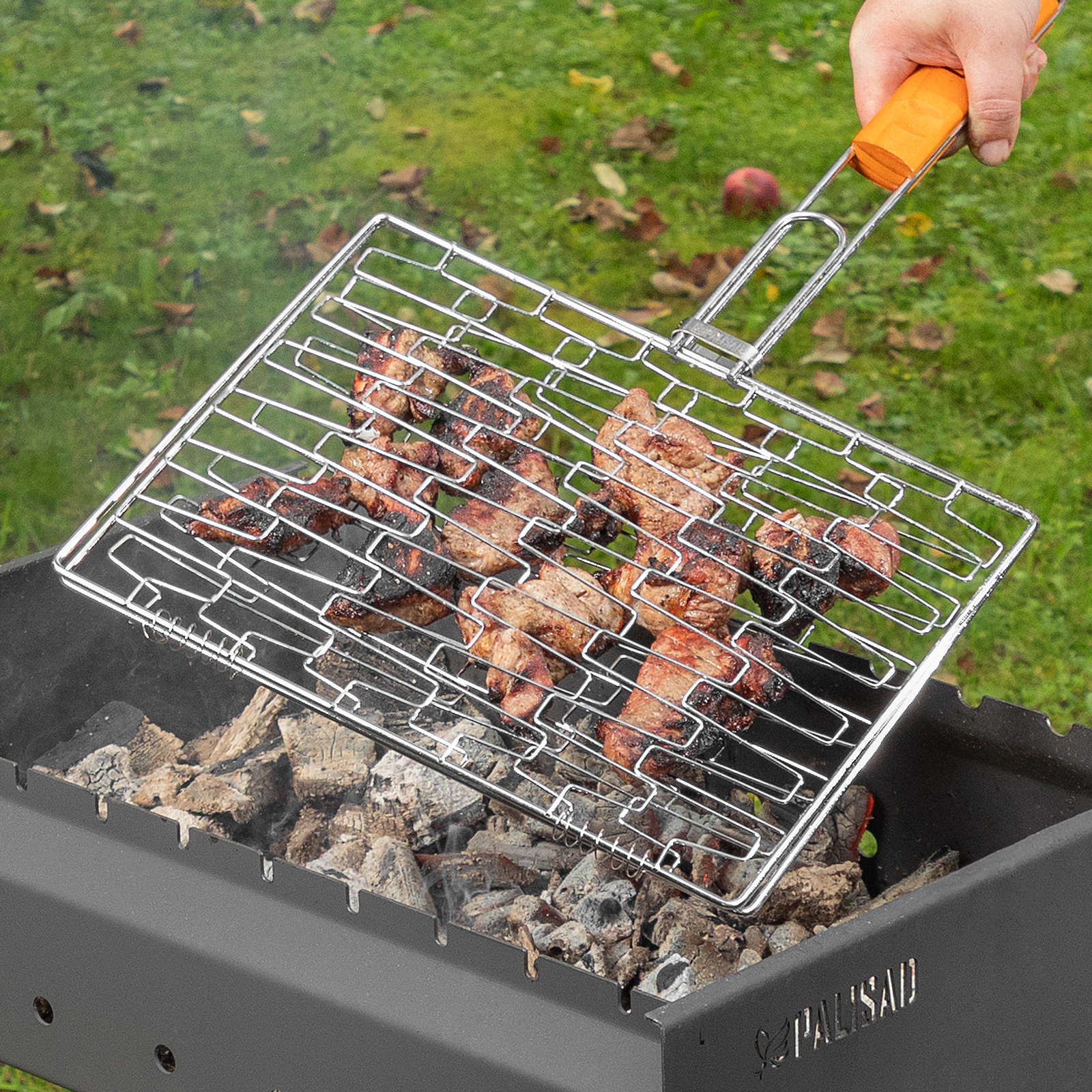 <p>Универсальная хромированная решетка-гриль Palisad Camping 69551 размером 350 х 280 мм за счет эластичного плетения подходит для продуктов любой формы, будь то целая курица или только крылышки. Она рассчитана на интенсивную эксплуатацию, поэтому оптимальна для тех, кто часто готовит еду на углях.</p><h2>Преимущества</h2><ul><li>Решетка прослужит долго, т.к. выполнена из жаропрочной стали высокого качества.</li><li>Хромовое покрытие предохраняет решетку от образования коррозии.</li><li>Удобство эксплуатации и защиту пользователя от ожогов обеспечивает эргономичная рукоятка из древесины.</li><li>Решетка оснащена широким кольцом-фиксатором для исключения риска случайного раскрытия во время переворачивания.</li></ul>