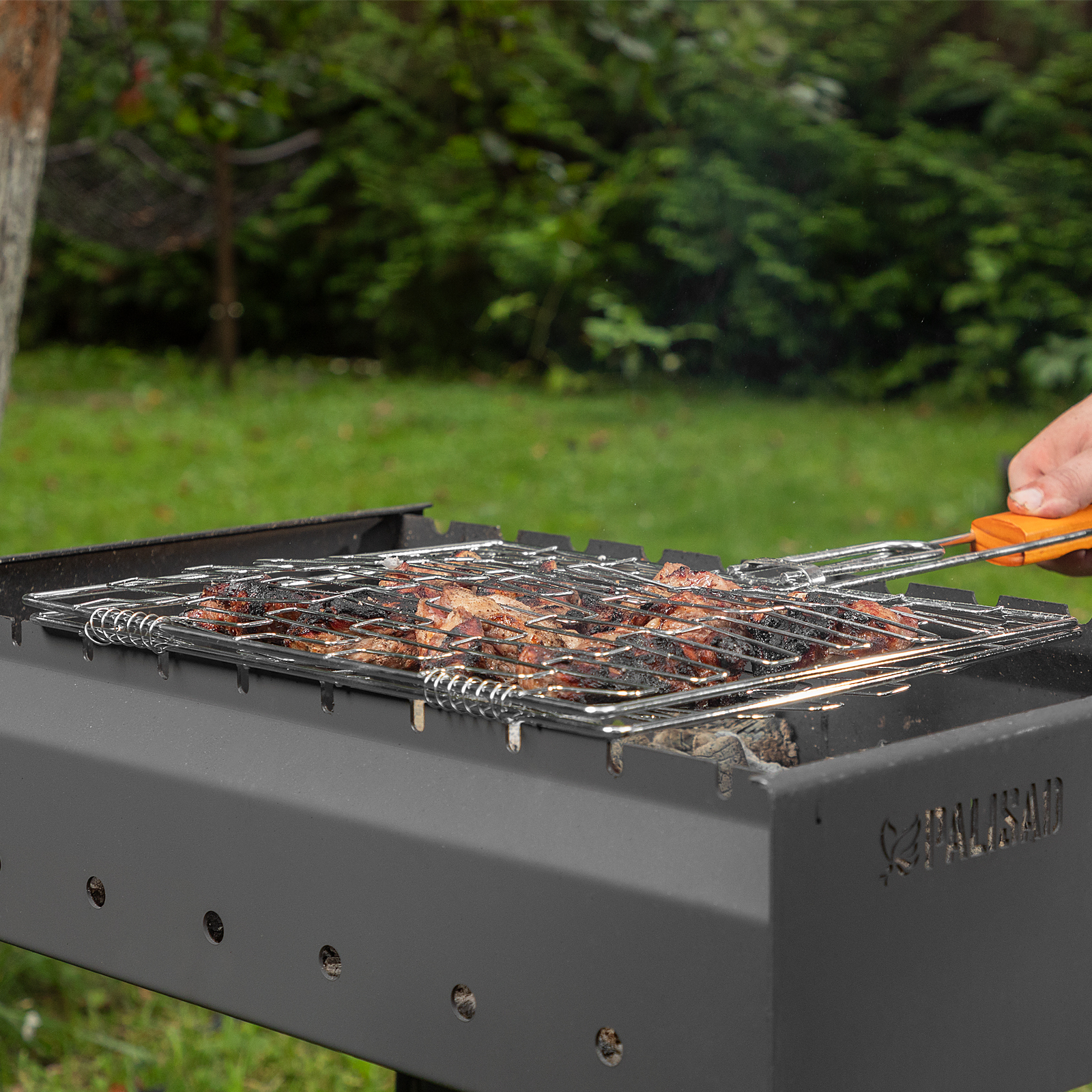 Универсальная хромированная решетка-гриль Palisad Camping 69551 размером 350 х 280 мм за счет эластичного плетения подходит для продуктов любой формы, будь то целая курица или только крылышки. Она рассчитана на интенсивную эксплуатацию, поэтому оптимальна для тех, кто часто готовит еду на углях.