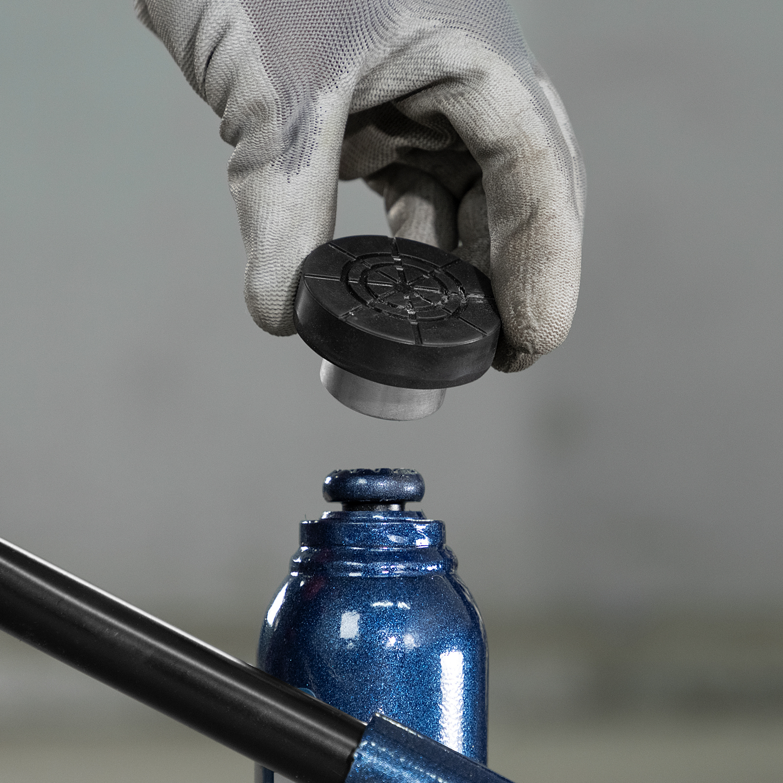 - Прочность — адаптер из стали и резины защищает от повреждений кузов машины и опорную площадку домкрата даже при подъеме максимально возможного веса.