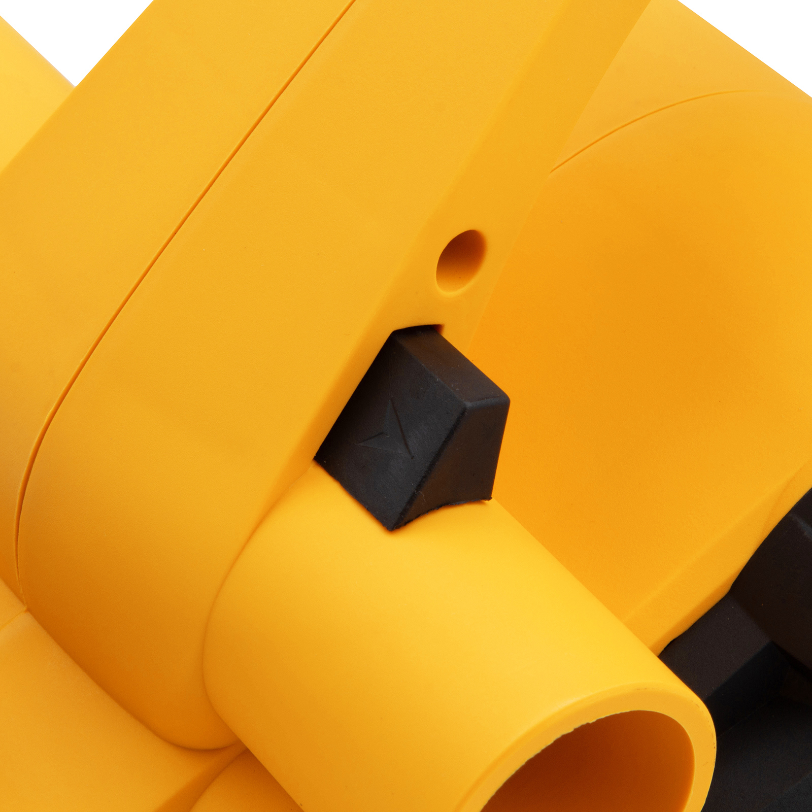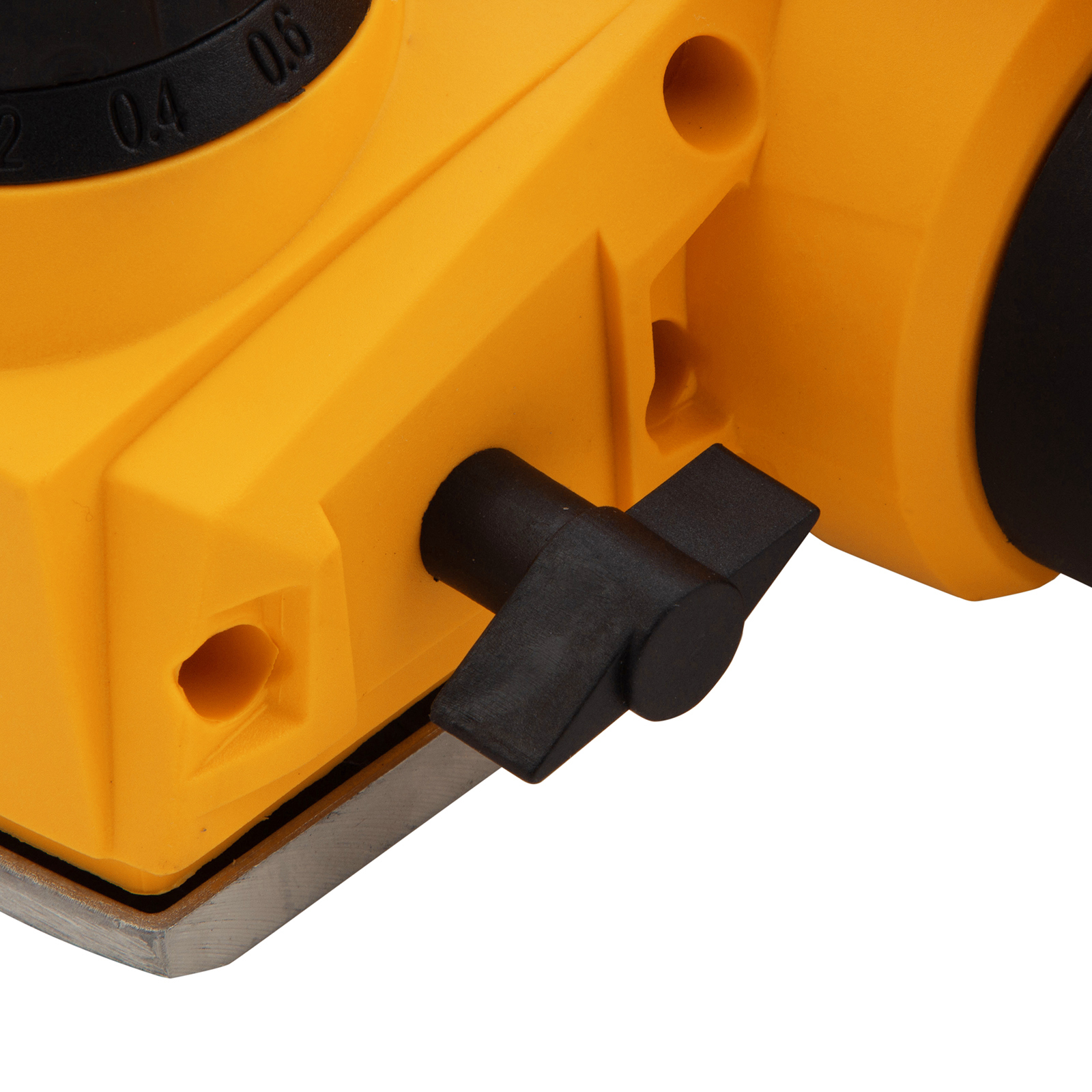 - Комфортная работа — направление выброса стружки переключается одним рычагом, параллельная направляющая и ограничитель глубины выборки четверти помогают точно вести рубанок.