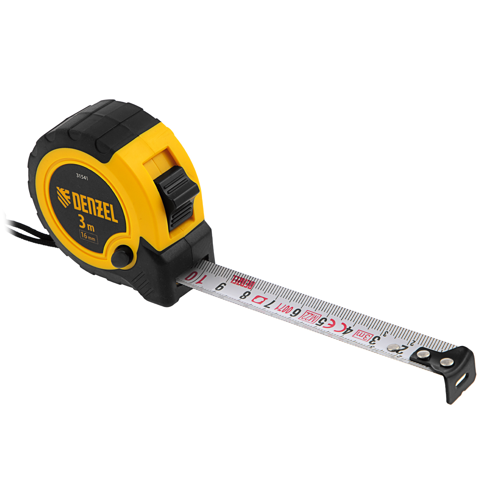 Рулетка Denzel 31541 в двухкомпонентном корпусе, с кнопкой-паузой, с полотном шириной 16 мм и длиной 3 м, используется для измерения расстояний и размеров предметов. Стальная лента с эмалевым покрытием и защитной пластиной в месте крепления зацепа рассчитана на долгий срок службы. Рулетка будет полезна во время строительства и ремонта, а также пригодится в быту.