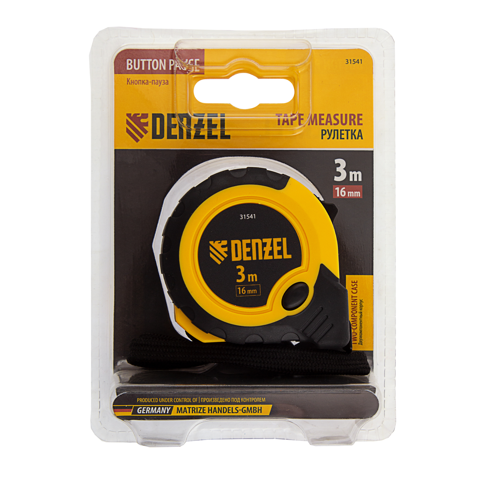 Рулетка 3м х 16мм, двухкомп. корпус, кнопка-пауза Denzel