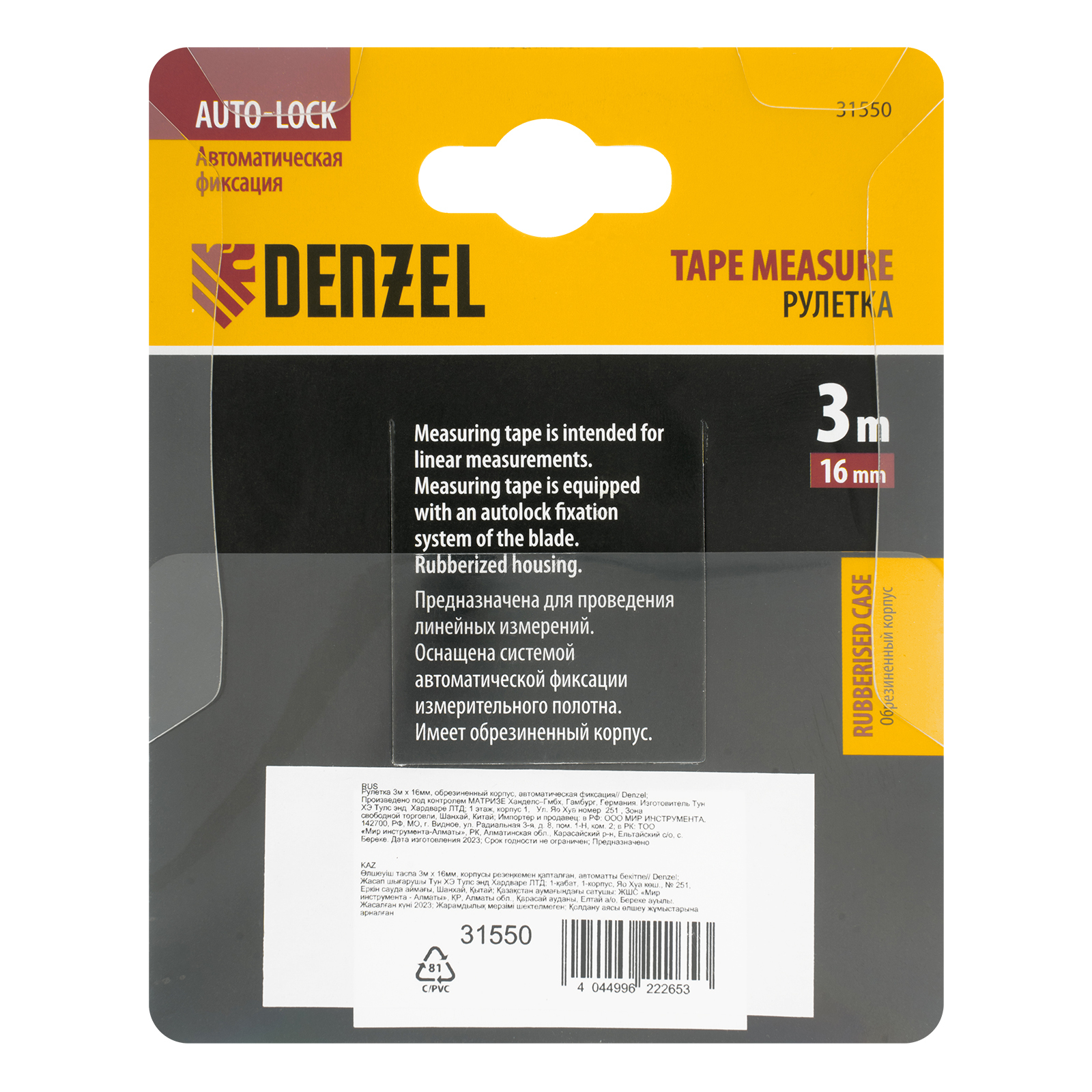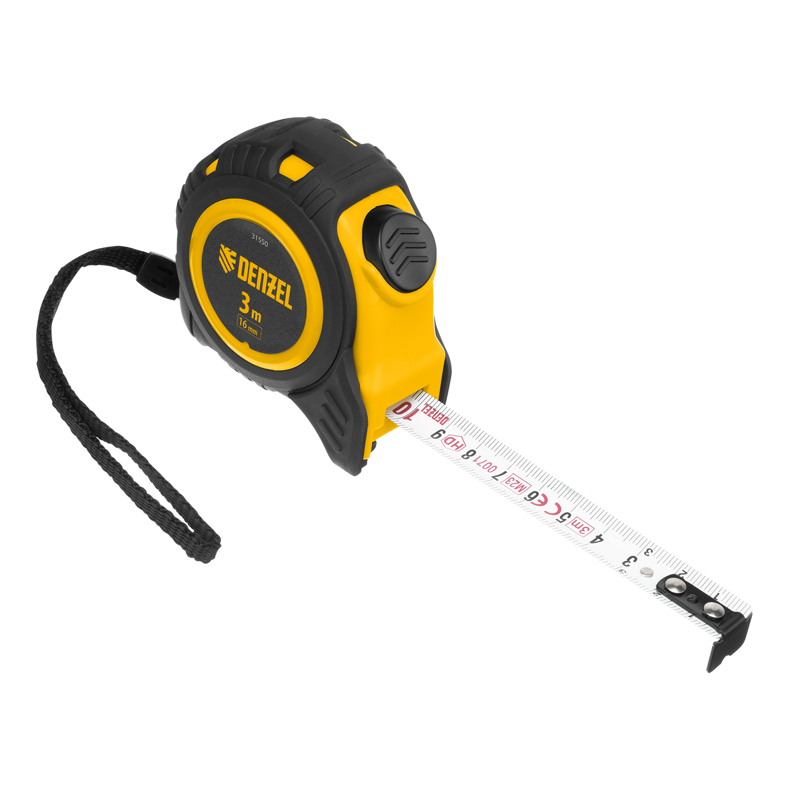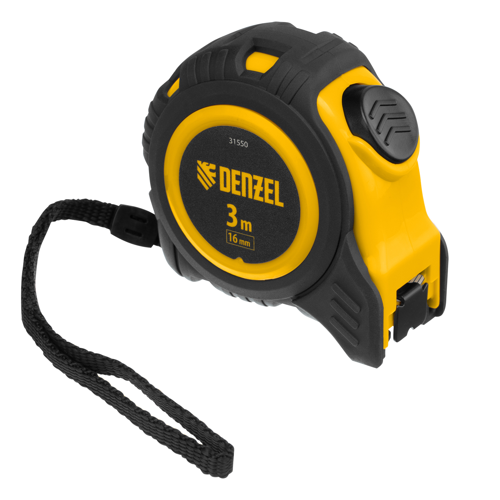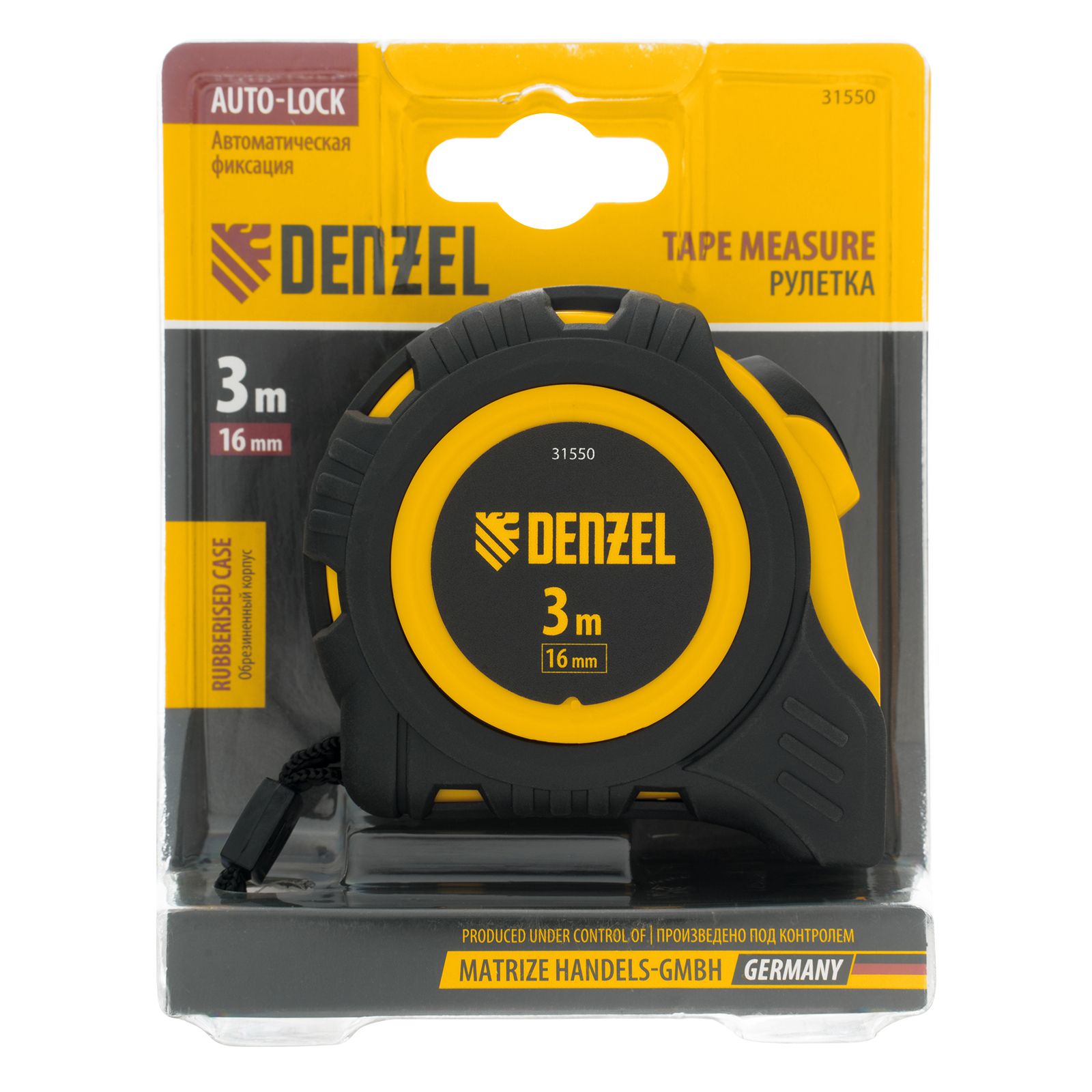 Рулетка 3м х 16мм, обрезиненный корпус, автоматическая фиксация Denzel