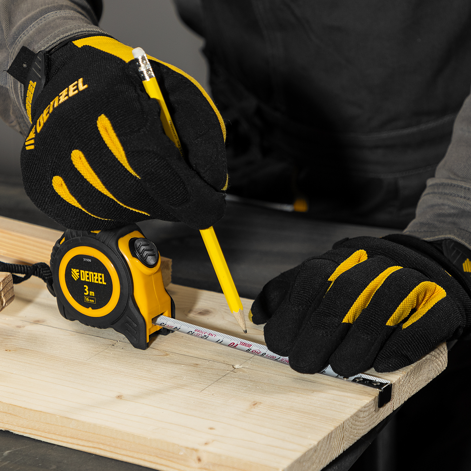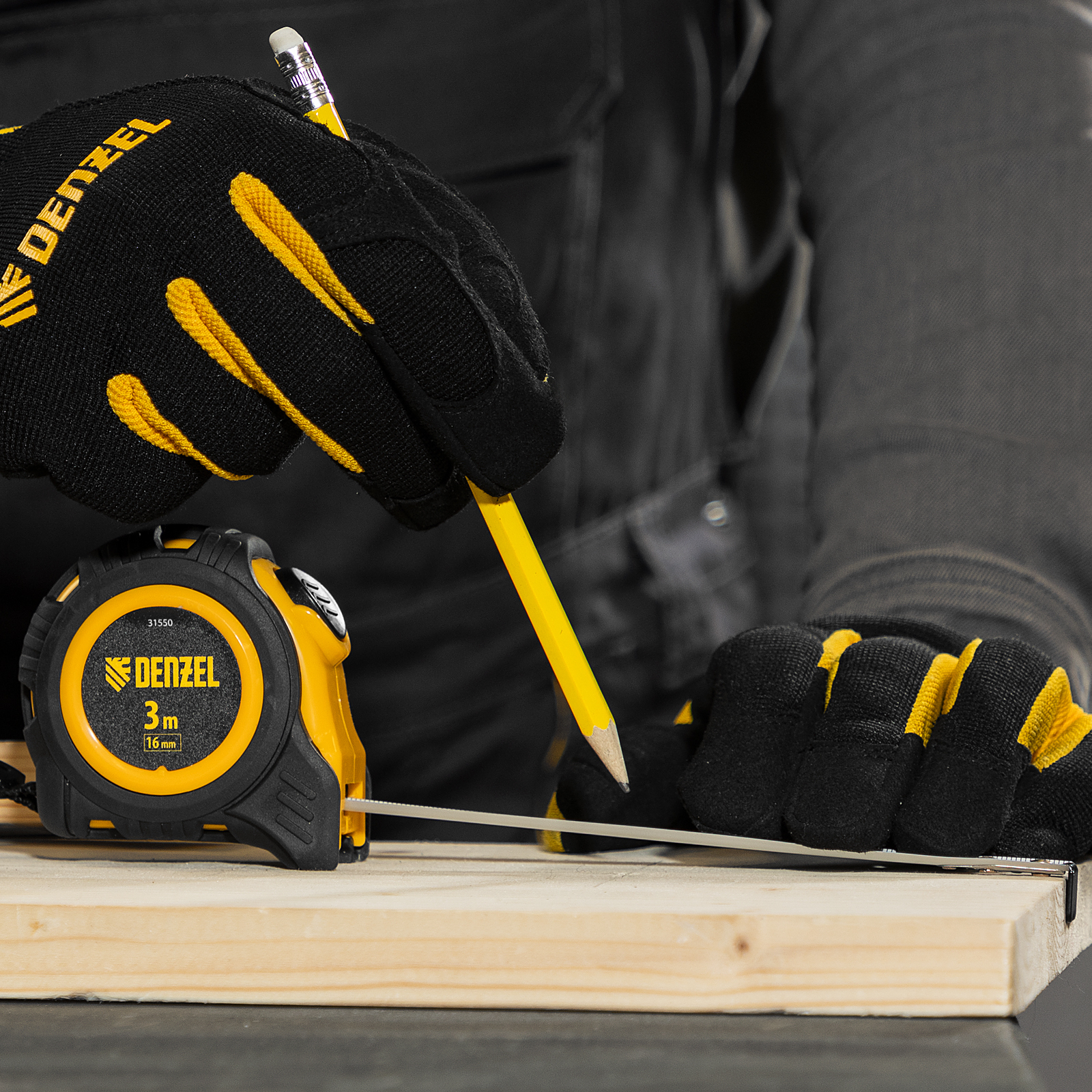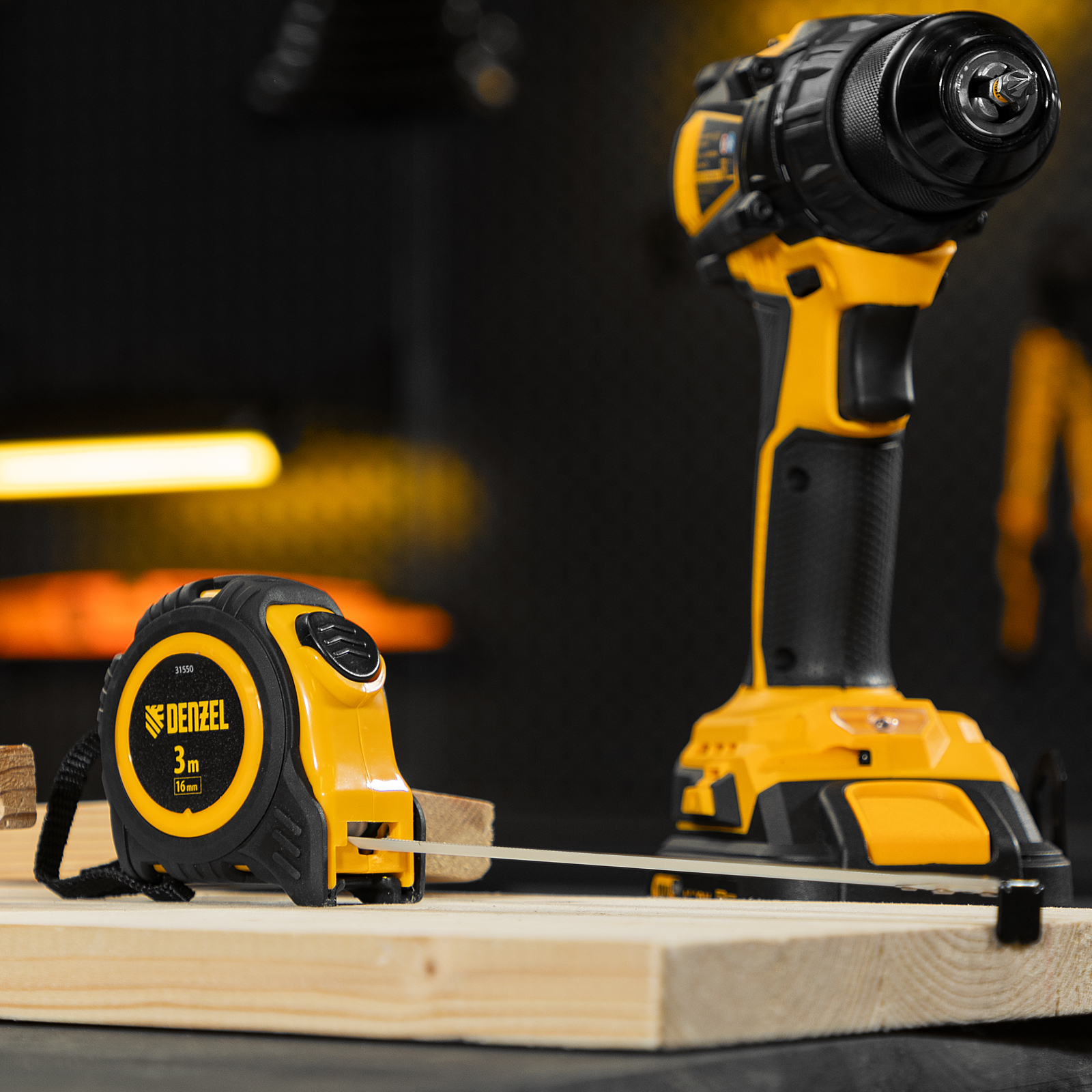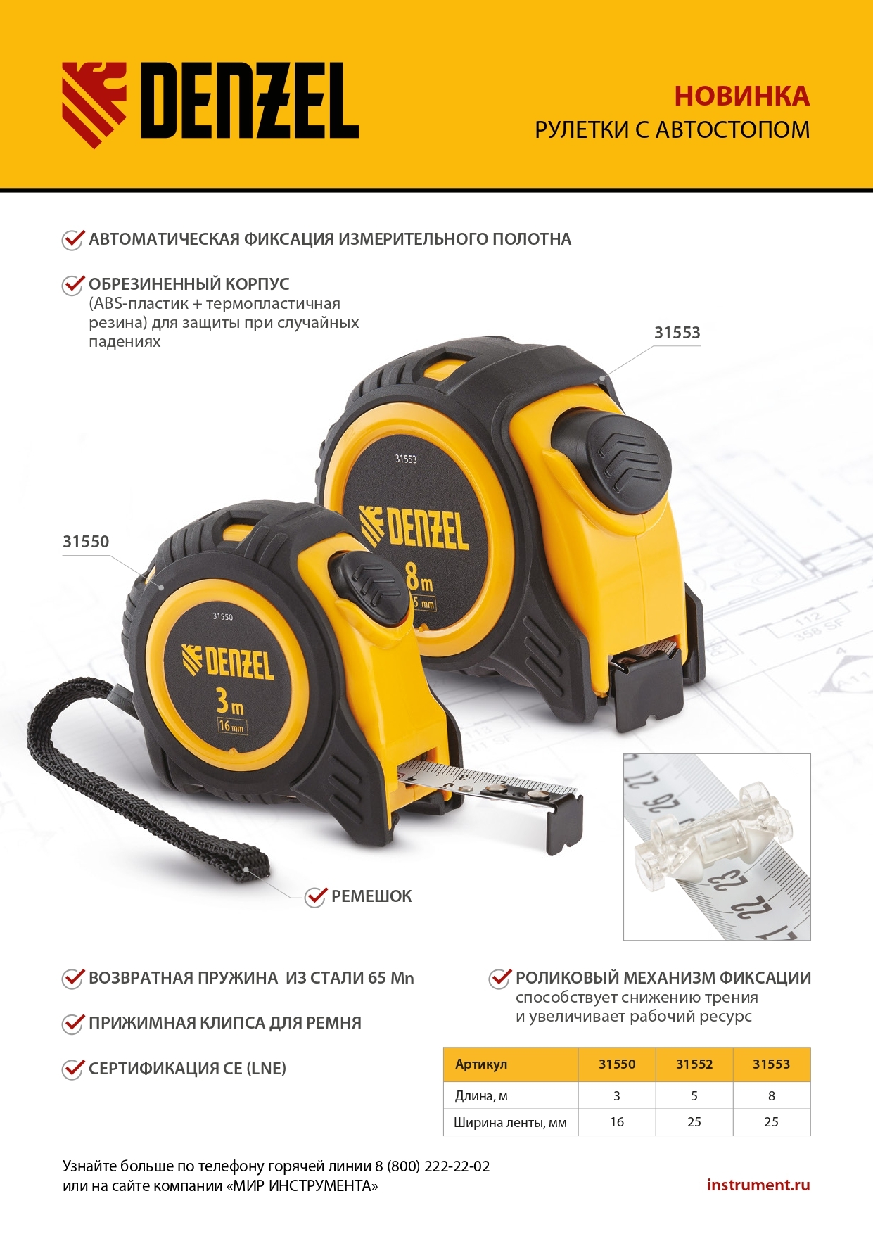 Рулетка 3м х 16мм, обрезиненный корпус, автоматическая фиксация Denzel