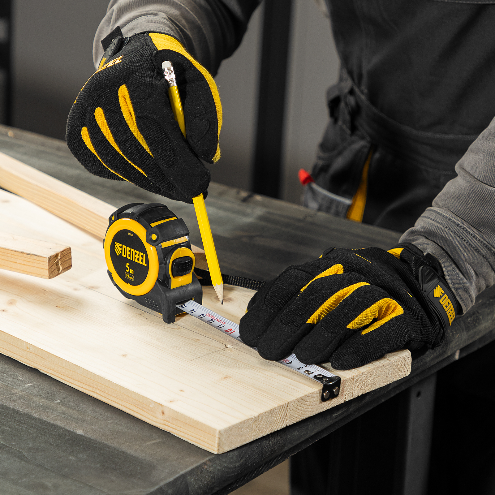 Рулетка Denzel 31521 с автоматической фиксацией полотна размером 5 м х 19 мм, с нейлоновым покрытием, магнитным зацепом и двухсторонней разметкой, предназначена для измерения расстояний и определения габаритов различных предметов. Лента автоматически фиксируется в вытянутом положении, что упрощает работу. Рулетка будет полезна во время строительных и ремонтных работ.