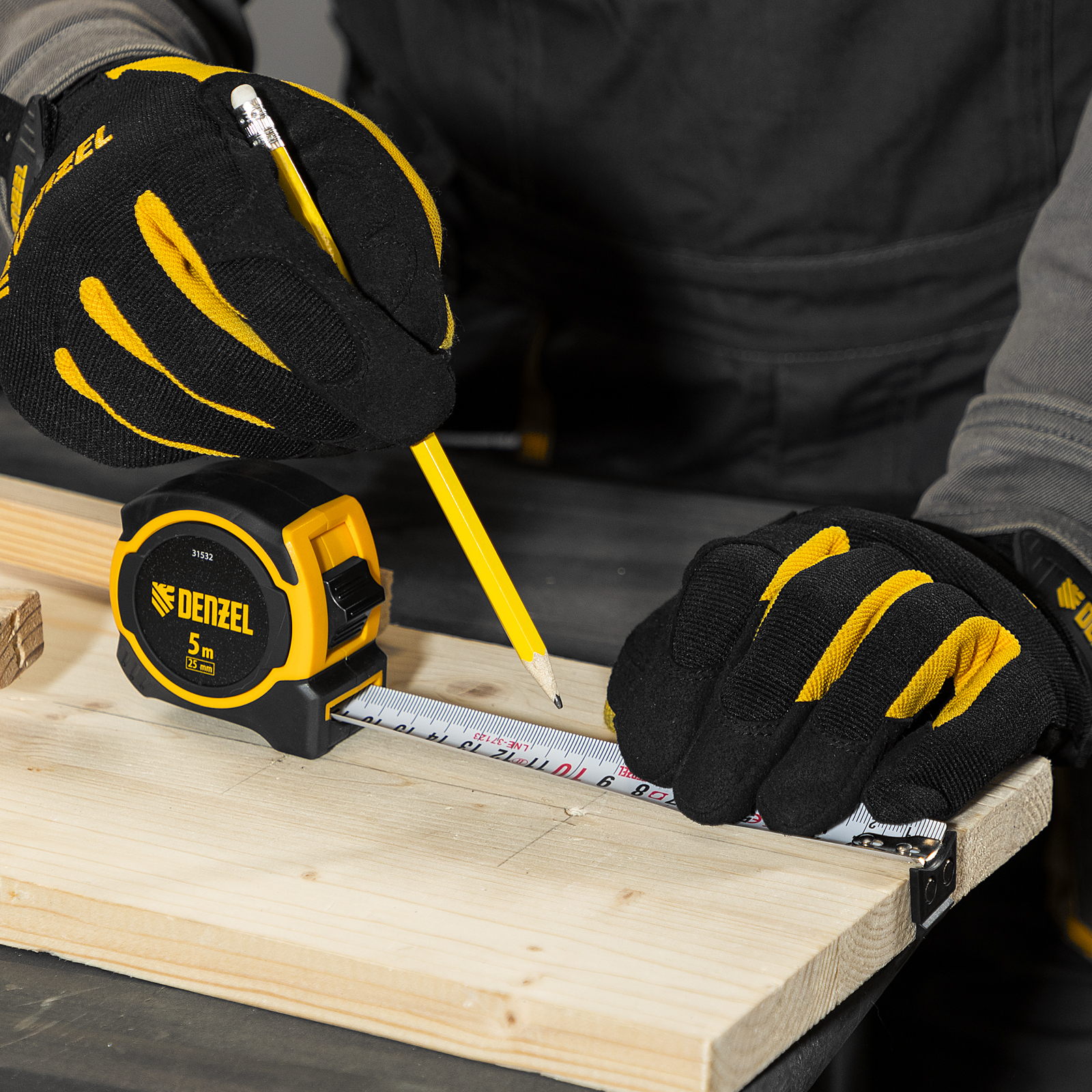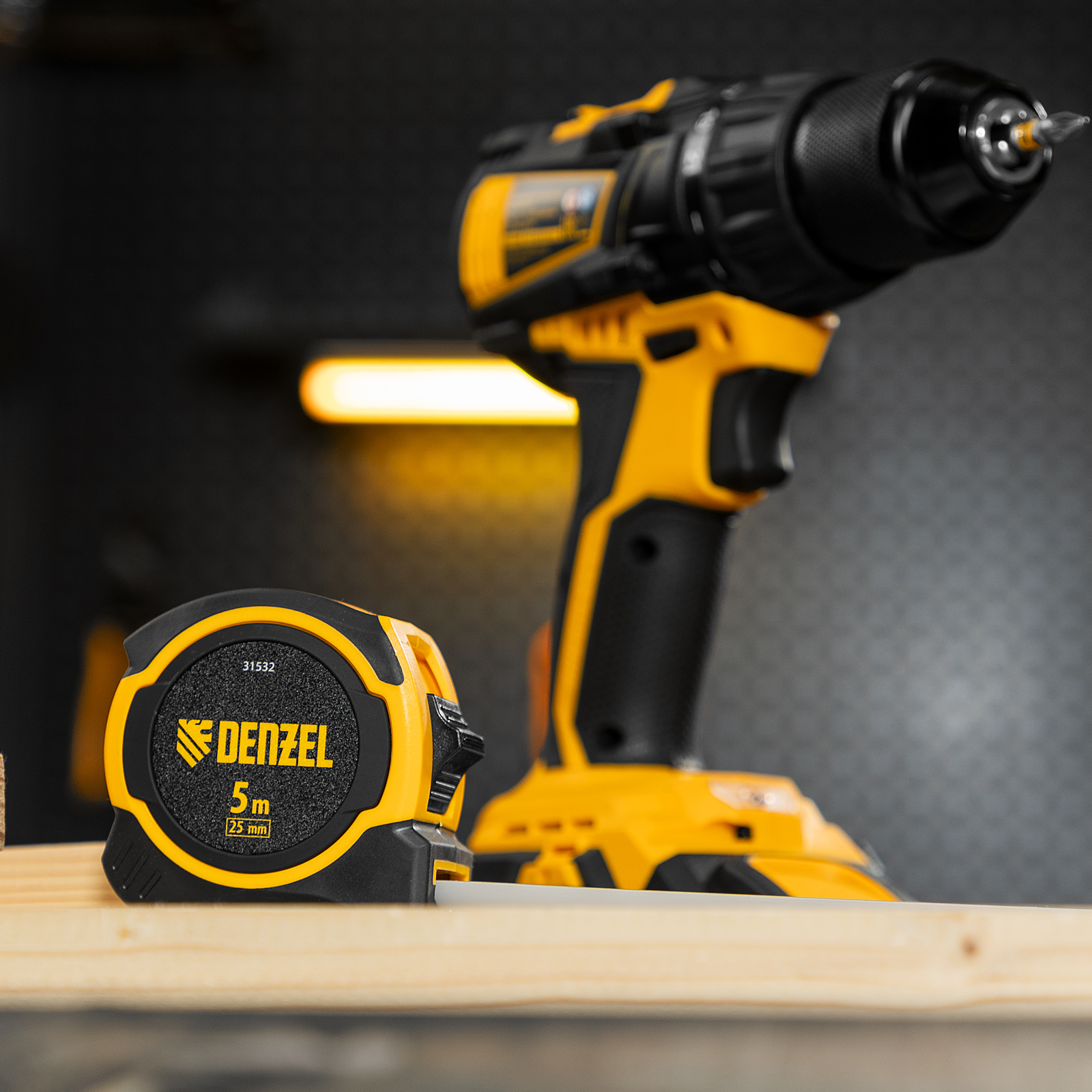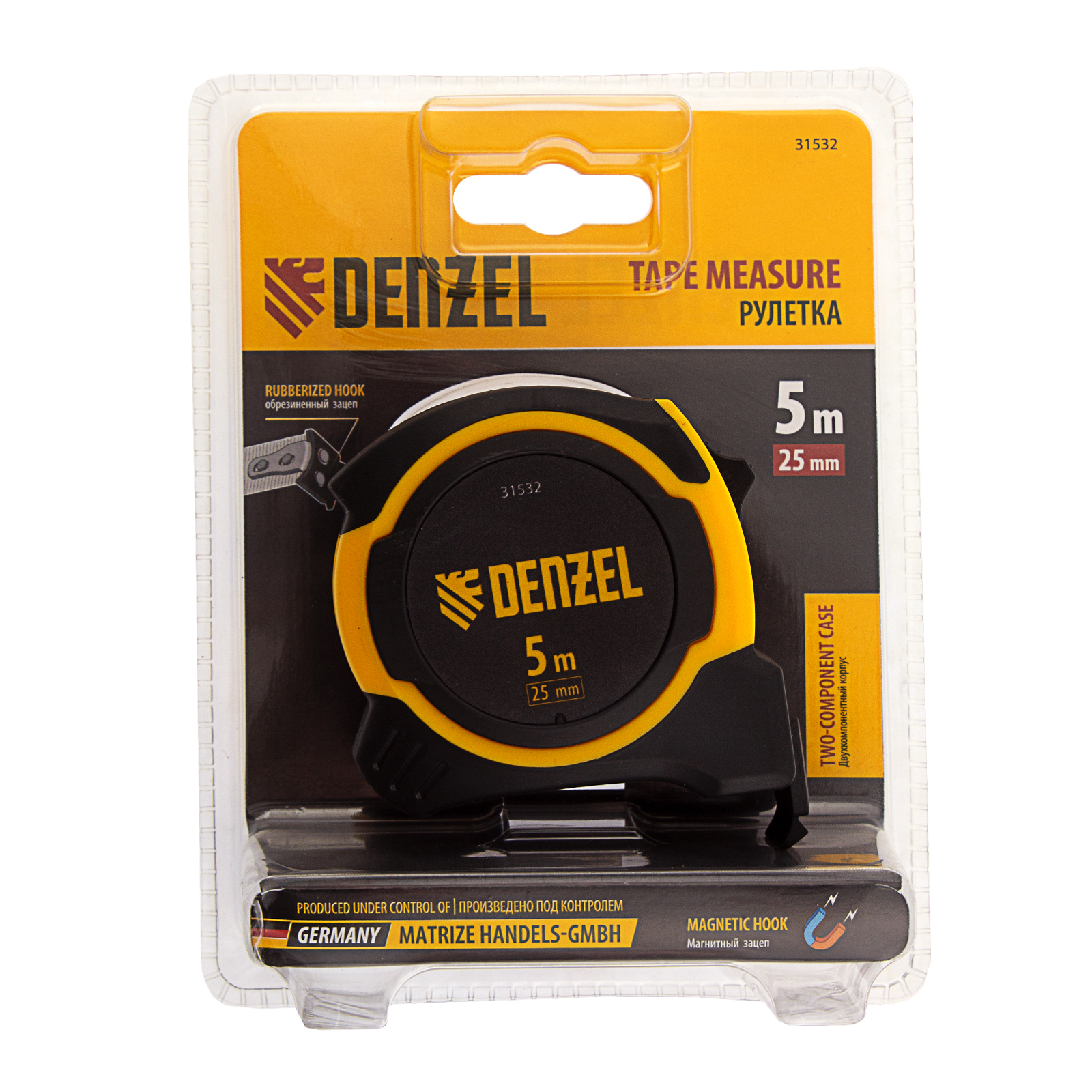 Рулетка 5м х 25мм, двухкомп. корпус, магнитный обрезиненный зацеп Denzel