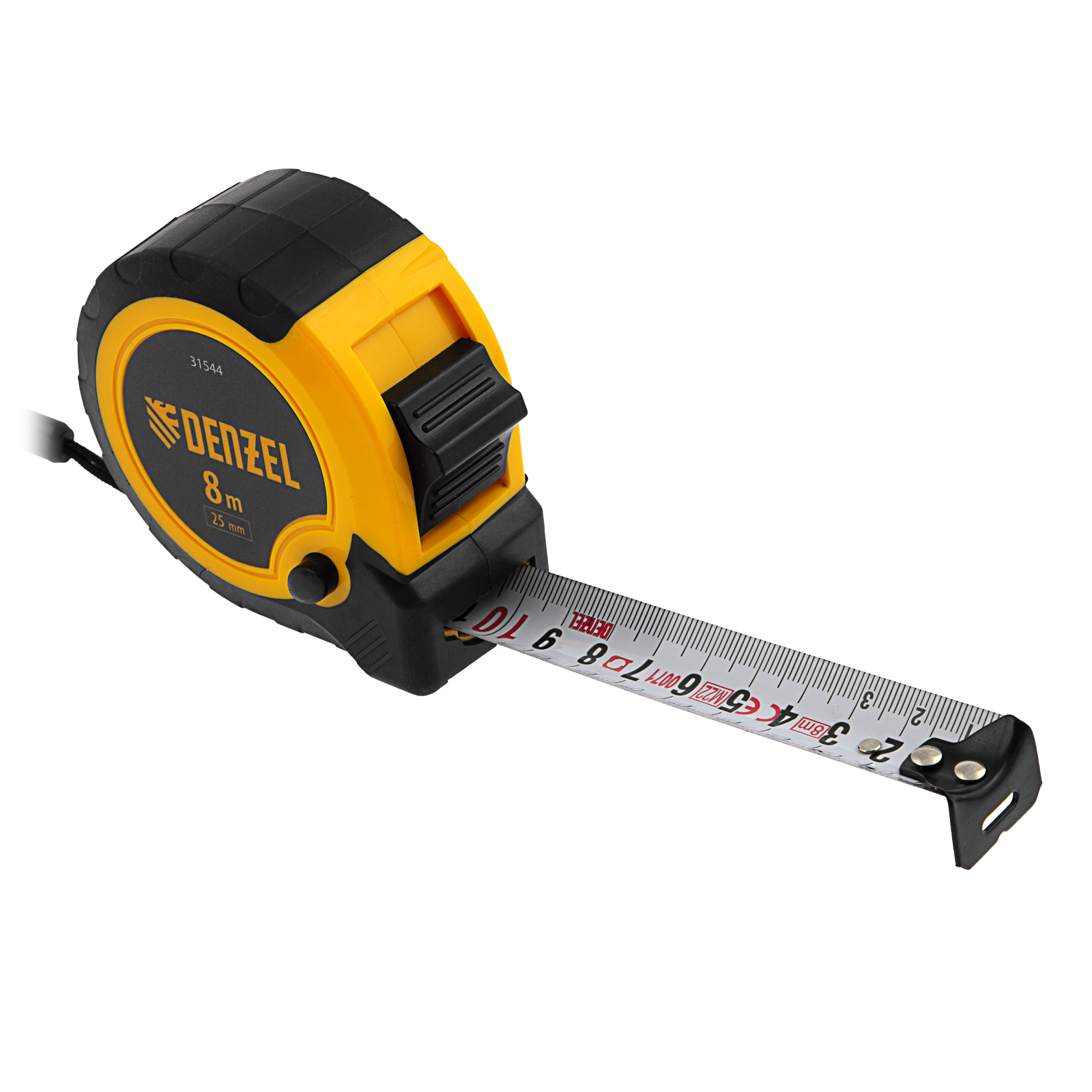 Рулетка 8м х 25мм, двухкомп. корпус, кнопка-пауза Denzel