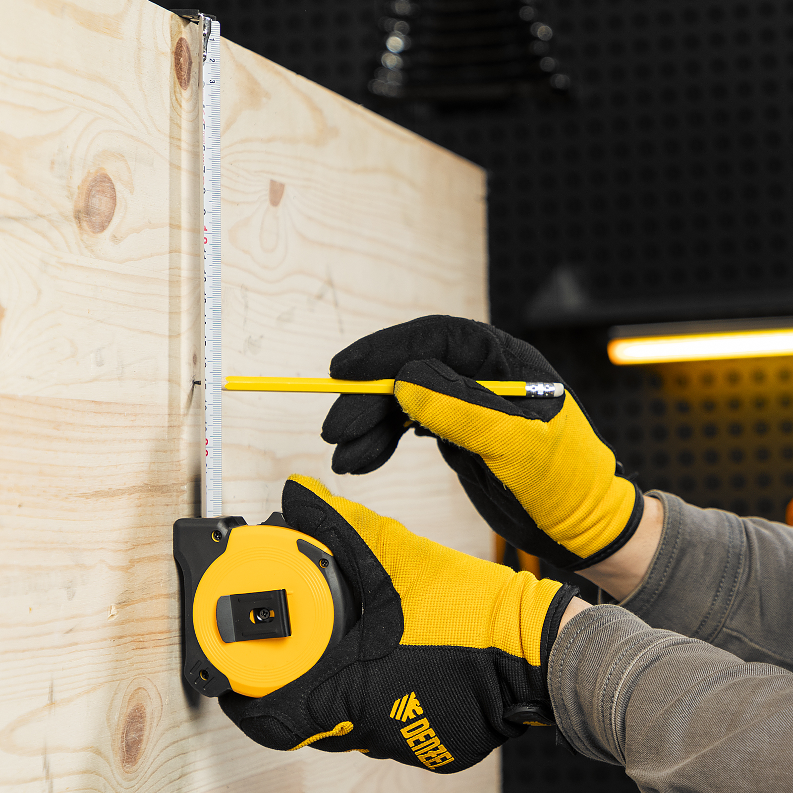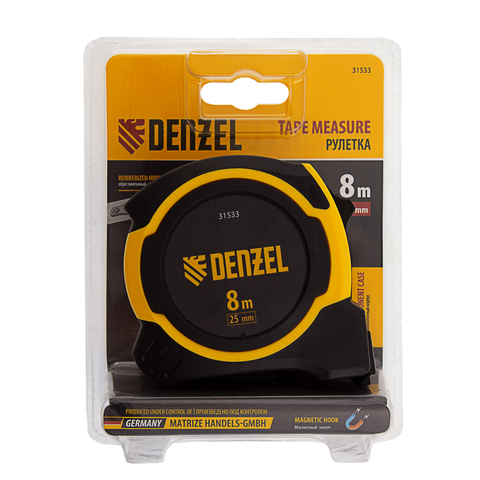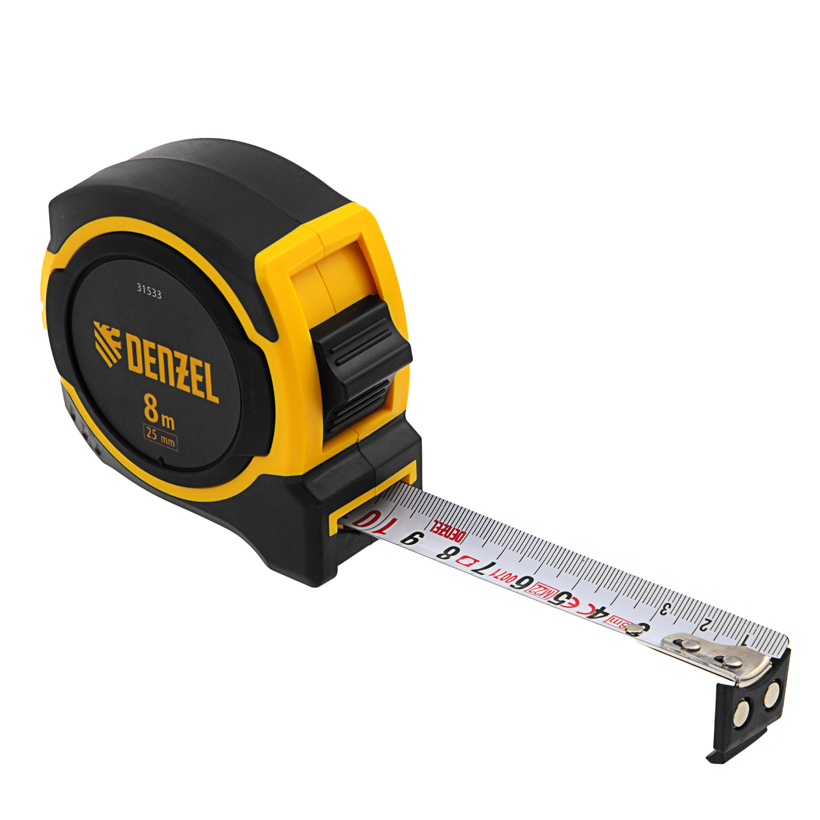 Рулетка 8м х 25мм, двухкомп. корпус, магнитный обрезиненный зацеп Denzel