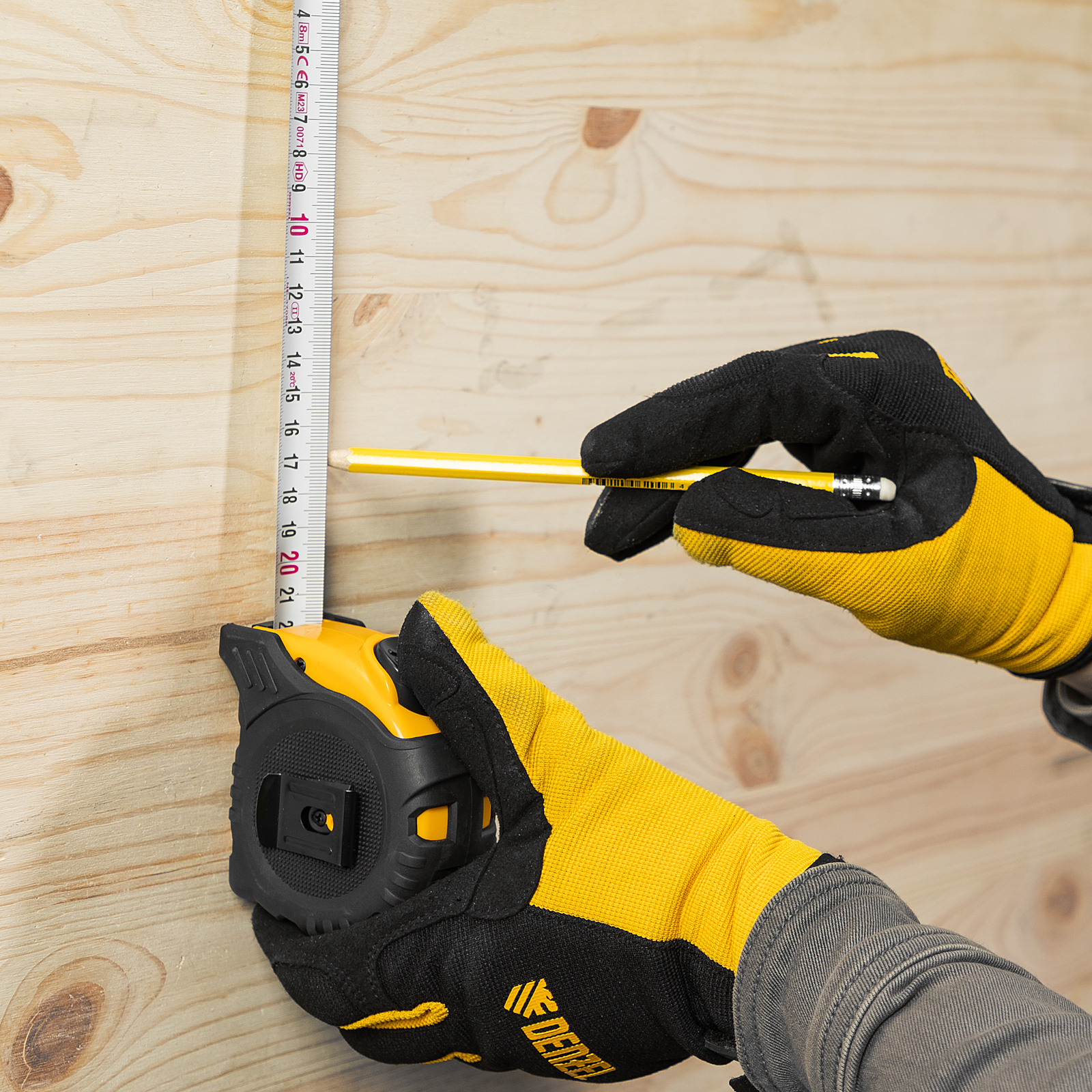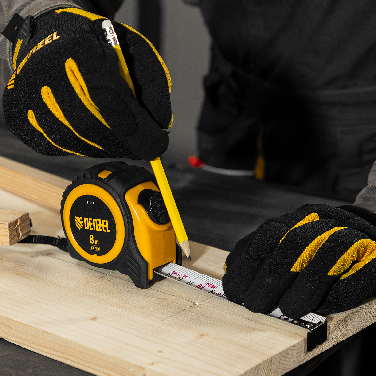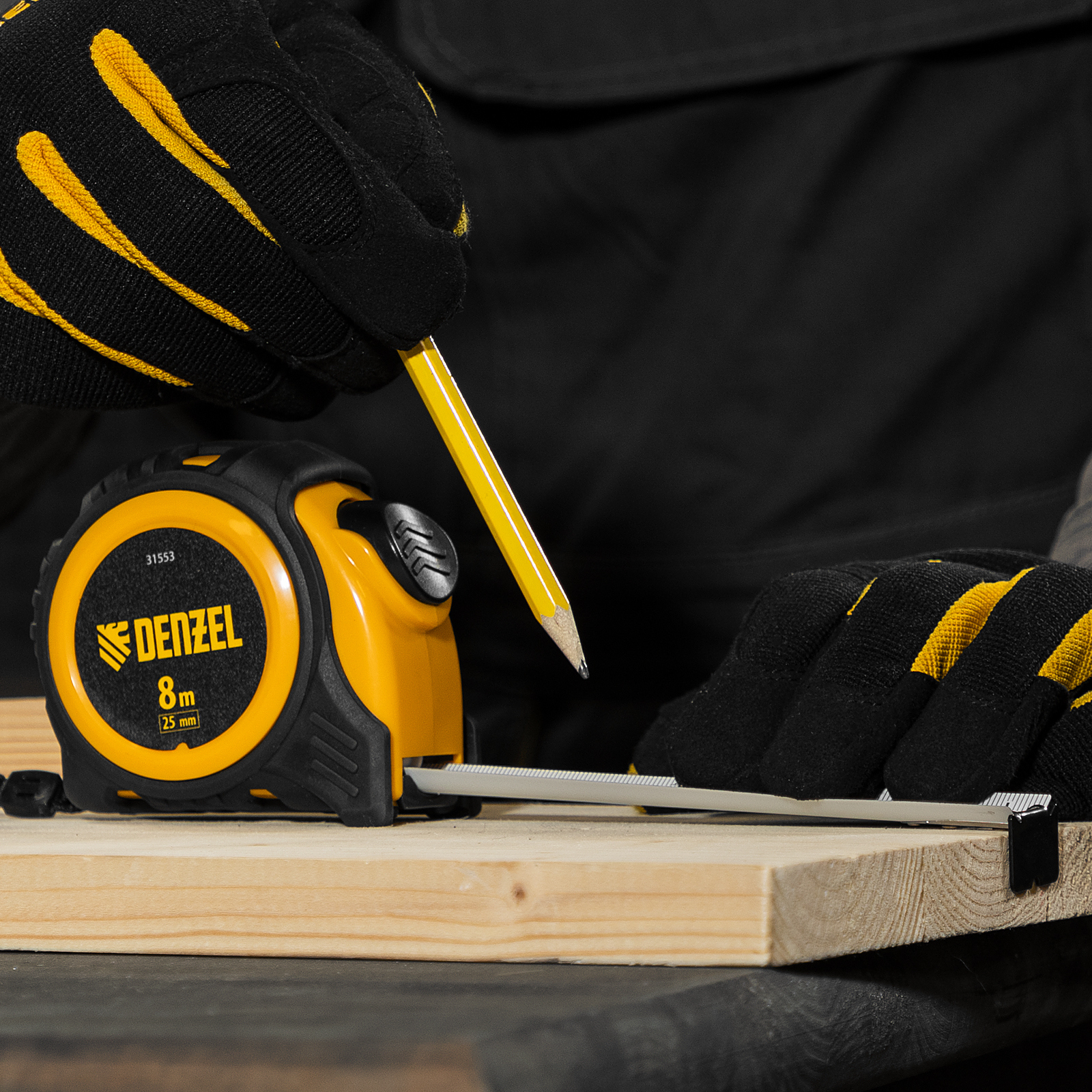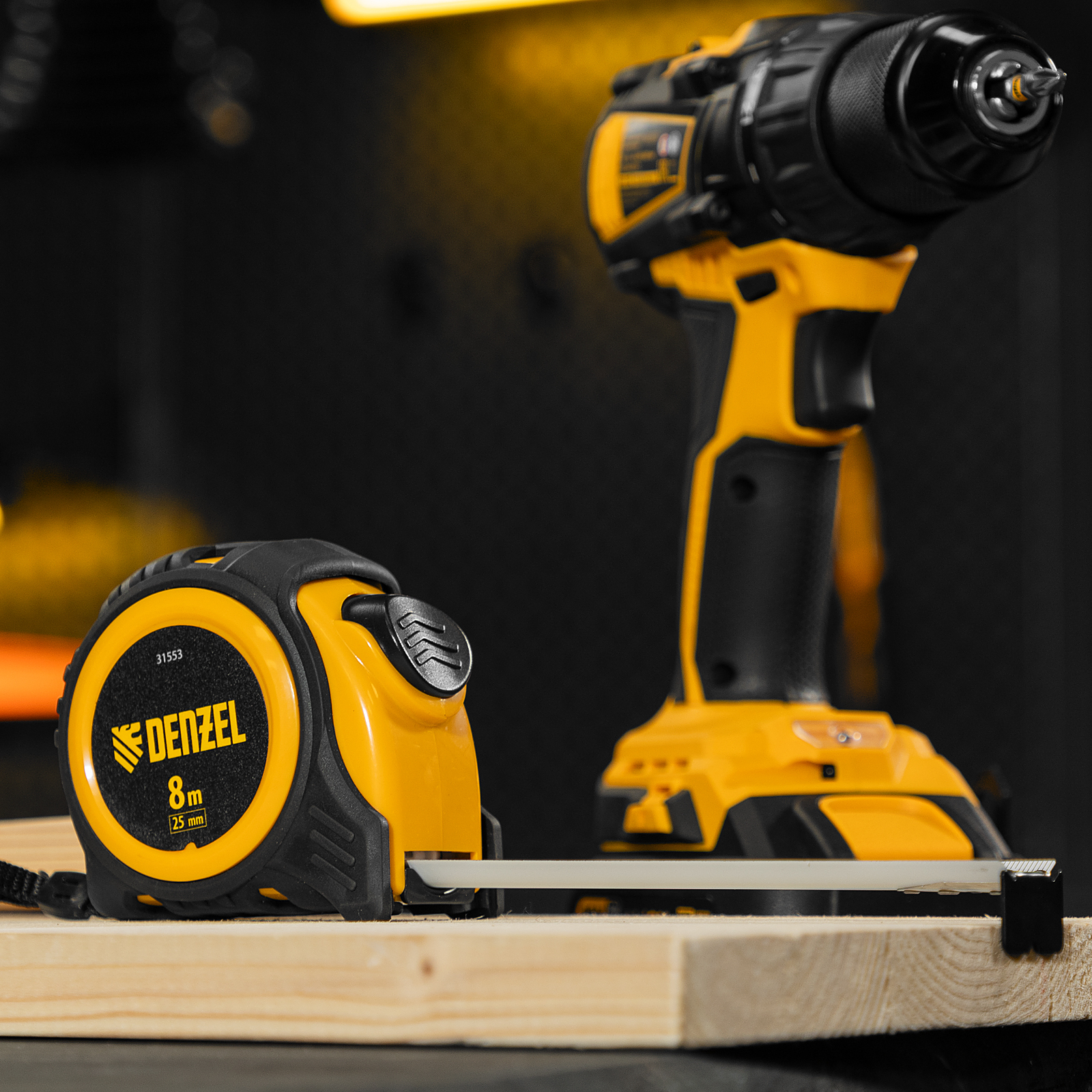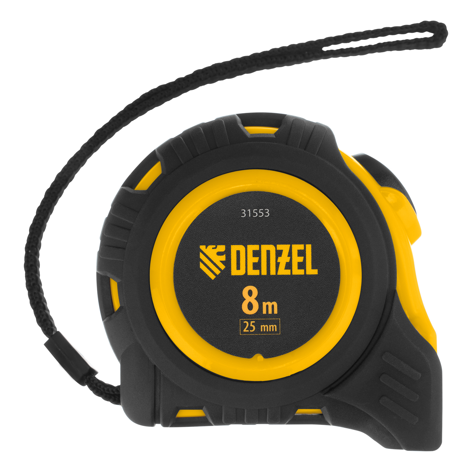 Рулетка 8м х 25мм, обрезиненный корпус, автоматическая фиксация Denzel