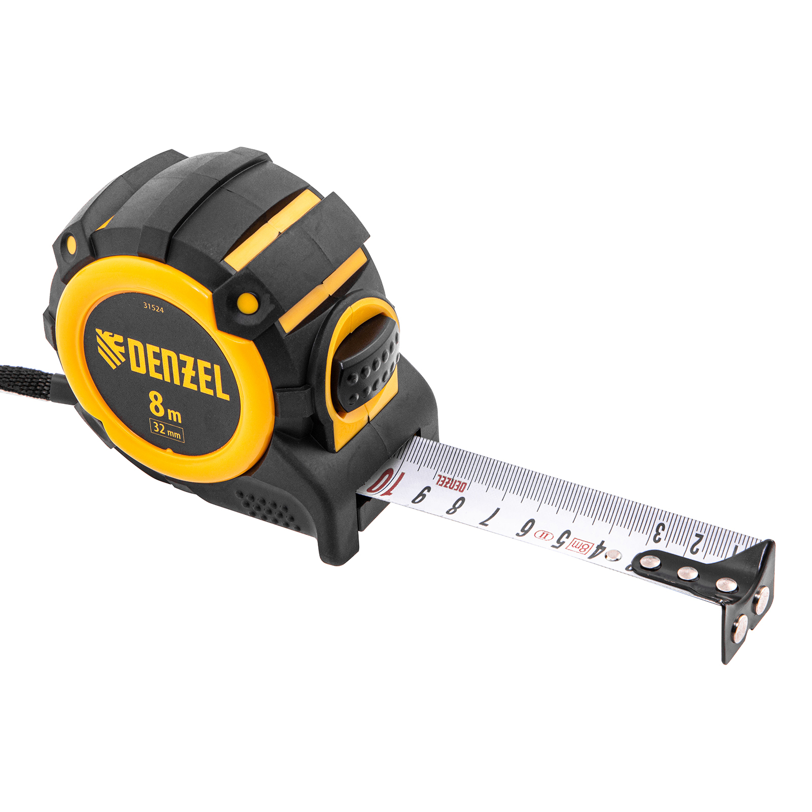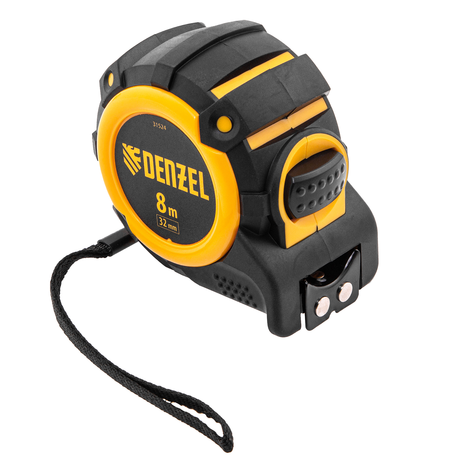 Рулетка 8м х 32мм, автоматич. фиксац., нейлон. покрытие, магнит. зацеп, двухстор. разметка Denzel