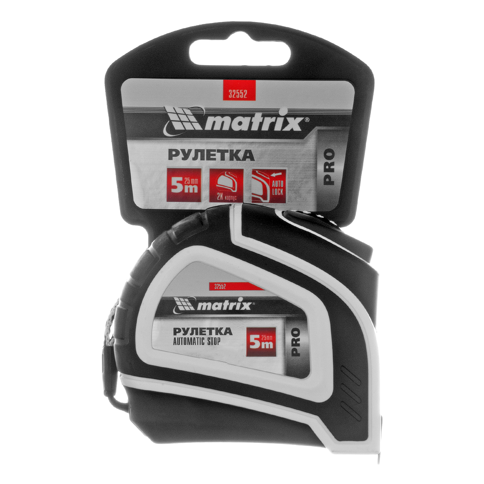 Рулетка Autostop,5 м х 25 мм,двухкомпонентный корпус,автоматическая фиксация,Pro Matrix