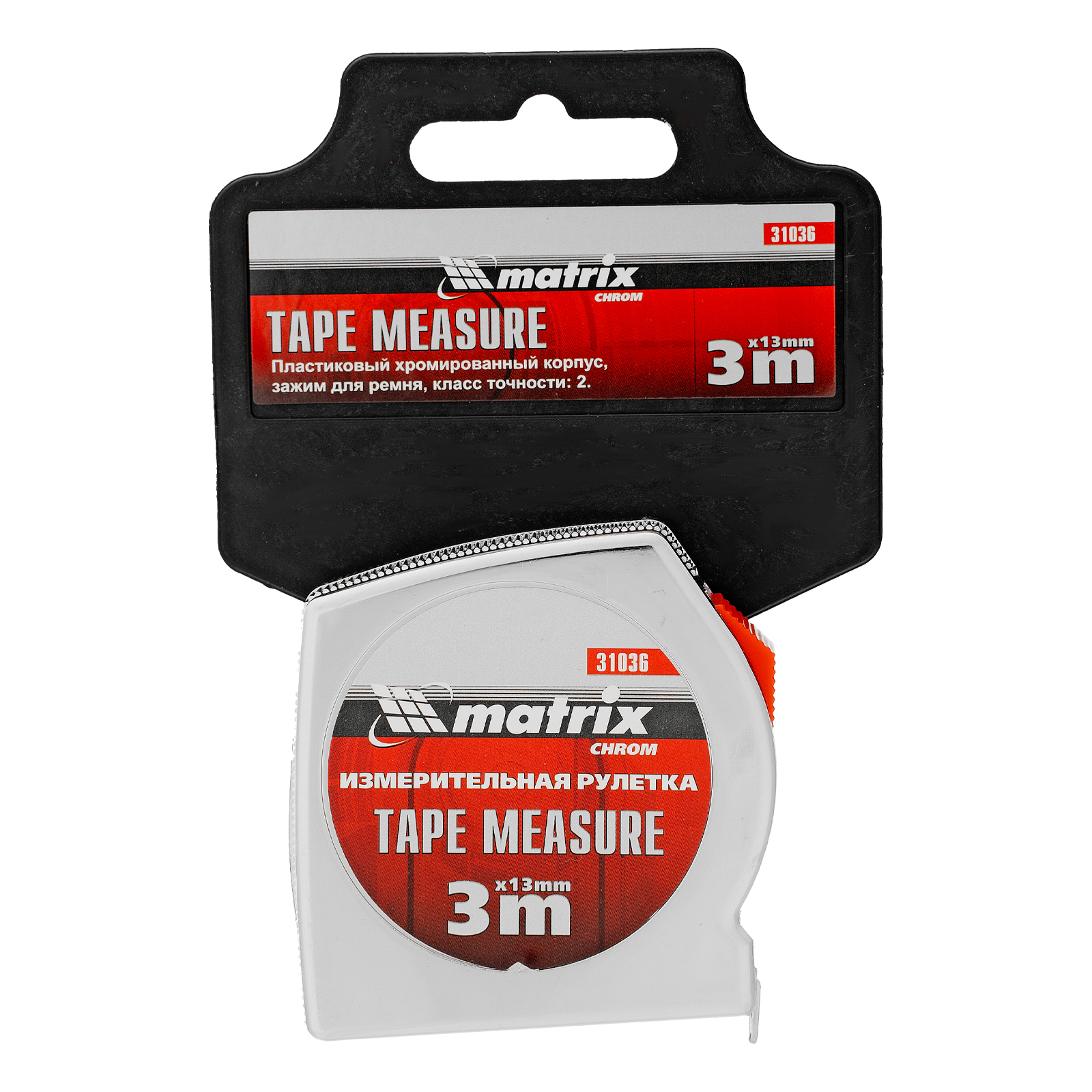 Рулетка Chrom,3 м x 13 мм,хромированный корпус Matrix