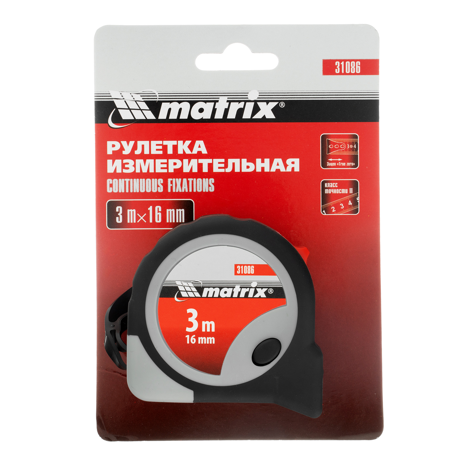 Рулетка Continuous fixation,3 м х 16 мм,двухкомпонентный корпус,плавная фиксация Matrix