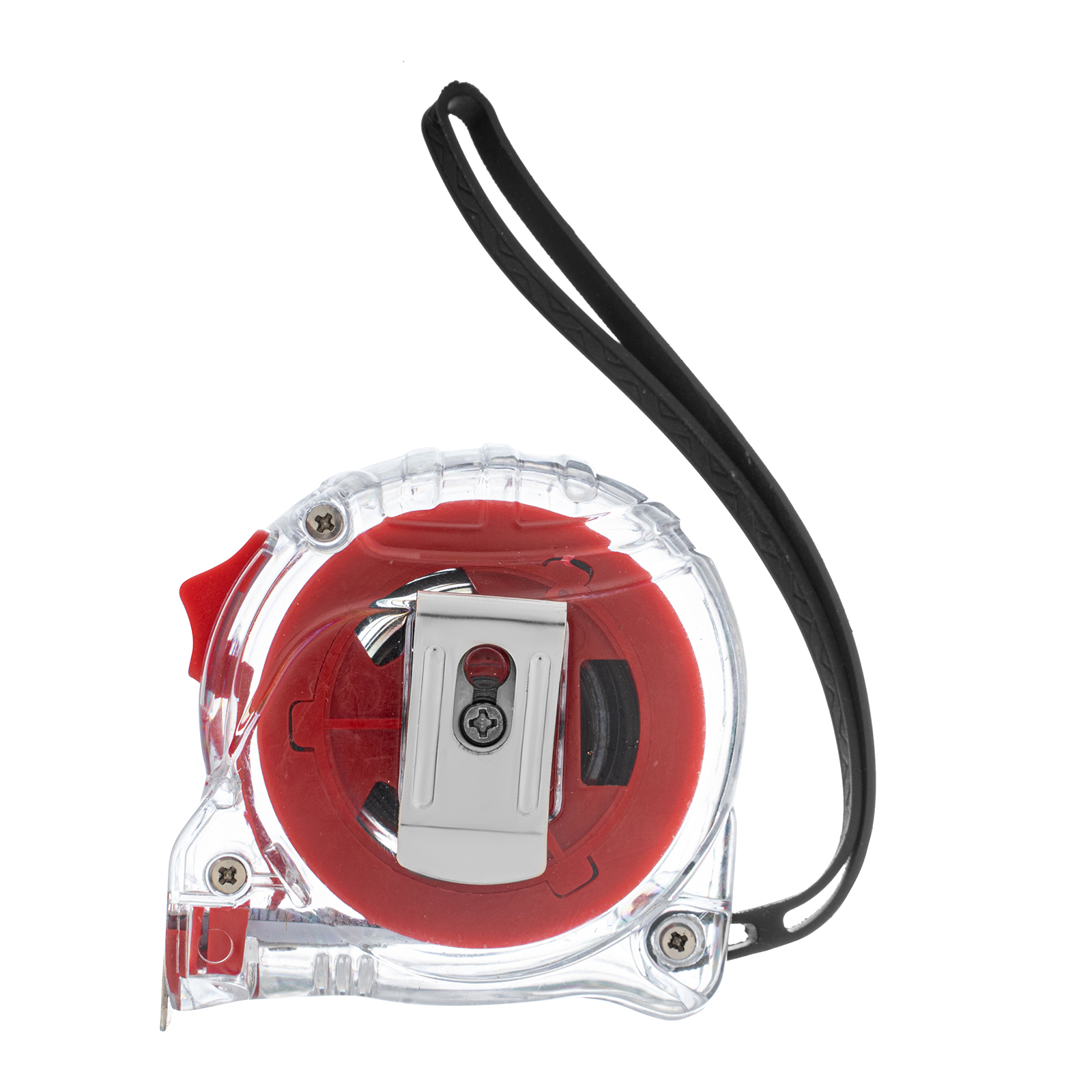 - Комфортная транспортировка — нейлоновый ремешок позволяет подвешивать рулетку на запястье, при помощи клипсы-зажима ее можно зафиксировать на поясе.