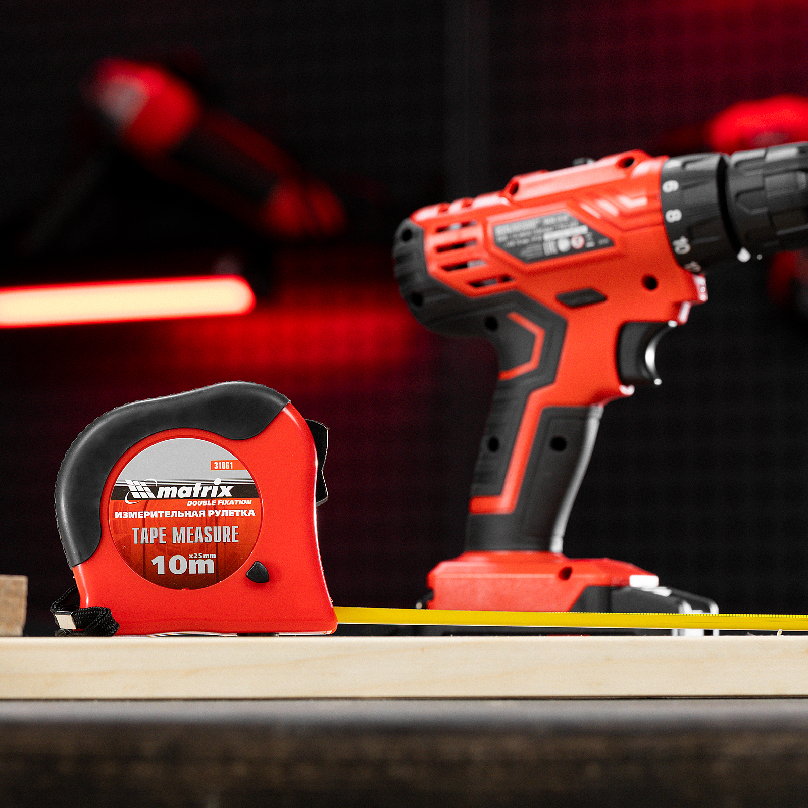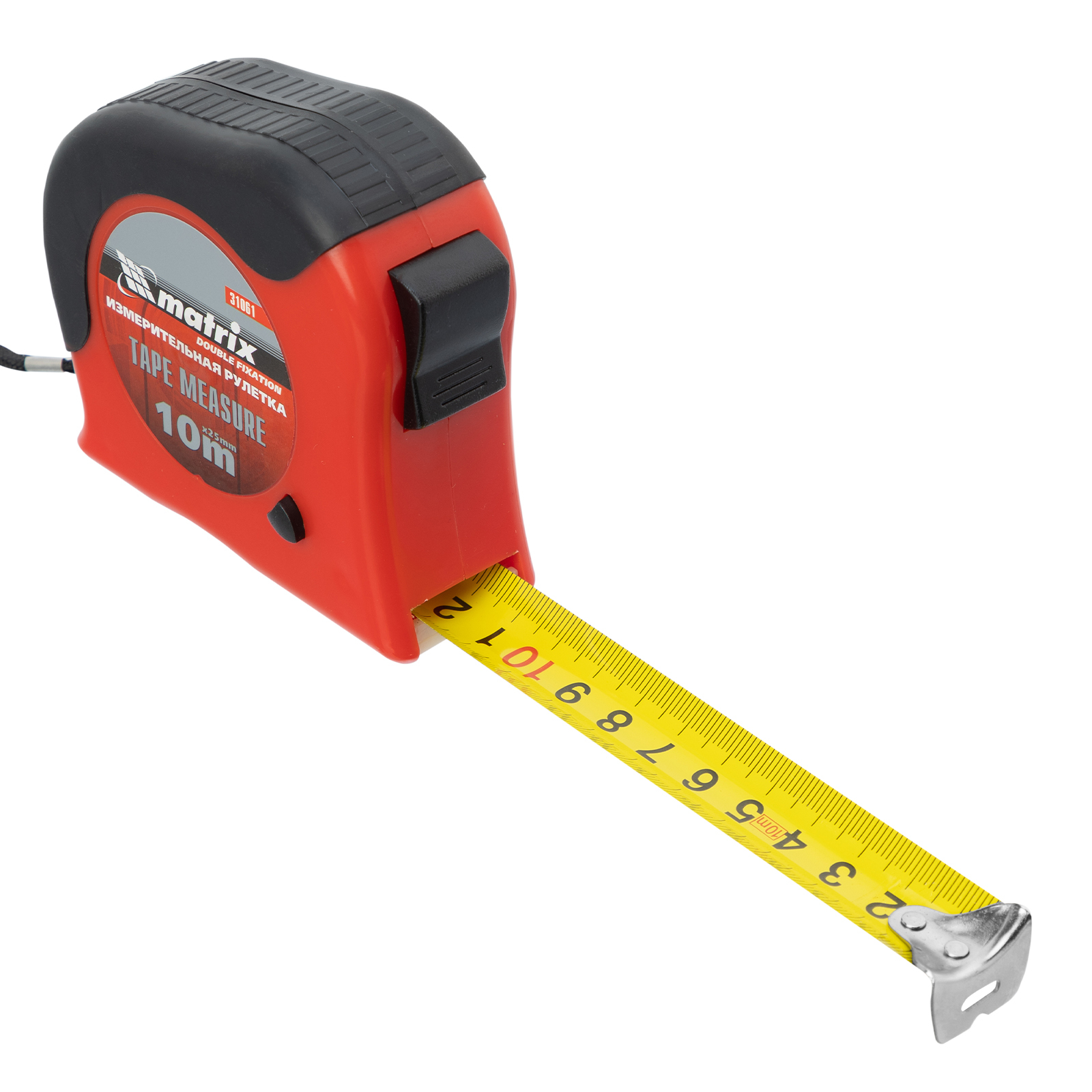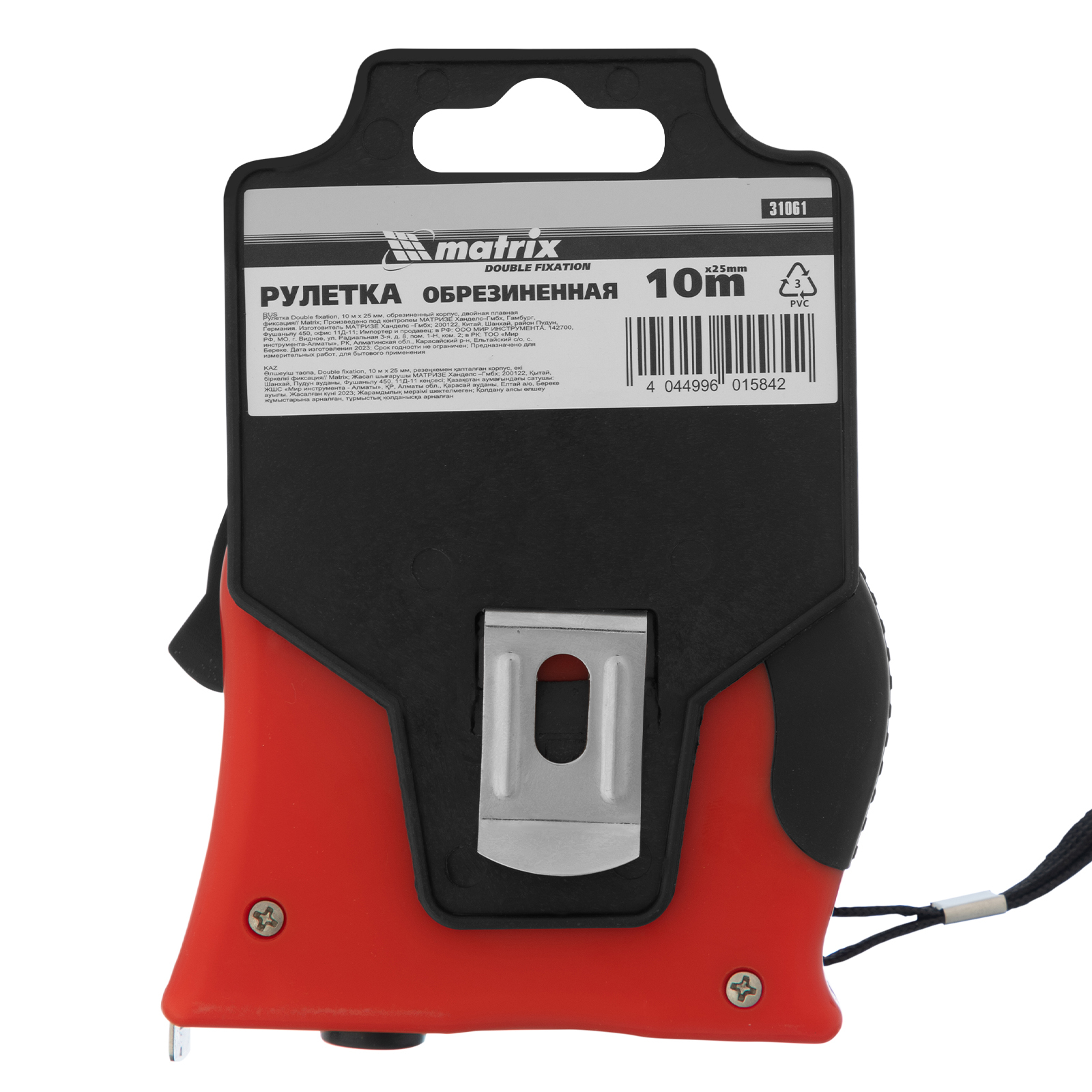 Рулетка Double fixation,10 м х 25 мм,обрезиненный корпус,двойная плавная фиксация Matrix