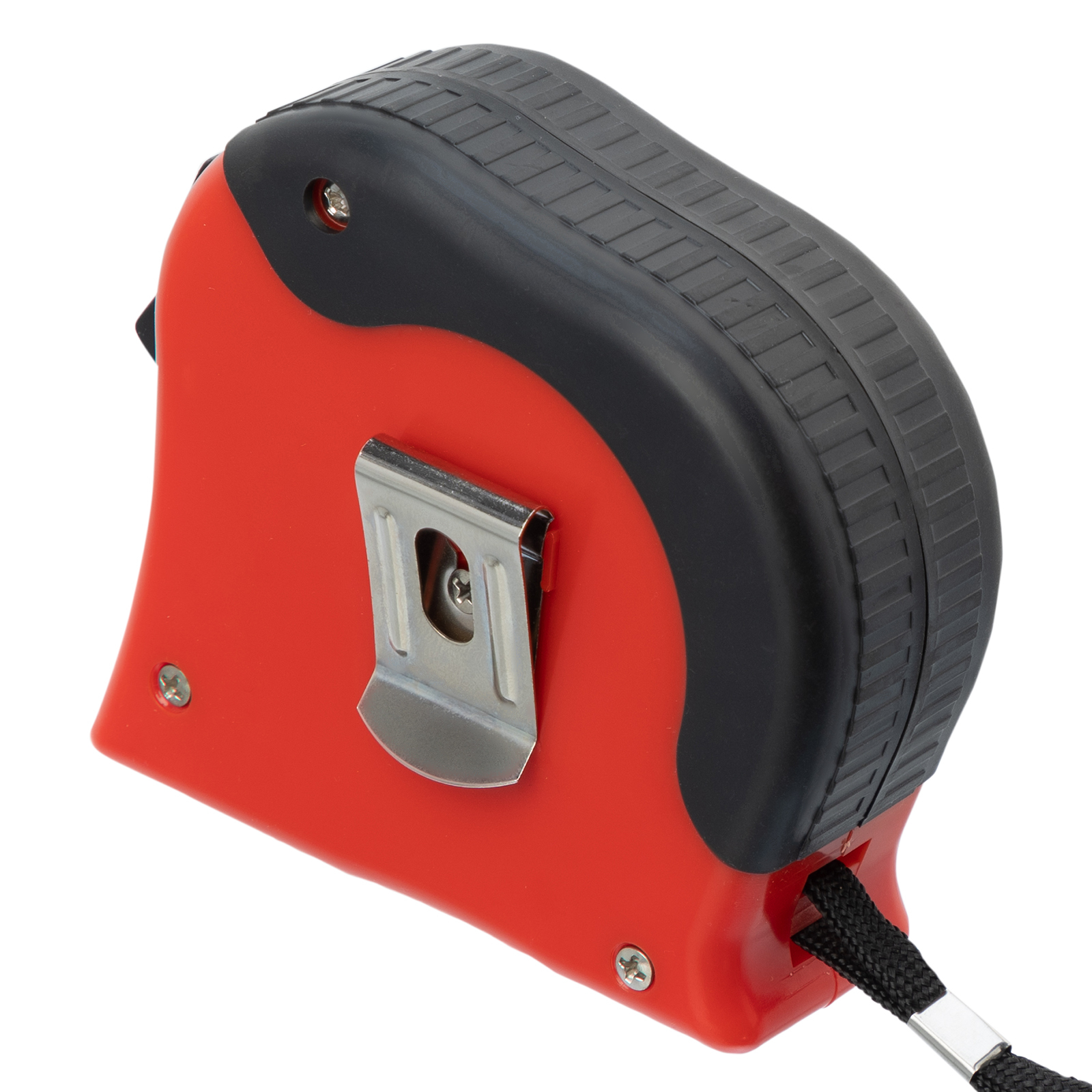 - Комфортное использование — нейлоновый ремешок позволяет носить рулетку на запястье, при помощи металлической скобы можно закрепить рулетку на поясе.
