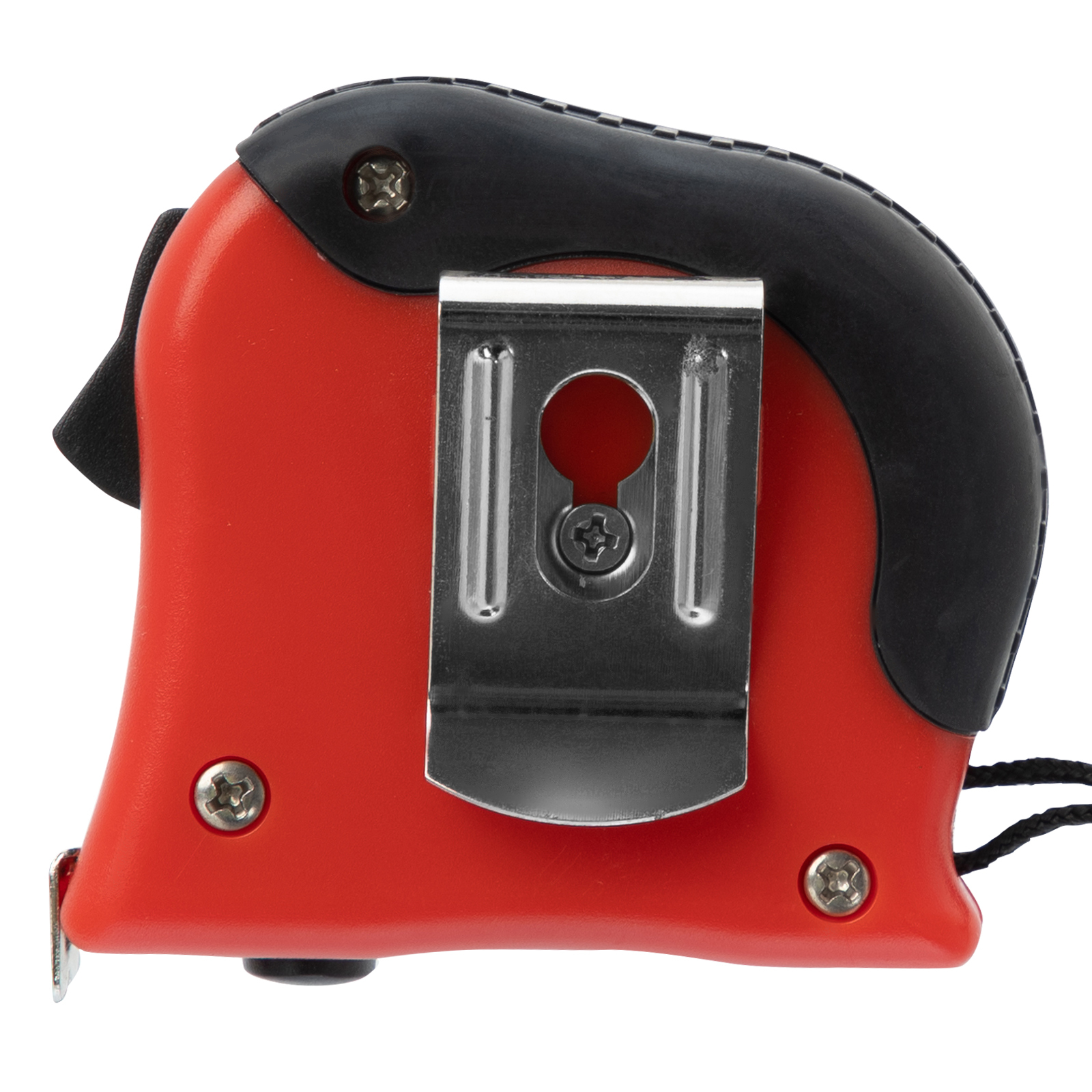 - Комфортное использование — нейлоновый ремешок позволяет носить рулетку на запястье, при помощи металлической скобы можно закрепить рулетку на поясе.